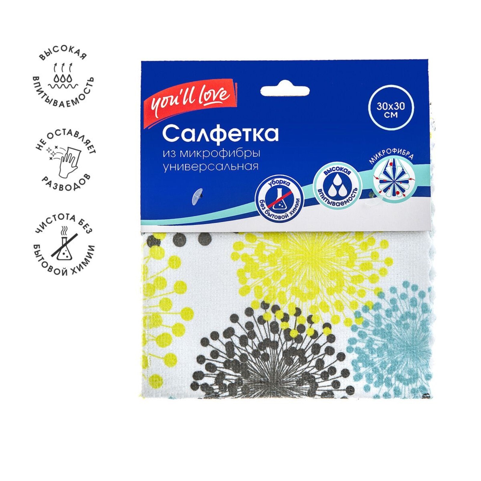 Салфетка принт, супервпитывающая, 30х30 см, из микрофибры