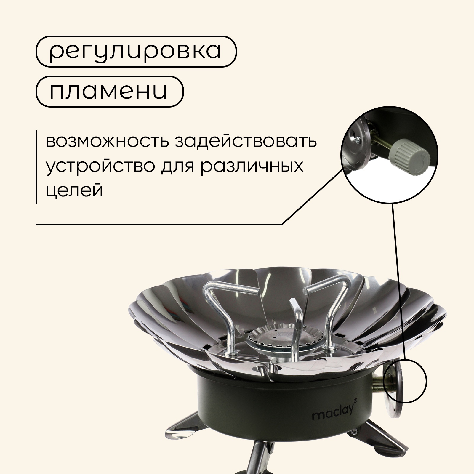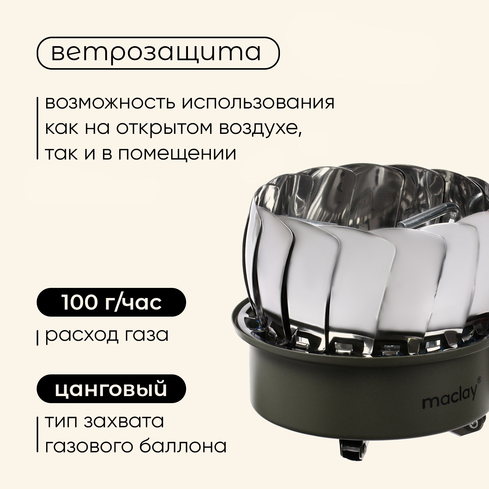Плита газовая портативная maclay, для кемпинга, с ветрозащитой, 12 12 см, малая, круглая.