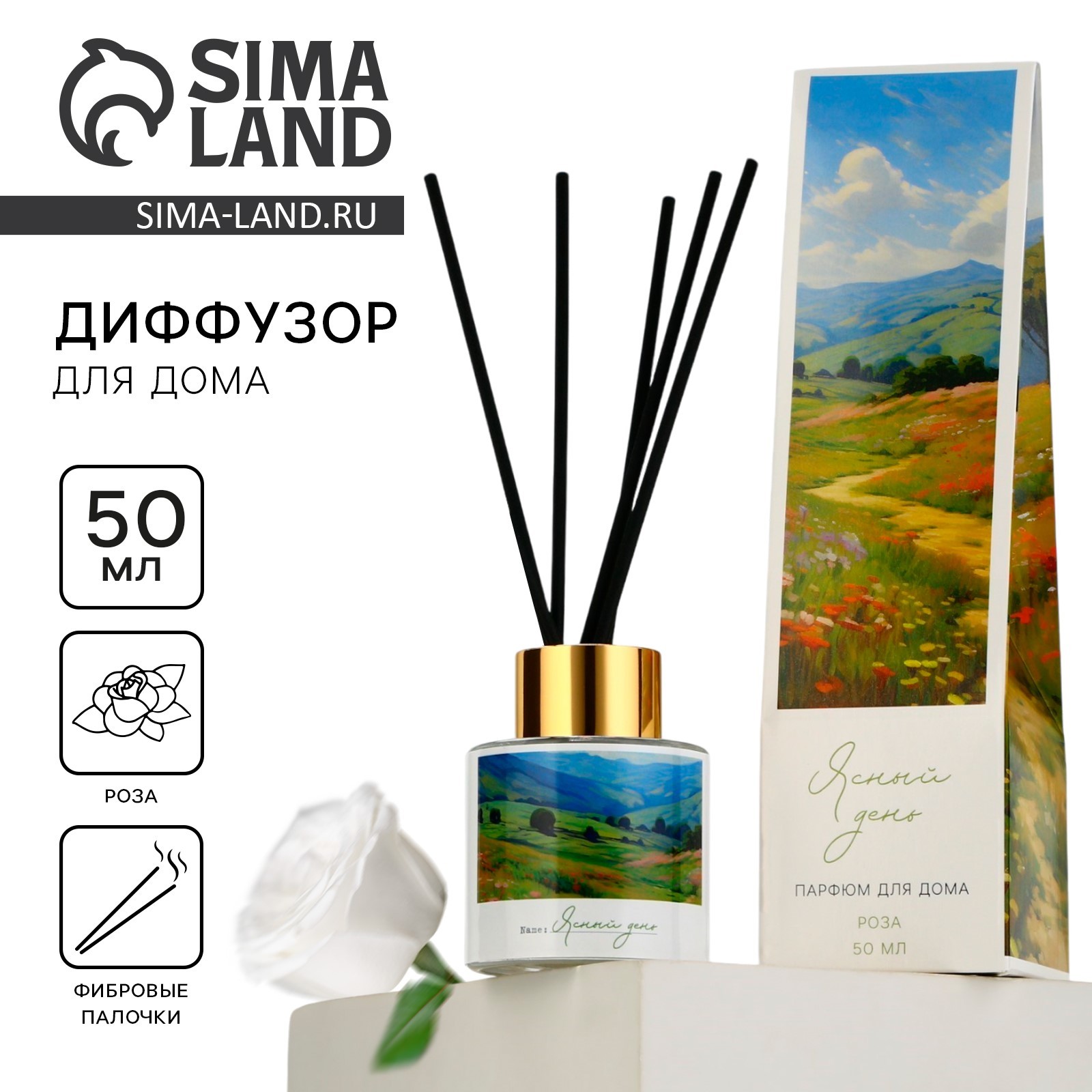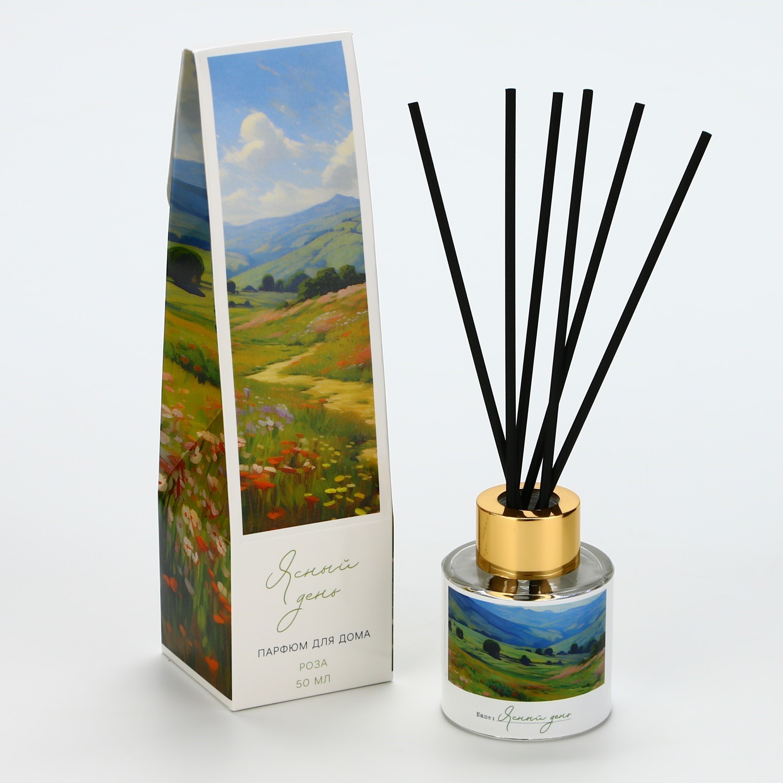Диффузор ароматический «ясный день», роза, 50 мл.. Об удивительных эффектах ароматерапии слышал наверное каждый. Запахи способны успокоить и взбодрить, поднять настроение, а ещё сделать дом самым уютным местом на свете. Используйте приемы благоухающей магии, для создания праздничной атмосферы. Палочки пропитываются аромамаслами и равномерно распространяют парфюмерные ноты в воздухе в течение длительного времени. В зависимости от их количества меняется интенсивность запаха парфюмерии. По мере испарения доливайте ароматический раствор из рефила, чтобы дополнить вкус и домашнюю атмосферу уютом. Применение: извлеките диффузор из упаковки, откройте крышку и защитный колпачок, опустите фибровые палочки в ароматизированную жидкость и наслаждайтесь. Ароматизированная жидкость пропитывает фибровые палочки, и, с их помощью аромат распространяется по всему помещению. Объём, мл: 50 Вид ароматизатора: В бутылочке Аромат: Роза  развернуть описание ▼