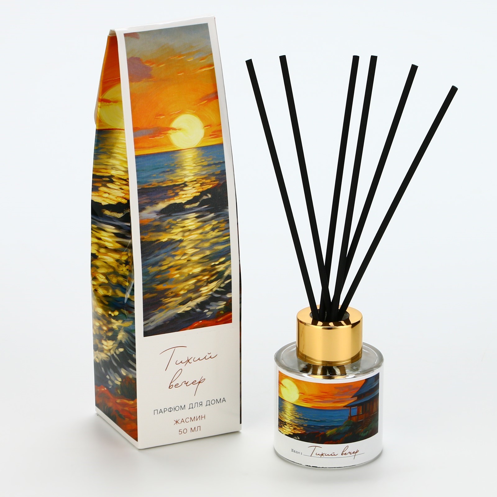 Диффузор ароматический «тихий вечер», жасмин, 50 мл.. Об удивительных эффектах ароматерапии слышал наверное каждый. Запахи способны успокоить и взбодрить, поднять настроение, а ещё сделать дом самым уютным местом на свете. Используйте приемы благоухающей магии, для создания праздничной атмосферы. Палочки пропитываются аромамаслами и равномерно распространяют парфюмерные ноты в воздухе в течение длительного времени. В зависимости от их количества меняется интенсивность запаха парфюмерии. По мере испарения доливайте ароматический раствор из рефила, чтобы дополнить вкус и домашнюю атмосферу уютом.