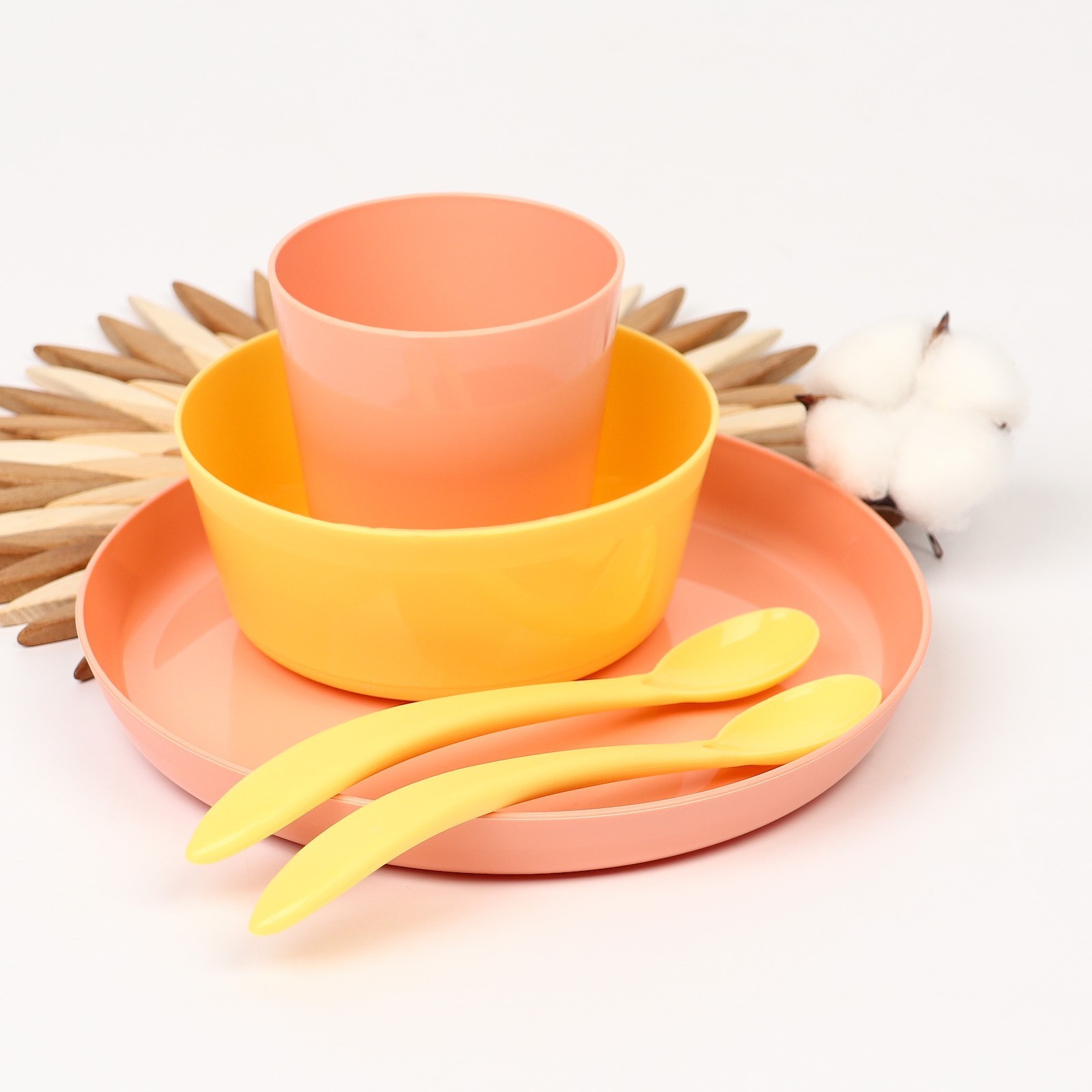 Набор детской посуды Lalababy Follow Me (тарелка, миска, стаканчик, 2 ложки), цвет розовый