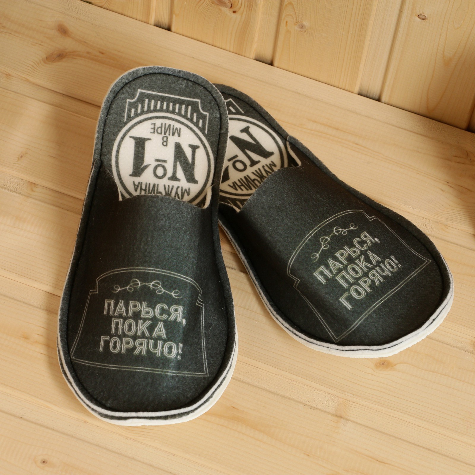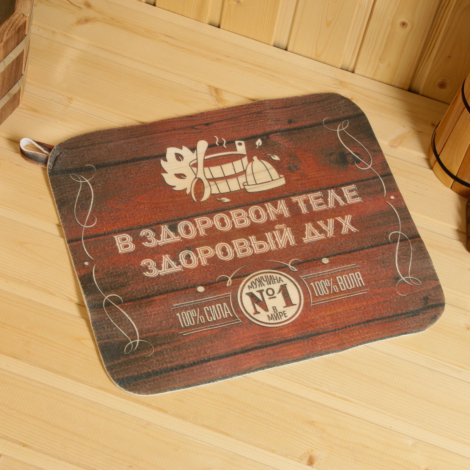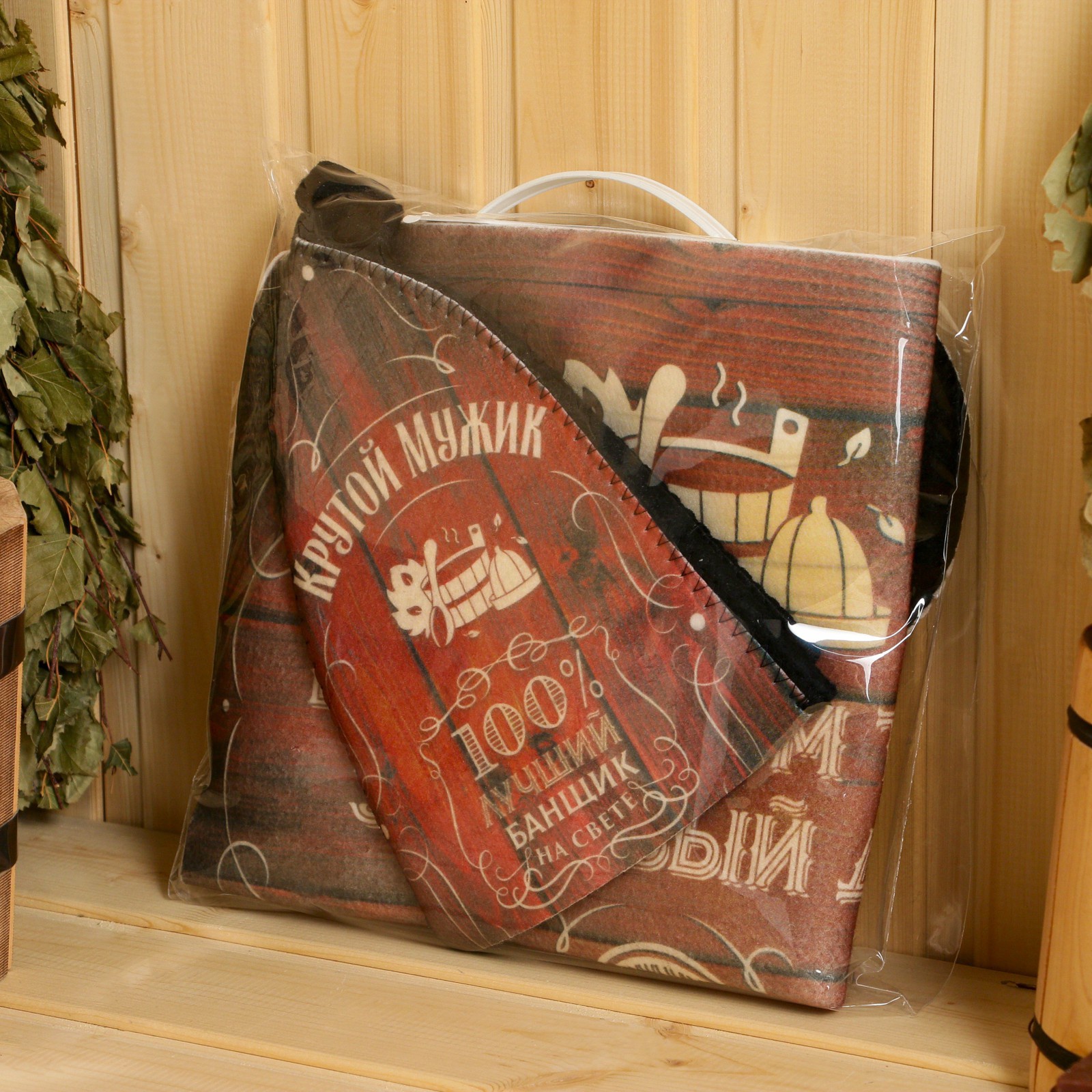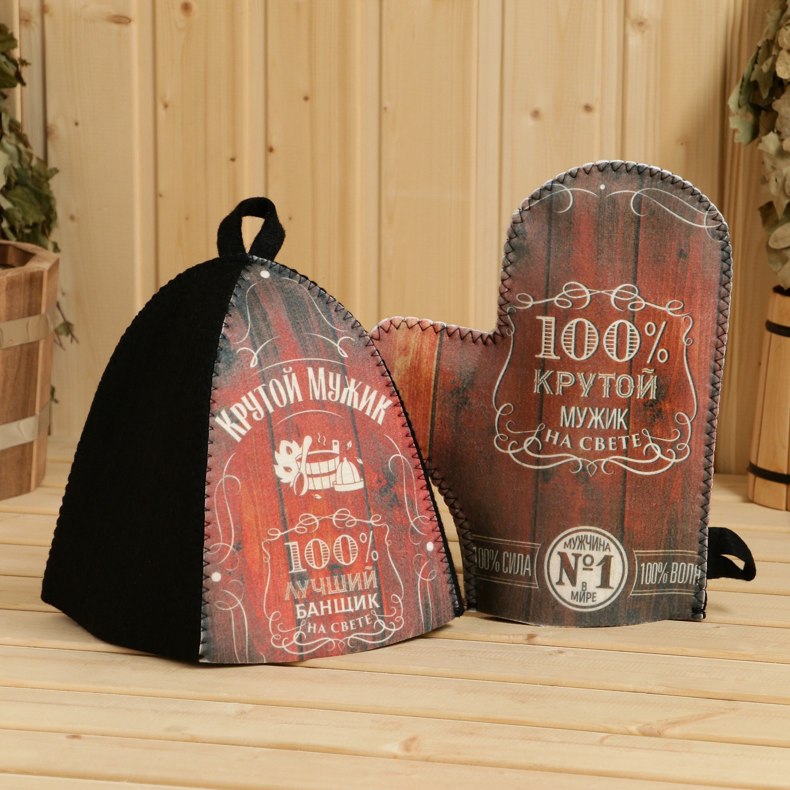 Набор для бани с принтом «крутой мужик», 4 предмета: шапка, рукавица, тапочки, коврик, войлок, тёмный, «банная забава»