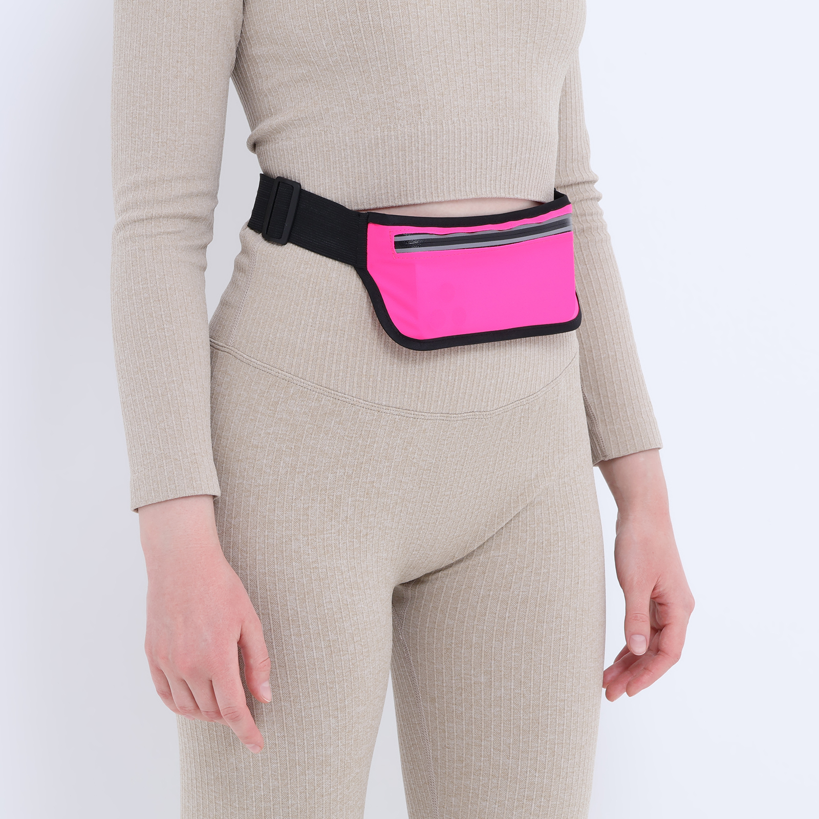 Сумка поясная на молнии, светоотражающие элементы, цвет розовый