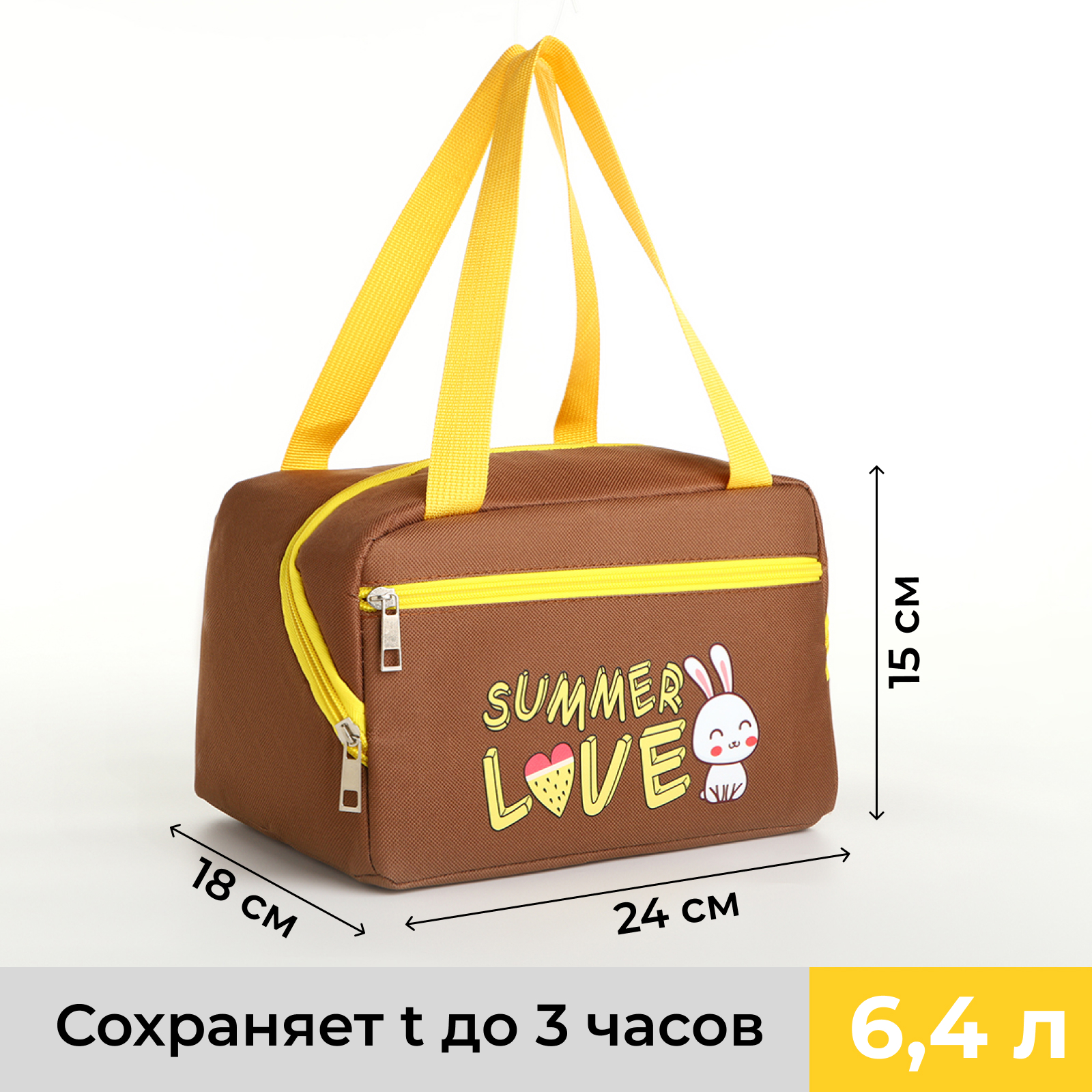Термосумка на молнии, 6.4 л, цвет коричневый