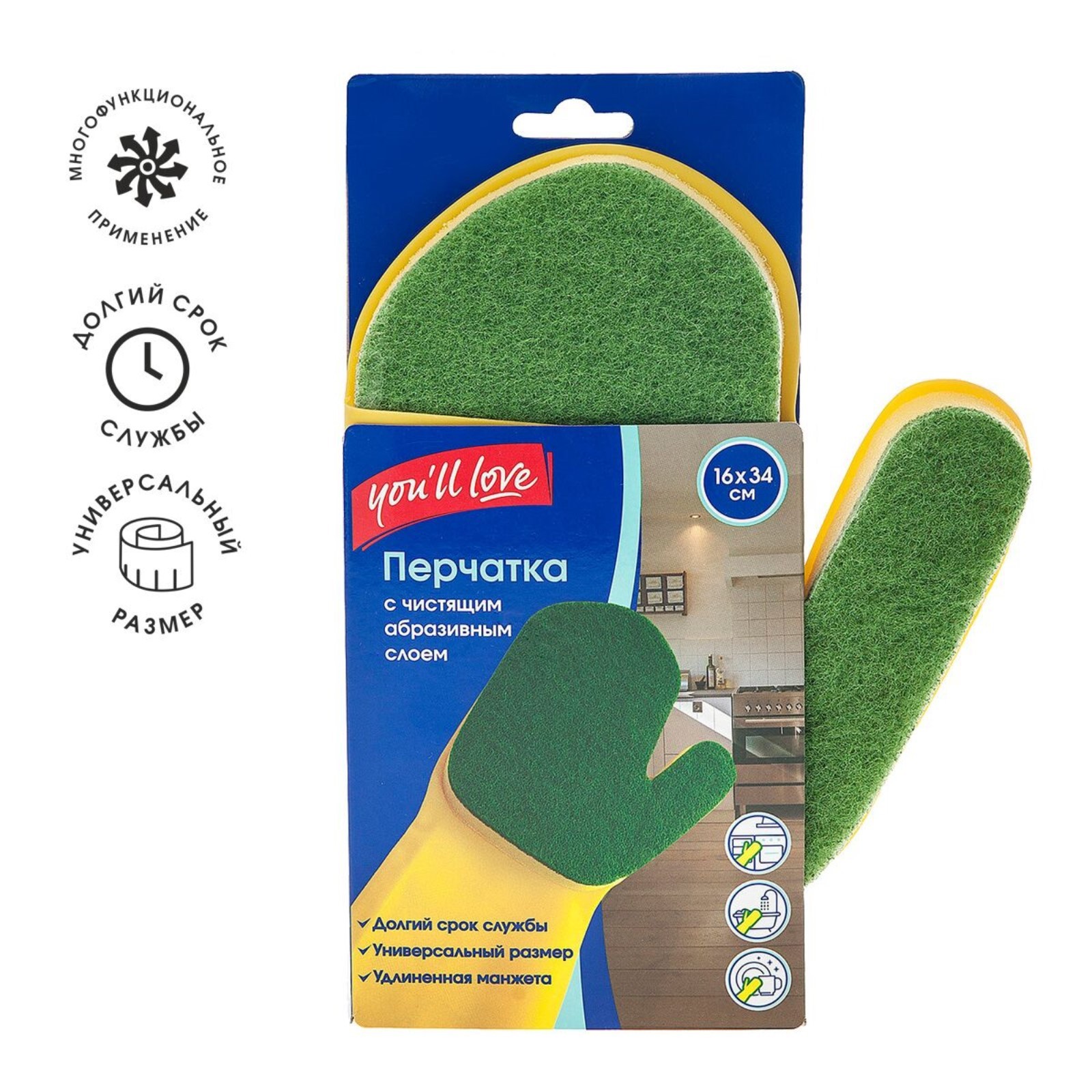 Перчатка с чистящим абразивным слоем, 34х16 см