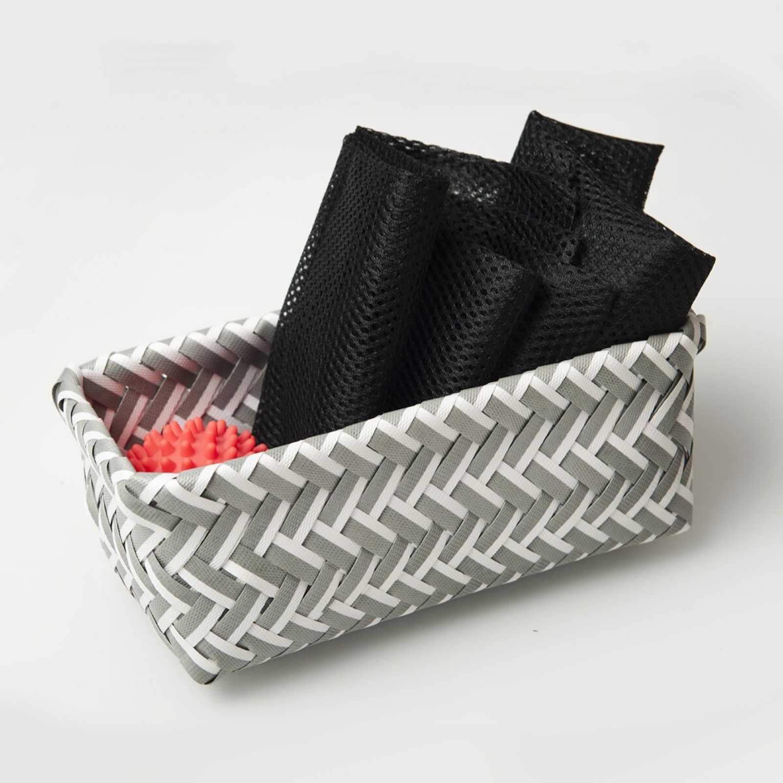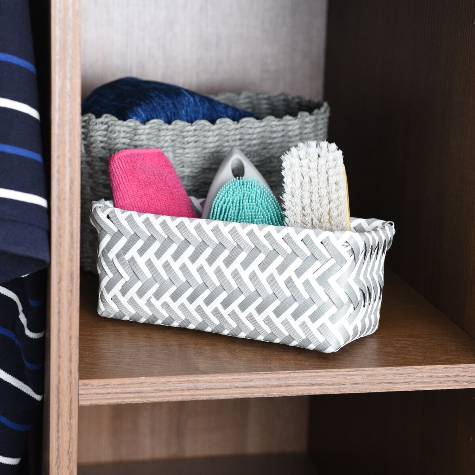 Плетёная корзина для хранения, 21х10х8 см. Цвет: Серый Форма: Прямоугольная Ширина, см: 10 Высота, см: 8 Глубина, см: 21 Крышка: Нет Материал: Полипропилен Основной материал: Полипропилен Форма: Прямоугольник  развернуть описание ▼