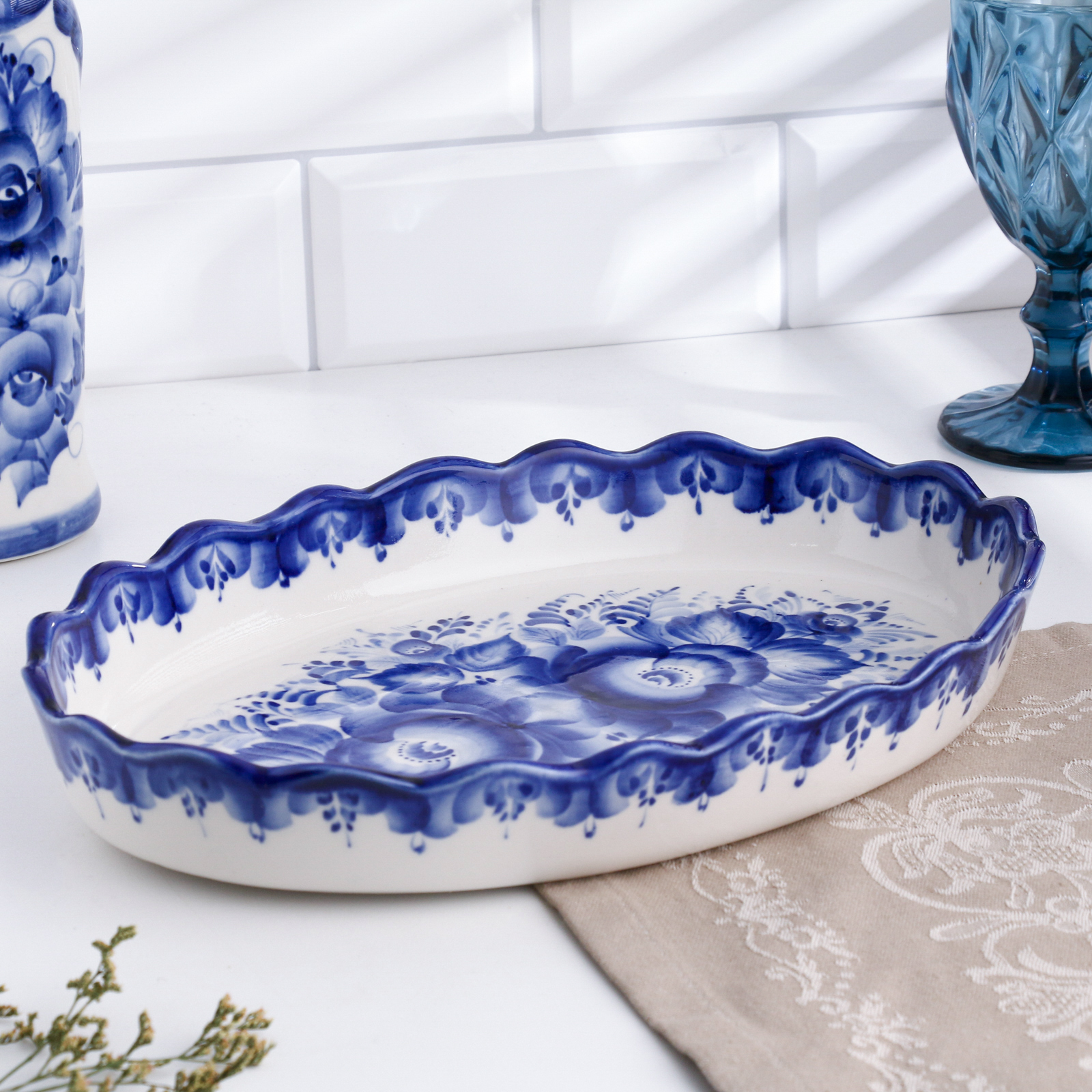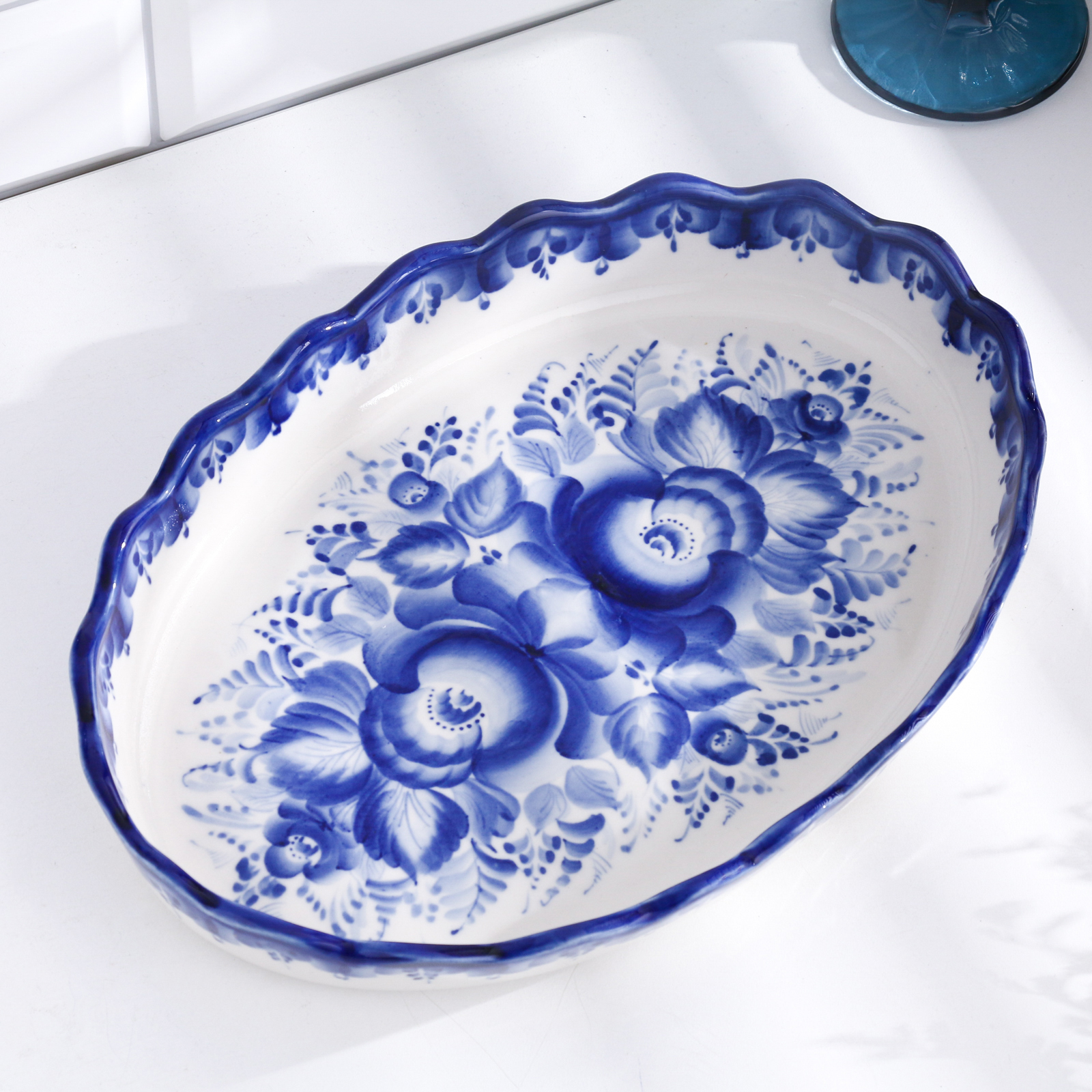 Поднос "заливное", 31 х 22 см, гжель Поднос "заливное", 31 х 22 см, гжель