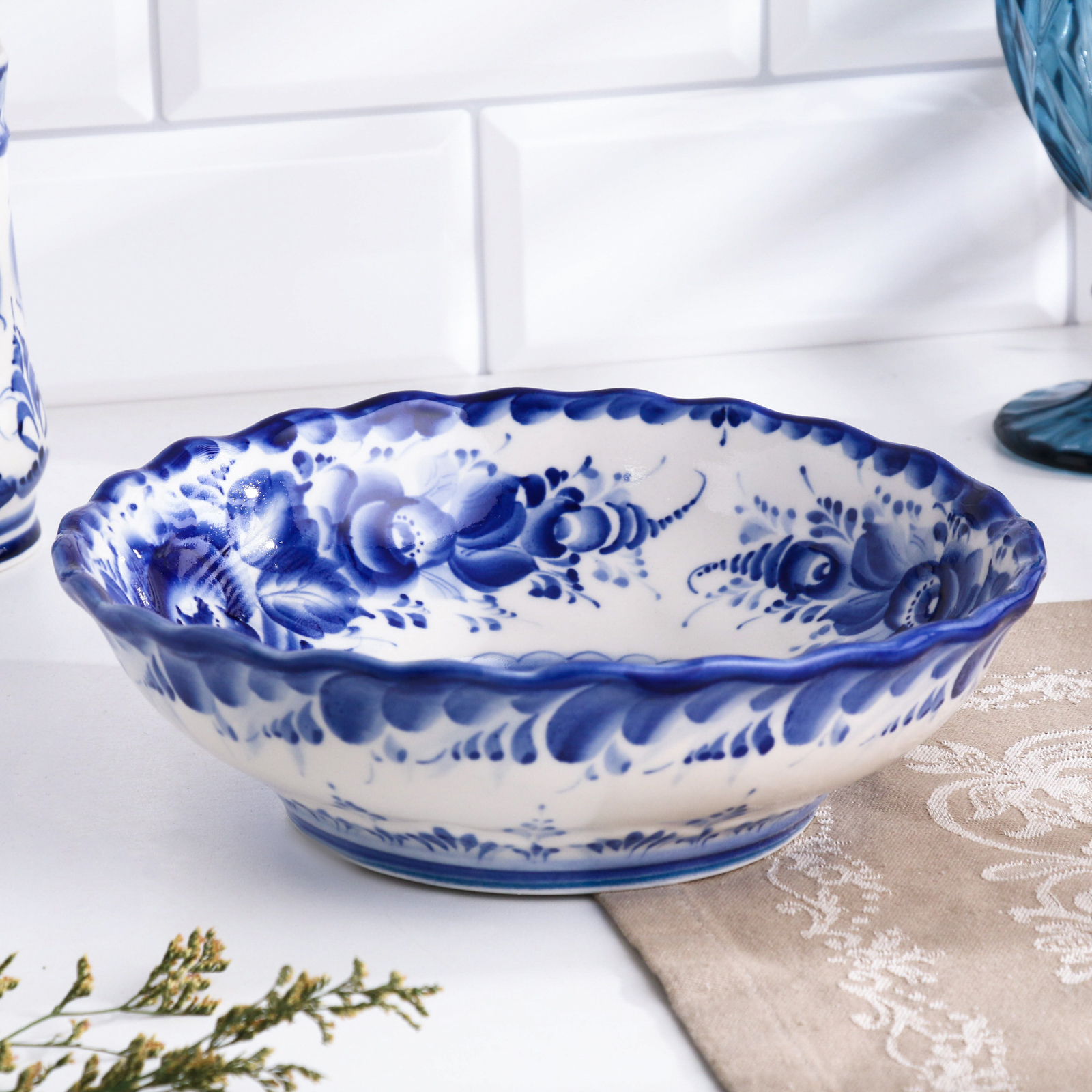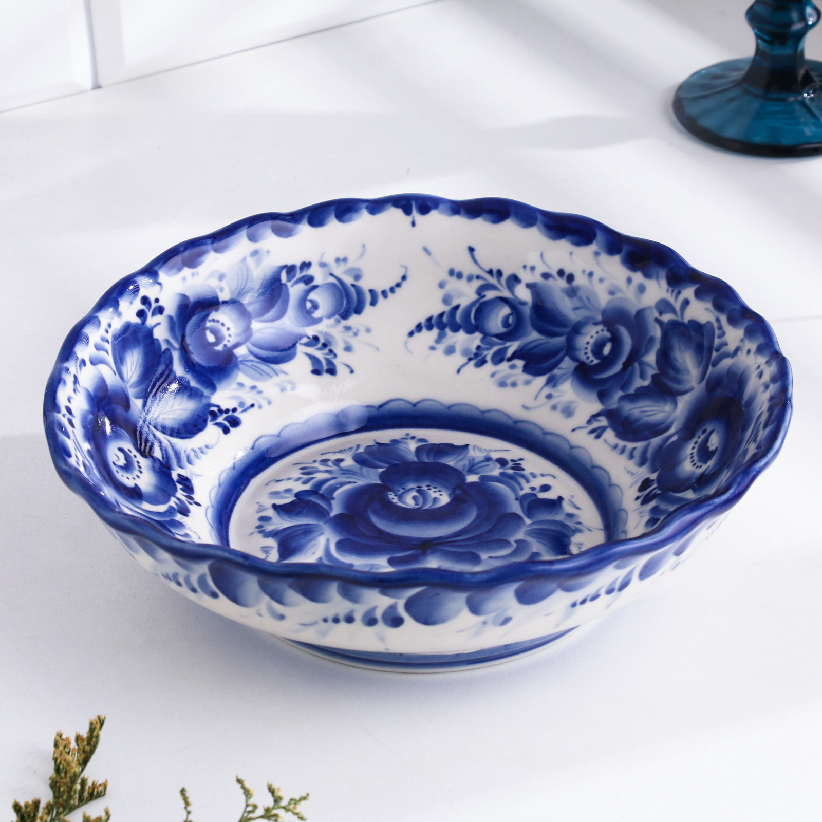 Салатник "цветы", большой, 7 х 22 см, гжель. Цвет: Синий Цвет: Белый Форма: Круглая Диаметр, см: 22 parts count: 0 В наборе, шт.: 1 Объём, л: 2.5 tnved: 6912009000 Тематика: Цветочно-растительная Крышка: Нет Материал: Керамика Температурное ограничение: Нет Можно мыть в посудомоечной машине: Да Можно использовать в СВЧ-печи: Да Текстура: Гладкая Особенности: Без особенностей Для горячего: Да Форма: Круг, шар, цилиндр  развернуть описание ▼