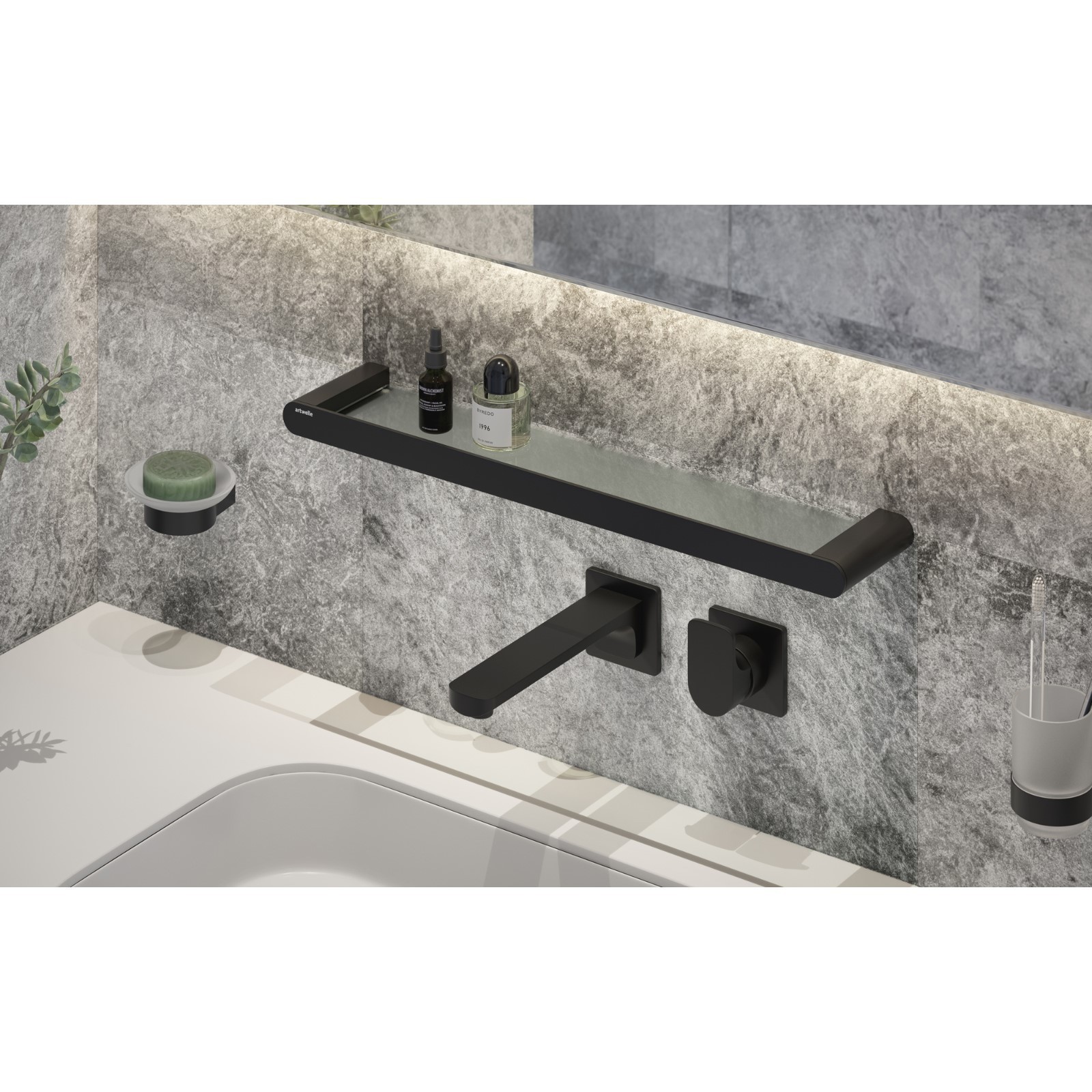 Полка с держателями 60 см матовое стекло, черный artwelle. Цвет: Чёрный Ширина, см: 60 Высота, см: 3 Глубина, см: 11.5 Количество секций: 1 Материал: Стекло Материал: Металл Услуга сборки: Нет Поставляется в разобранном виде: Нет Конструкция полки: Прямая  развернуть описание ▼