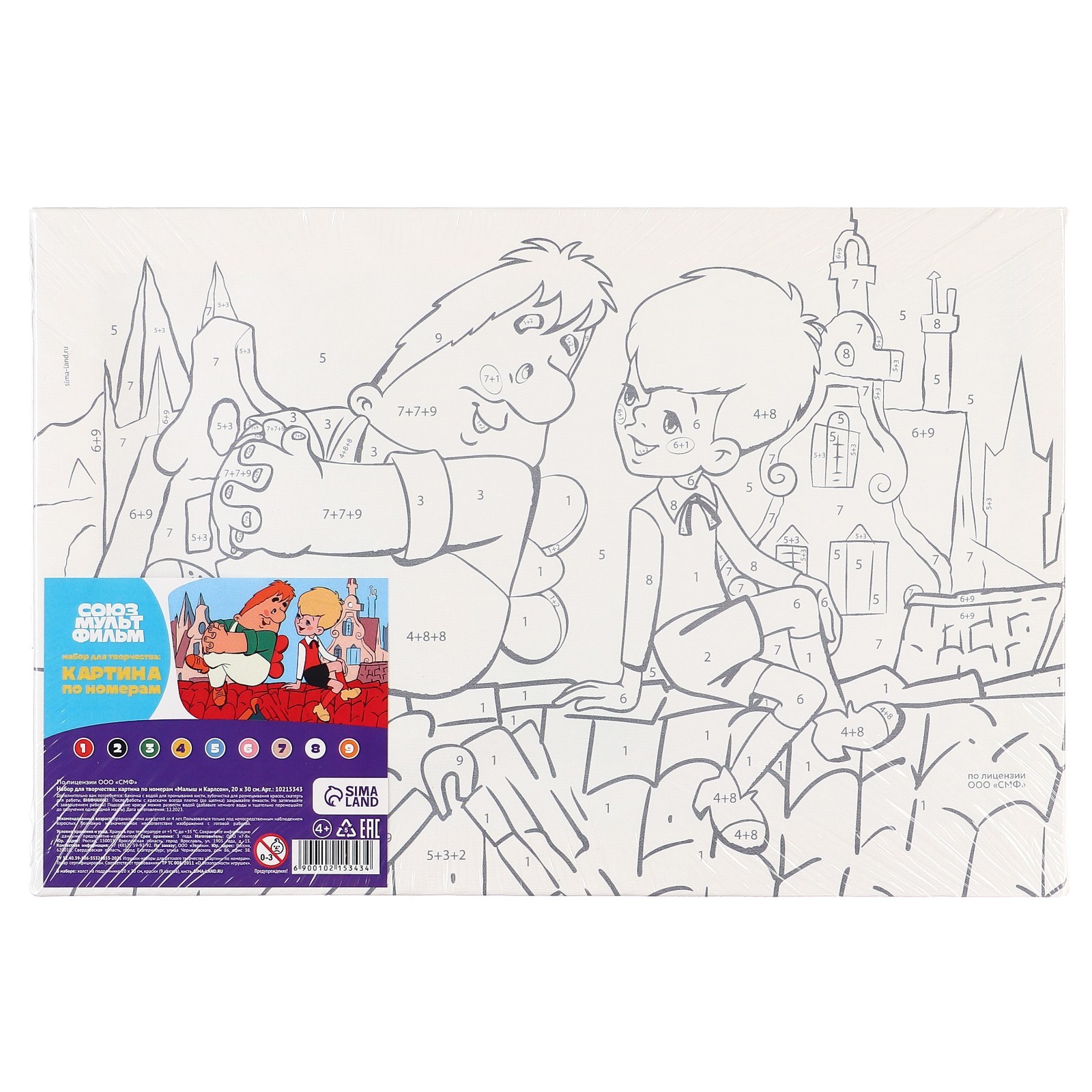 Картина по номерам для детей «малыш и карлсон», 20 х 30 см. Набор для рисования станет находкой для детей, которые хотят творить! Специально разработанная уникальная серия росписи по номерам станет верным помощником начинающим художникам, с помощью которой они будут создавать настоящие шедевры изобразительного искусства! Написанная своими руками картина украсит интерьер или станет прекрасным подарком для родных и близких людей. Холст разделён на фрагменты, на каждом из которых указано число, соответствующее цвету, которым нужно закрасить данный участок. В набор входят все необходимые оттенки красок, каждый из которых пронумерован. В наборе: холст на раме; краски; кисть. Количество цветов:9|Для кого:Унисекс|Размер, см:20 х 30|Возраст:От 3 лет|Тематика:Детская|Тематика:Мультфильмы|Тематика праздника:Универсальная тематика|Возраст:Детский|Ориентация изображения:Вертикально|Вид:Холст под роспись|Составляющие набора:Товары для творчества|Темпер. ограничение НЕ НИЖЕ :-40|Возраст:Для детей|Размер:Средний|Уровень сложности:Лёгкий|Изображение:Мультфильмы|Комплектация набора:С красками|Комплектация набора:С кисточками|Страна:Россия  развернуть описание ▼