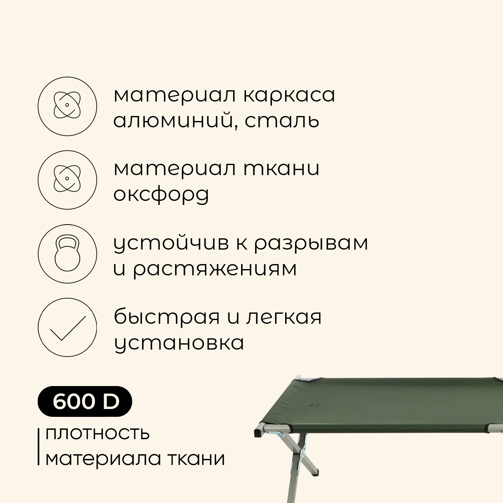 Раскладушка Maclay, складная, 184 х 59 х 40 см, до 120 кг, цвет зелёный