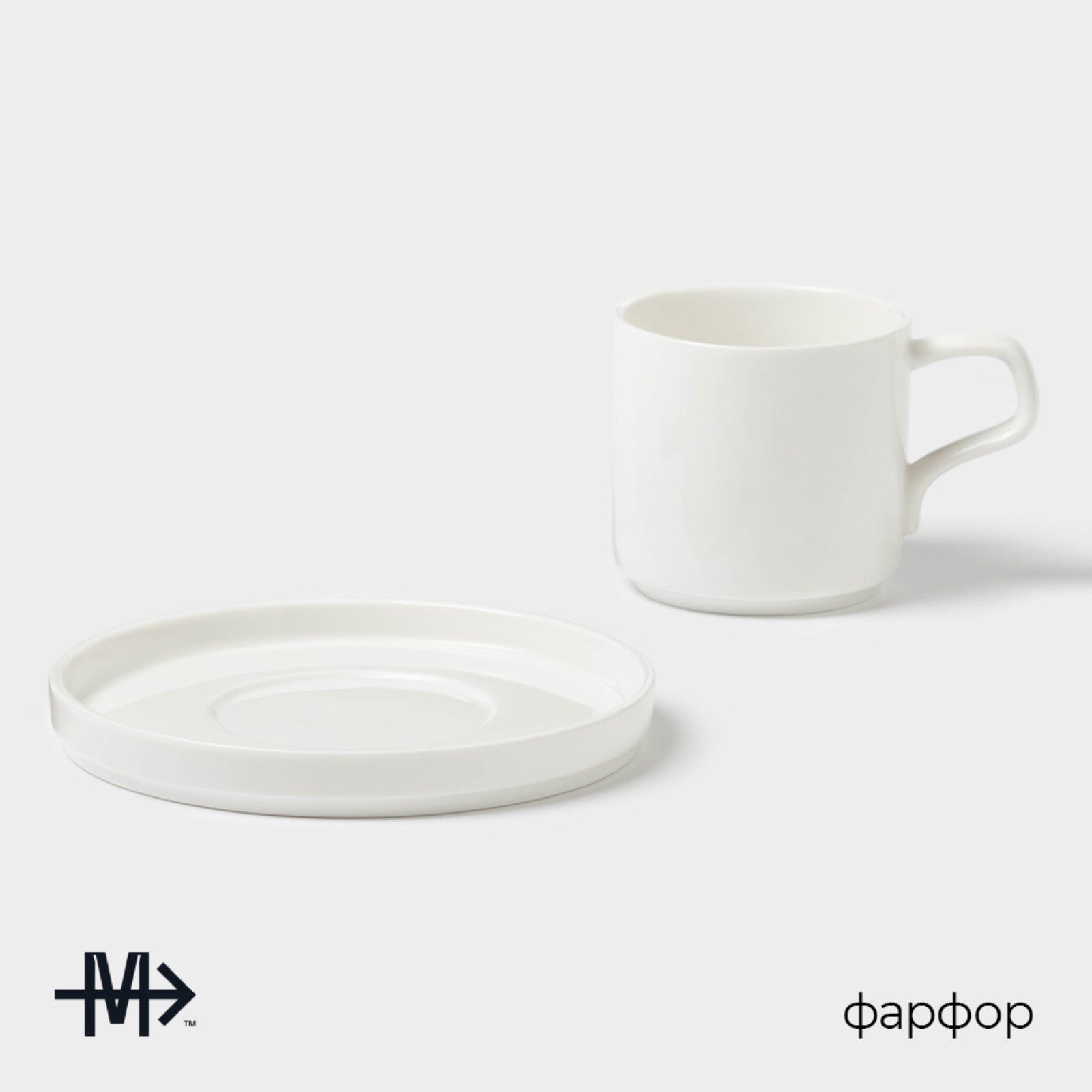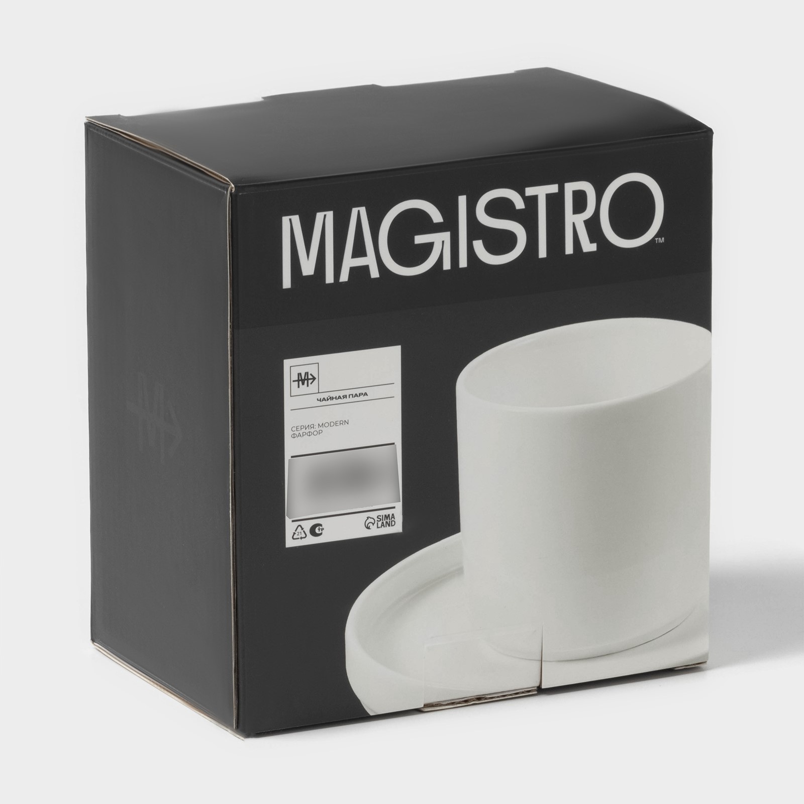 Чайная пара Magistro Modern, 220 мл, 15 15 8 см, фарфор, белая