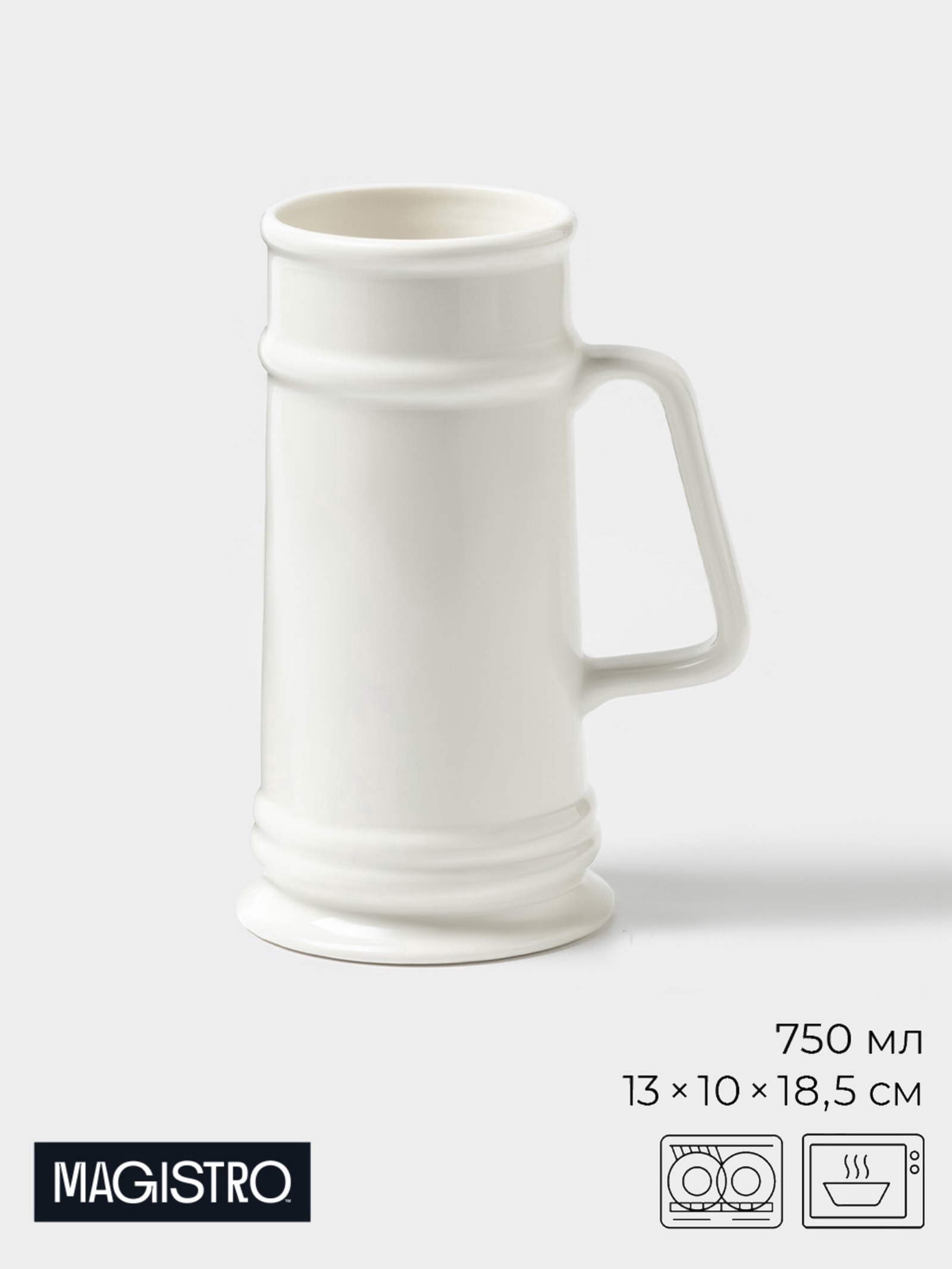 Кружка пивная Magistro Olivequeen, 750 мл, 13 10 18.5 см, фарфор, белая