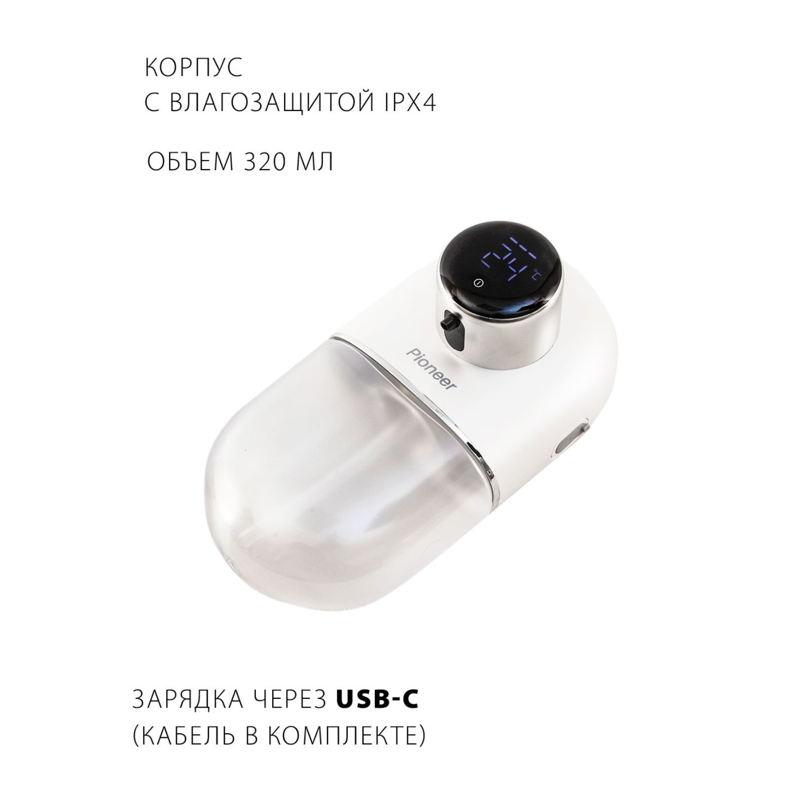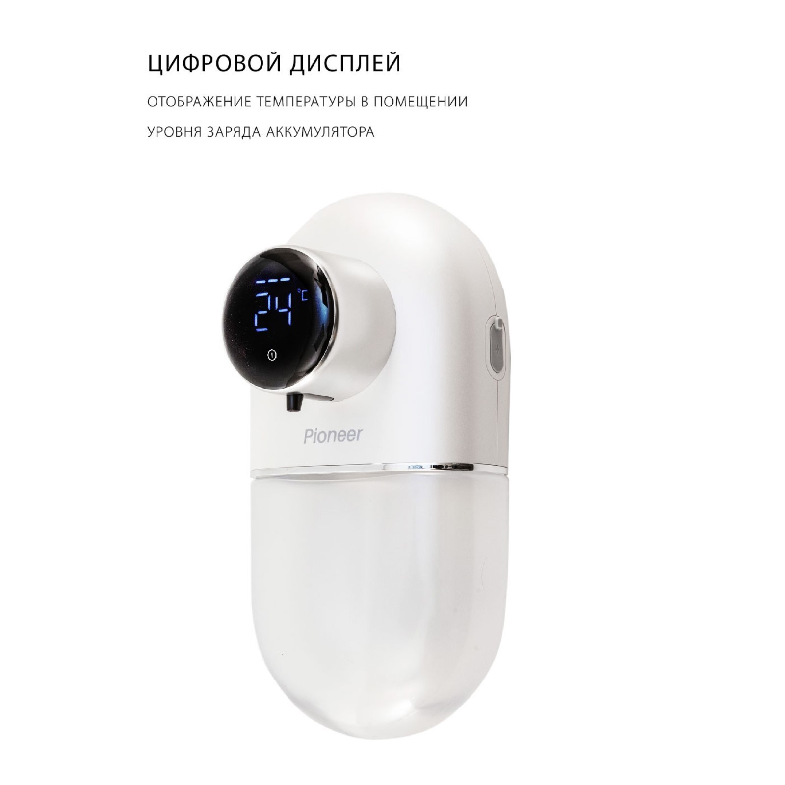 Диспенсеры настенный для мыла, сенсорные pioneer sd-2201, 320 мл. Для всех видов жидких моющих средств: жидкое мыло, гель для мытья посуды, шампунь, гелевый антисептик. Сенсорное управлениеЦифровой дисплейОтображение температуры в помещенииОтображение уровня заряда аккумулятораРегулировка объёма подачи пеныМгновенная скорость срабатывания: 0, 25 секЁмкость для мыльного раствора - 320 млПластиковый корпус с влаго-защитой IPX4-ion аккумулятор 1500 mAh, 5V-1AЗарядка через TYPE-C (кабель в комплекте)Цвет белый Тип питания: От USB Цвет: Белый Количество отсеков: 1 Объём, мл: 320 Материал: Пластик Вид установки: Настенный (навесной) Дисплей: Да Назначение: Для жидкого мыла Бесконтактный: Да С ключом: Нет Способ заправки: Наливной Механизм управления: Сенсорный  развернуть описание ▼