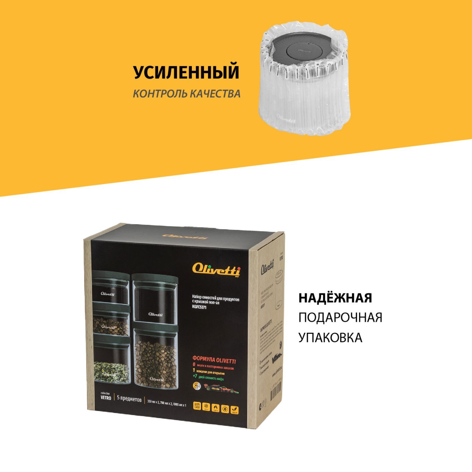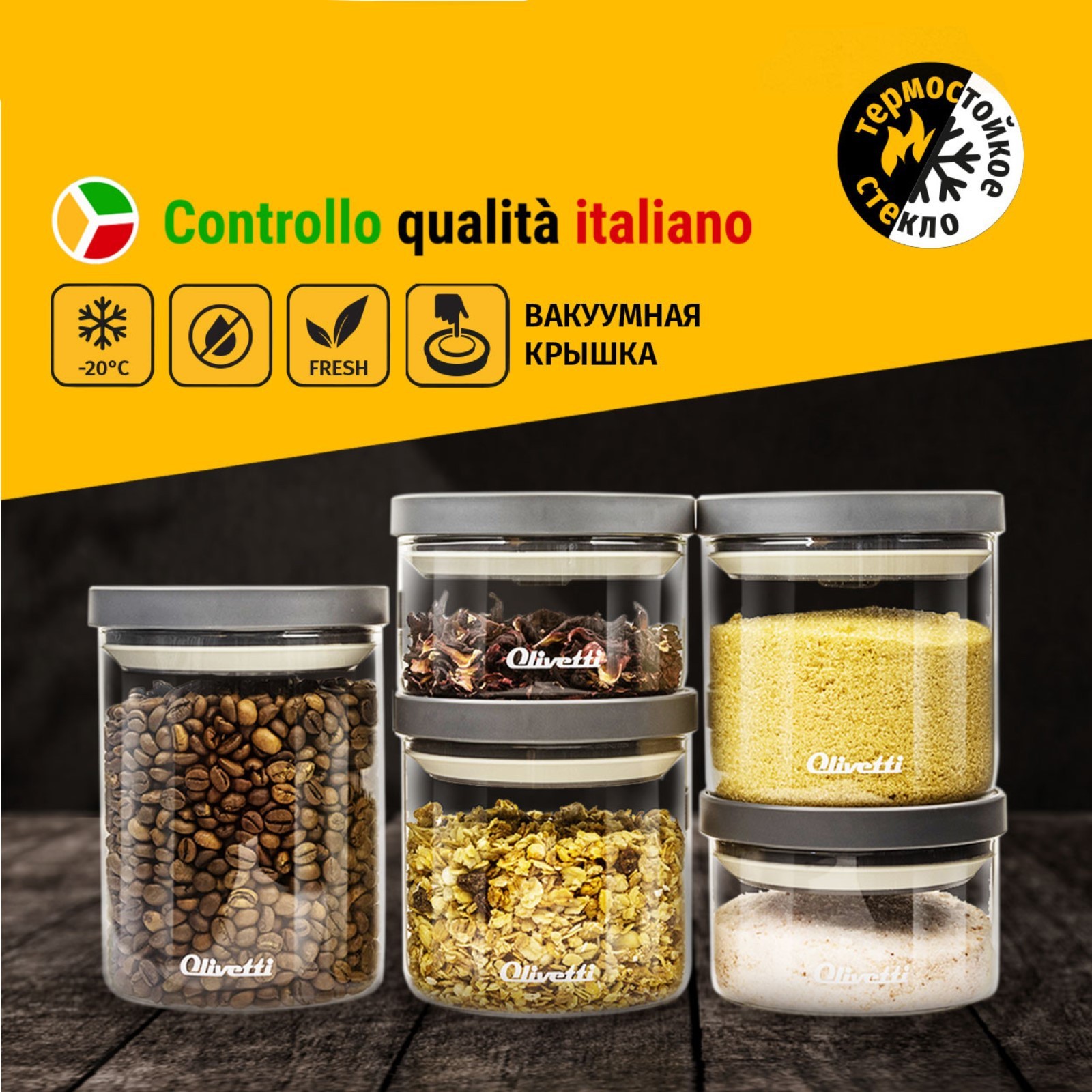Набор ёмкостей для продуктов Olivetti Vetro Kgfc5371, 5 шт