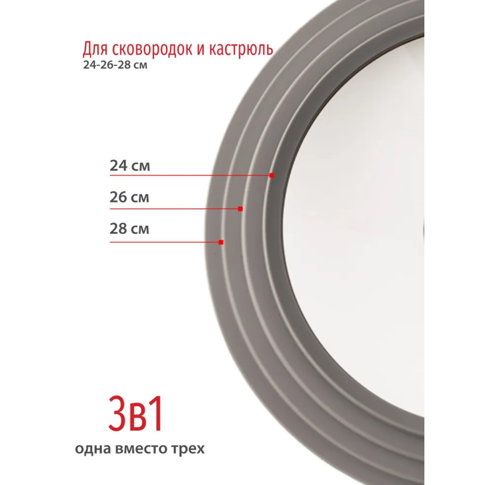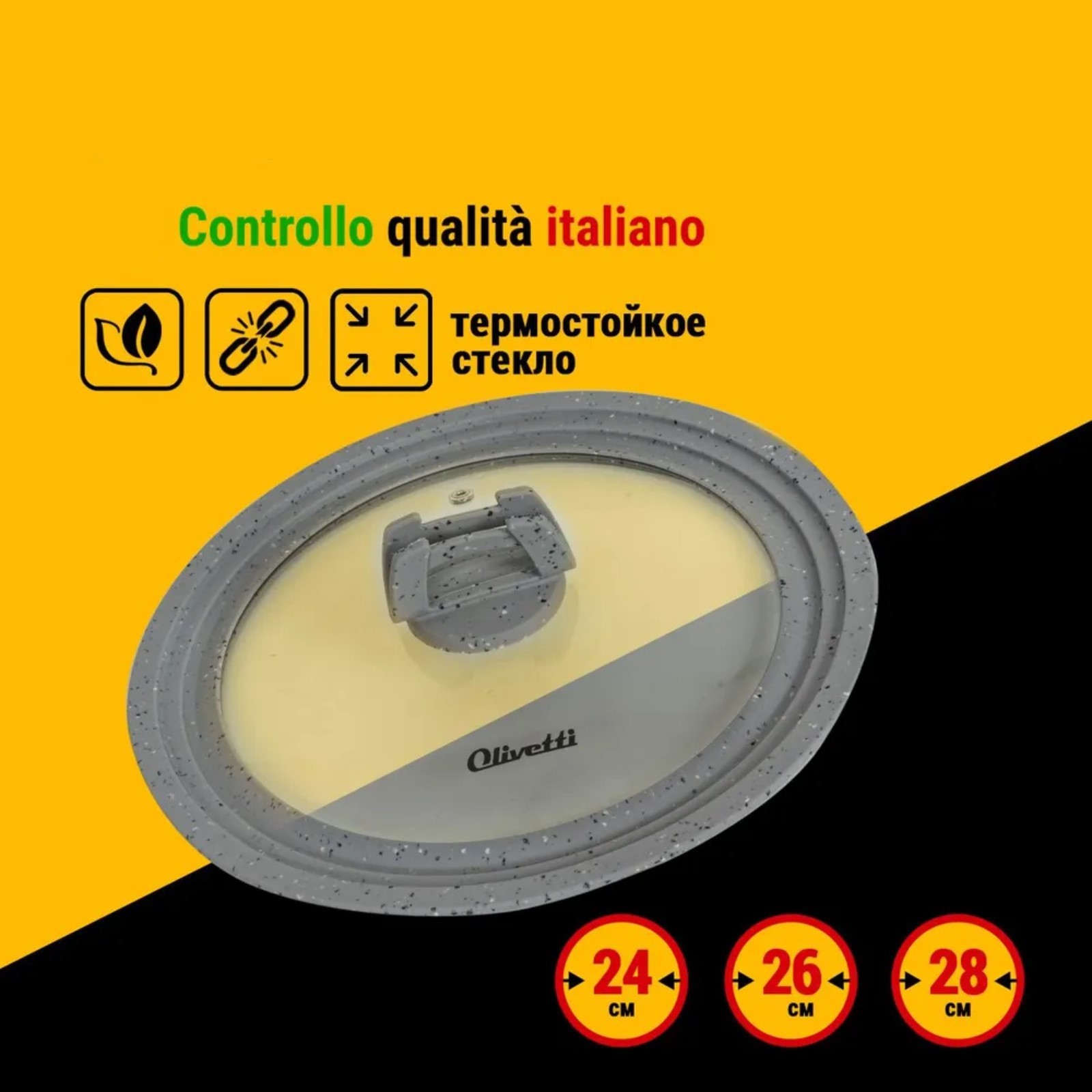 Крышка olivetti glu124, цвет серый мрамор.   Крышка для посуды жаропрочная универсальная - для диаметров 24-26-28 см *Термостойкое стекло Экологичный силикон повышенной плотности Эрогономиная ручка для еще более компактного хранения Подходит для использования в духовке до 230 градусов Для всех типов плит Можно мыть в посудомоечной машине Отверстие для выхода пара Ручка не нагревается Предотвращение царапин на посудеУсиленный контроль качества на производстве Цвет силиконовго канта и ручки - серый с эффектом мраморной крошки Цвет: Серый Форма: Круглая Диаметр, см: 24 Материал ручки: Силикон Материал: Стекло Можно мыть в посудомоечной машине: Да Материал ободка: Силикон Форма: Круг, шар, цилиндр  развернуть описание ▼
