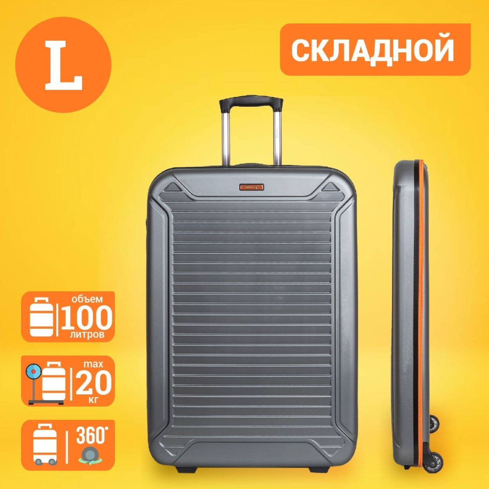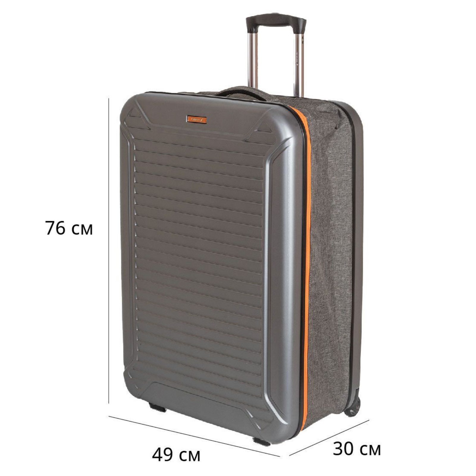 Чемодан большой 28 " на молнии, цвет серый/оранжевый. Цвет: Серый Количество колёс: 2 Возраст: Взрослый Возраст: Подростковый Материал: Пластик Размер: 28" (L) Дополнительный объём: Без увеличения Вид пластика: Поликарбонат  развернуть описание ▼