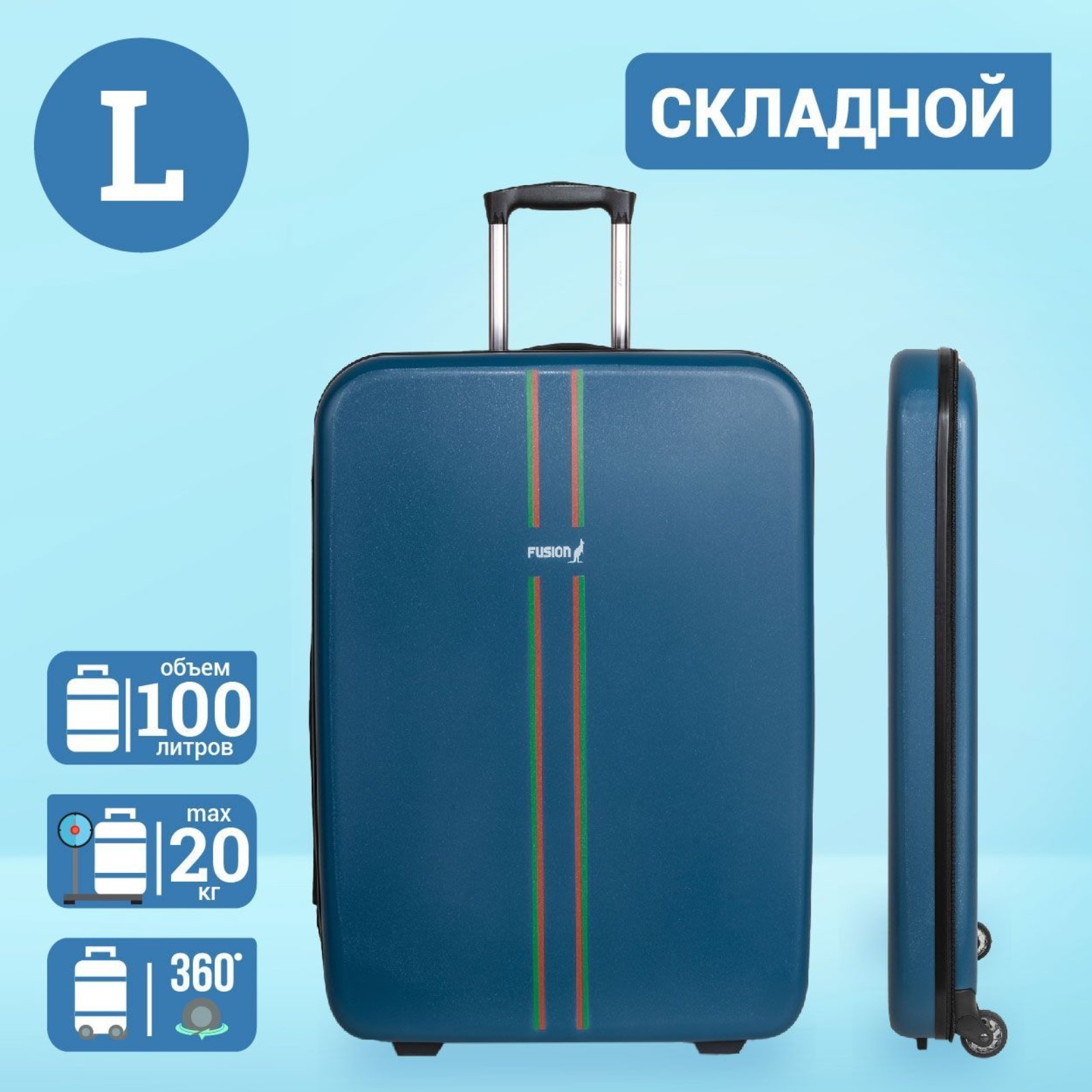 Чемодан большой 28 " на молнии, с расширением, цвет синий