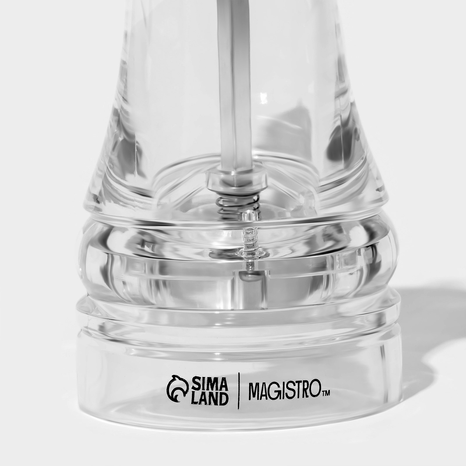 Мельница для специй Magistro Glace, 18.5 см, 75 мл, керамический механизм, акрил, прозрачная