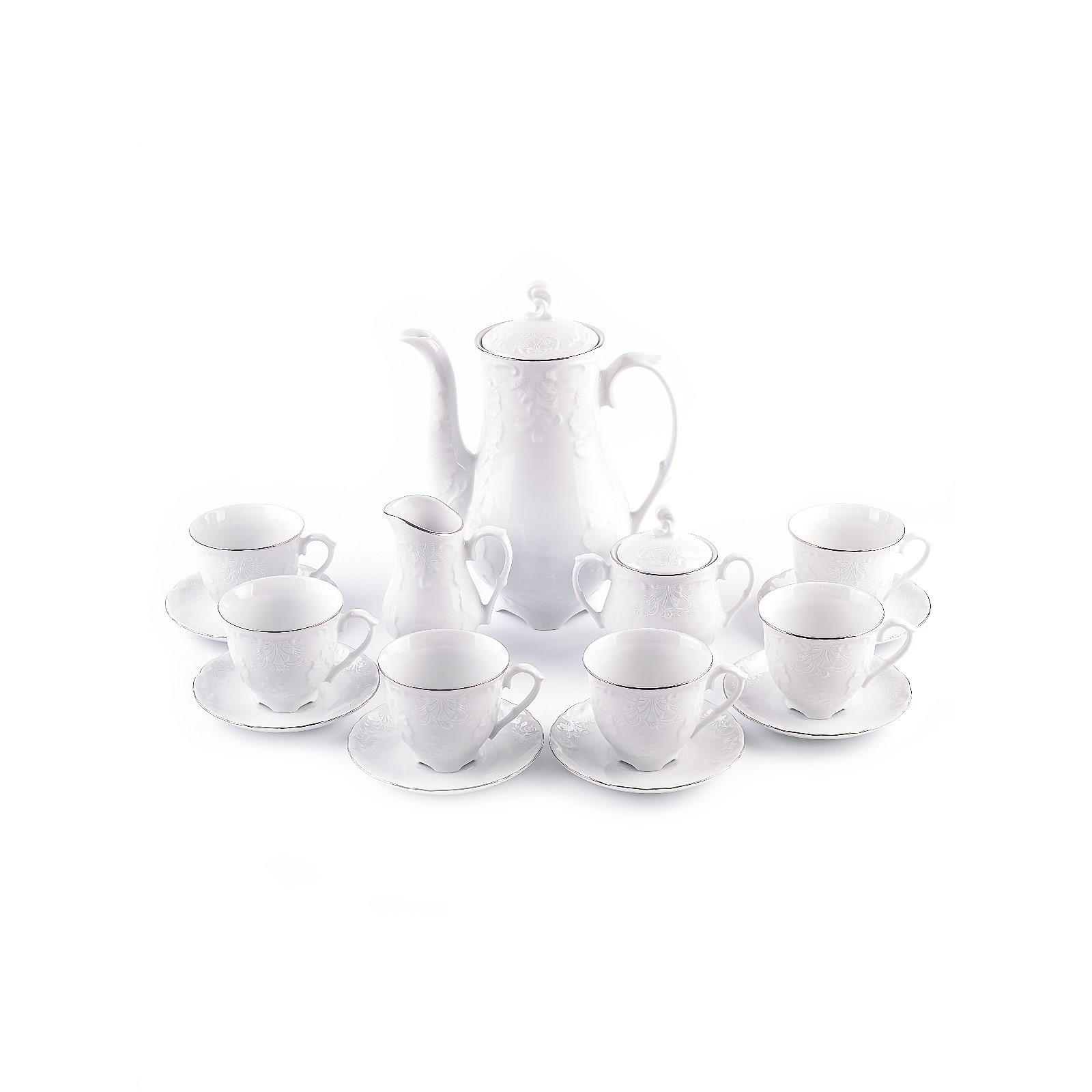 Кофейный сервиз Cmielow Rococo «узор платина», 15 предметов