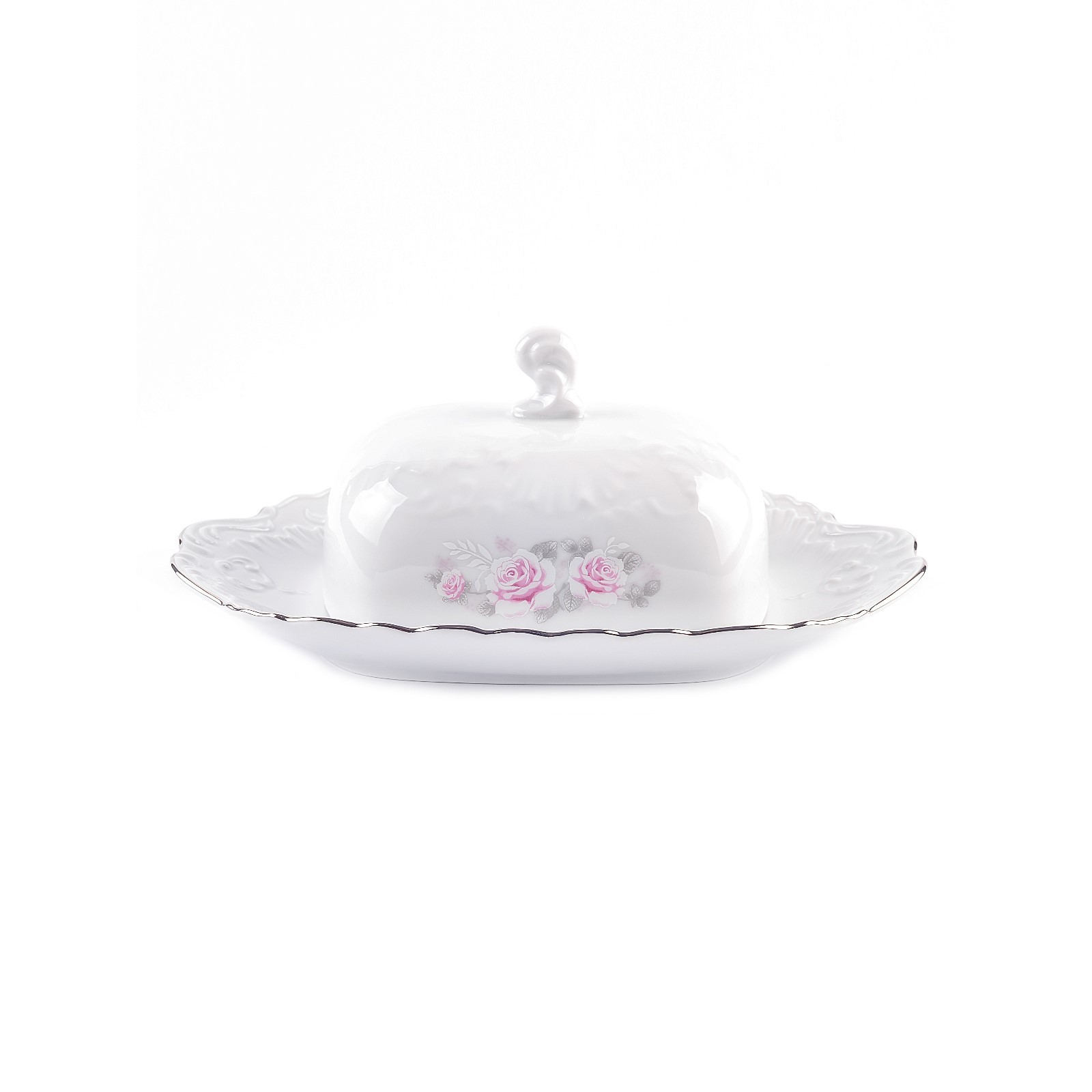 Маслёнка Cmielow Rococo «бледные розы, отводка платина»