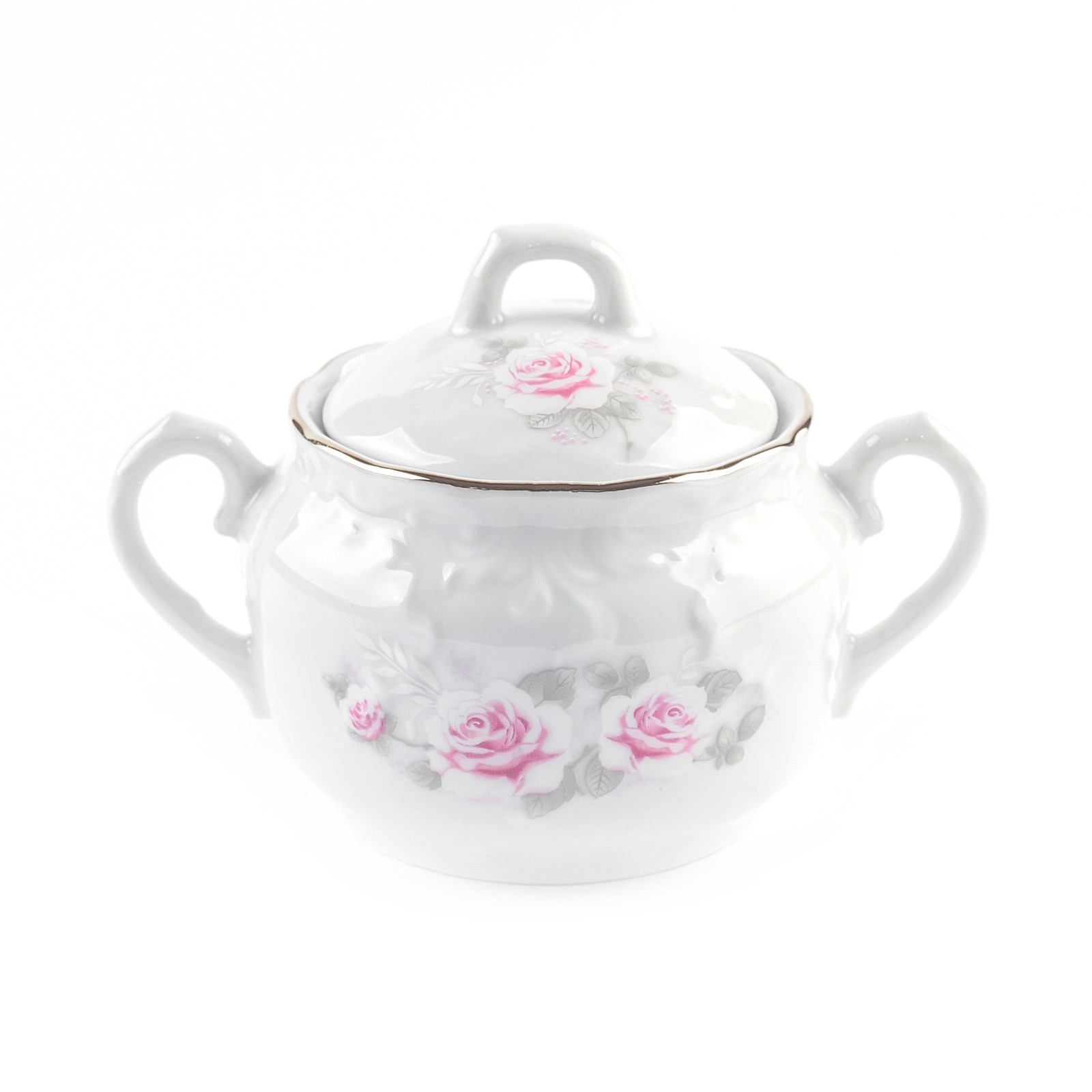 Сахарница Cmielow Rococo «бледные розы, отводка платина», 200 мл