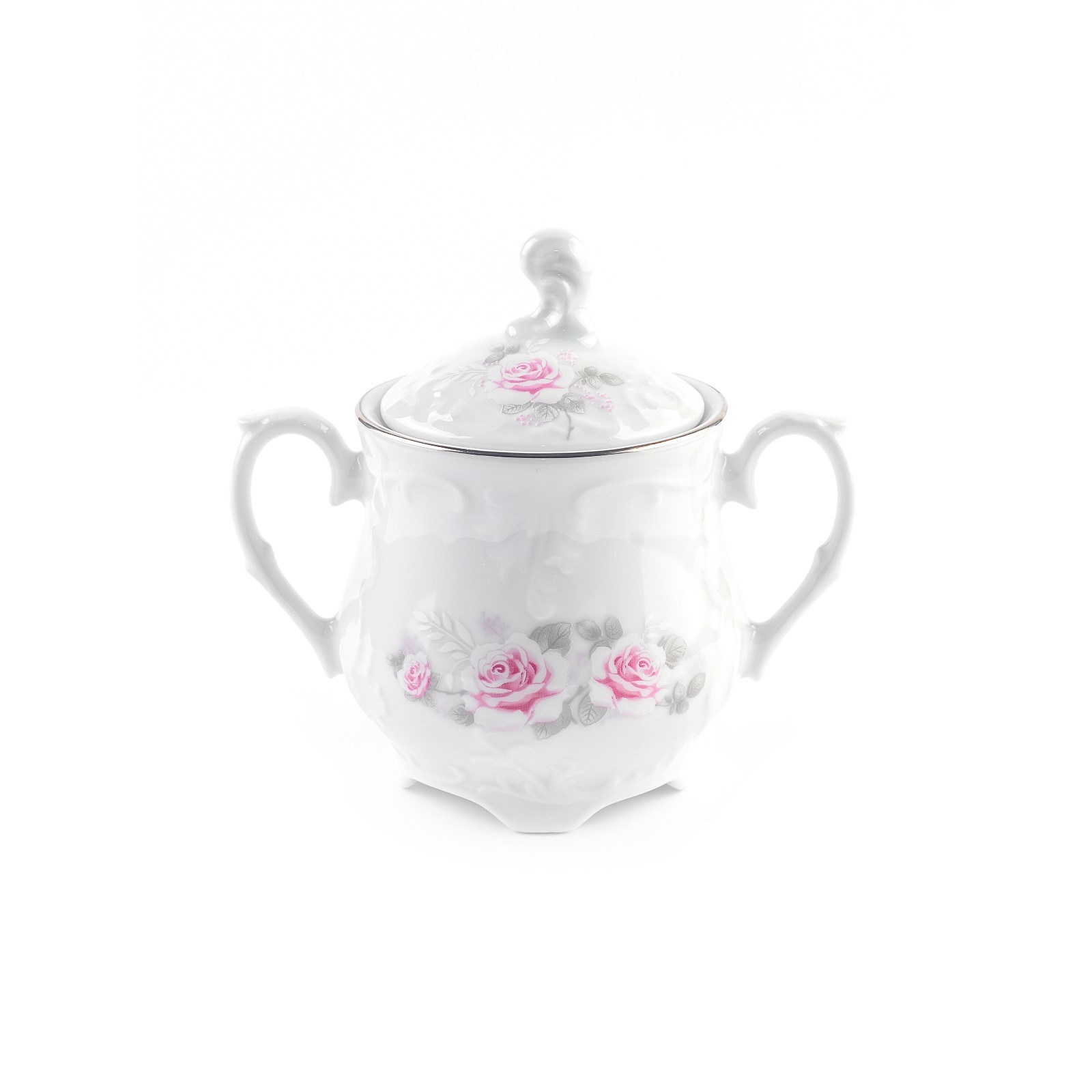 Сахарница Cmielow Rococo «бледные розы, отводка платина», 250 мл