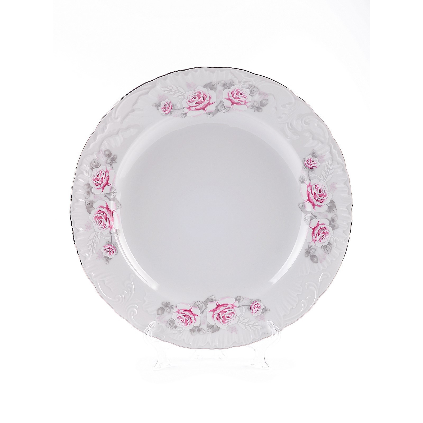 Тарелка Cmielow Rococo «бледные розы, отводка платина», D=26 см