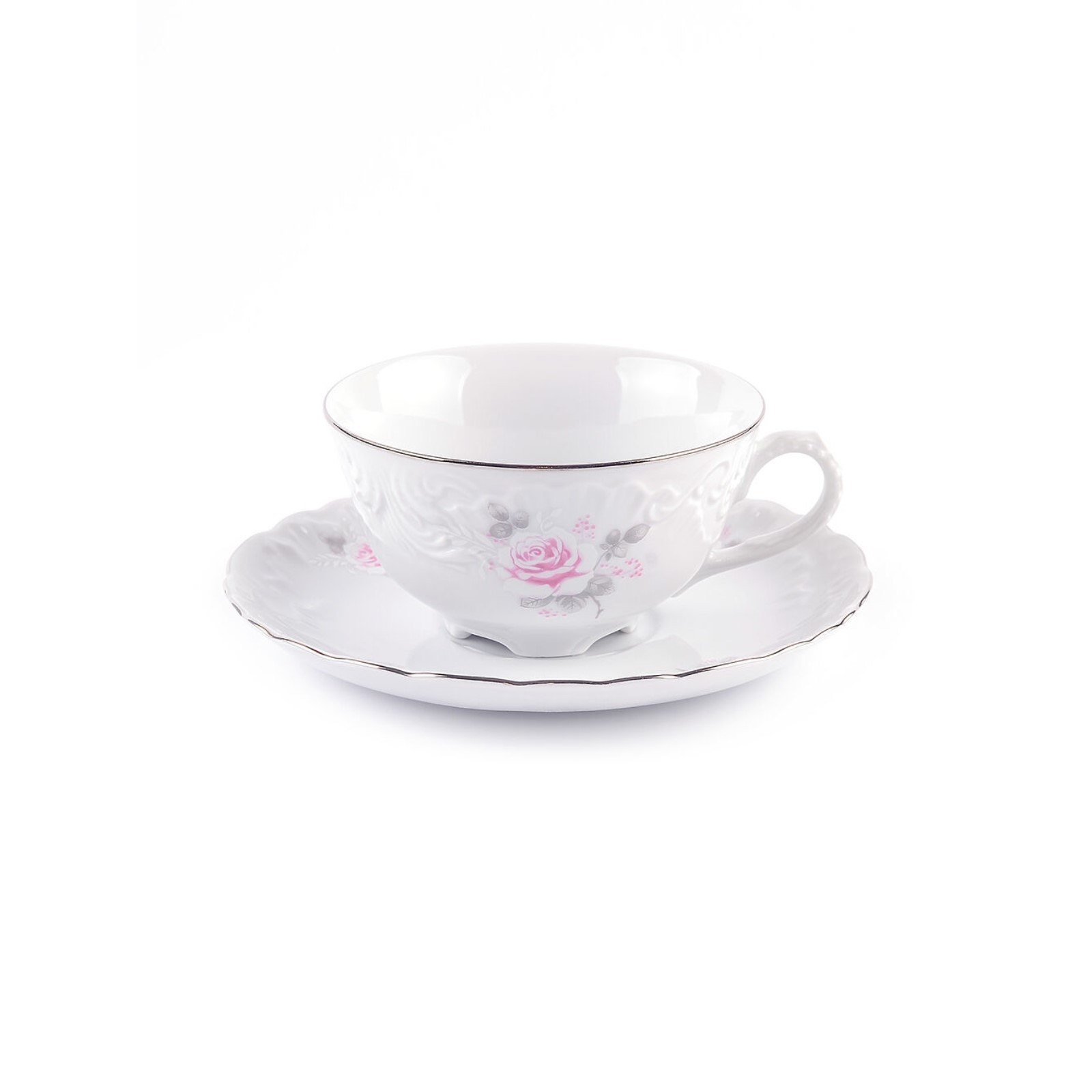 Чайная пара Cmielow Rococo «бледные розы, отводка платина», 220 мл