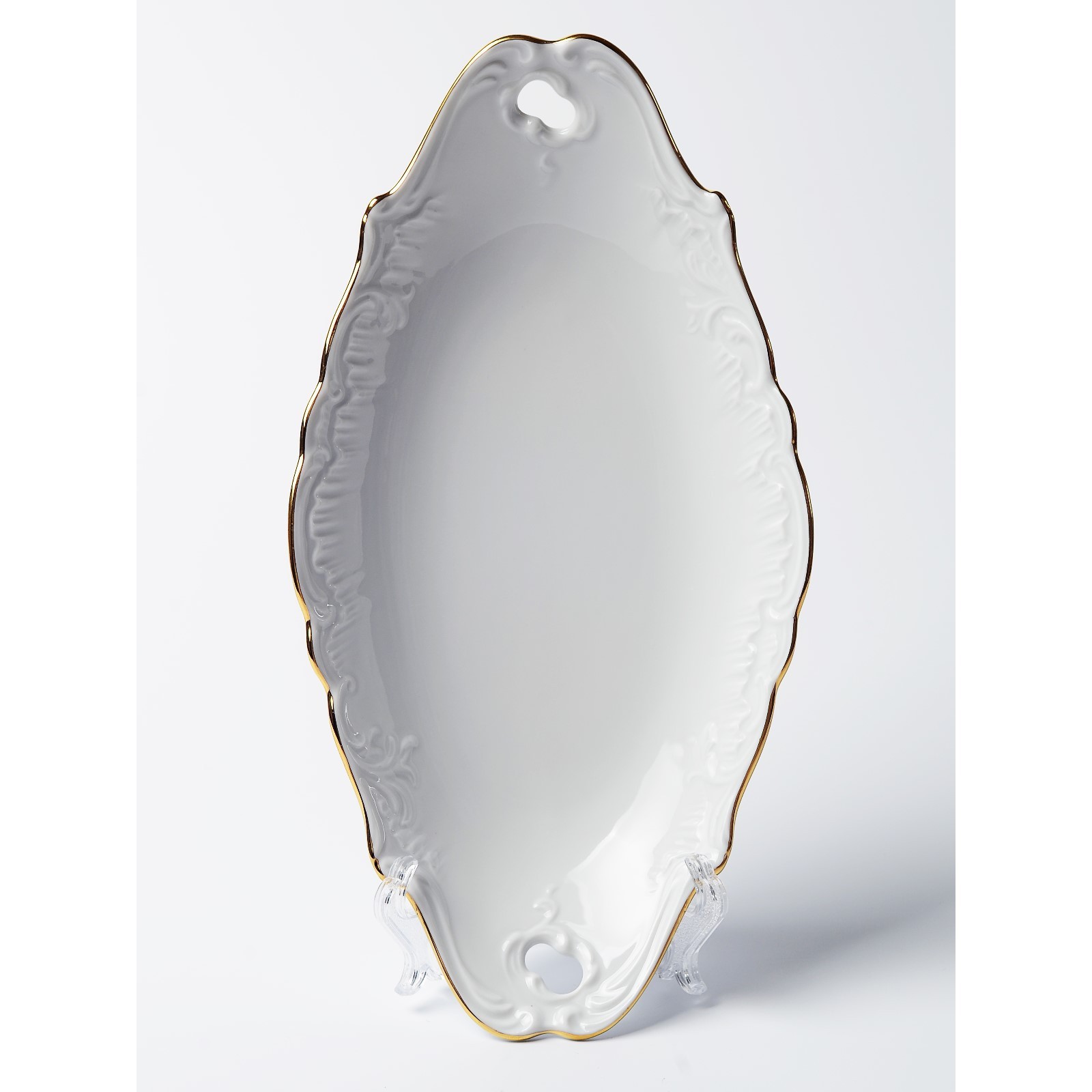 Блюдо овальное Cmielow Rococo «золотая отводка», с ручками, длина 25 см
