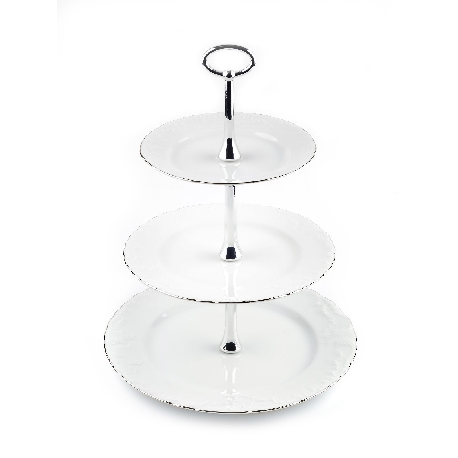 Этажерка трёхъярусная cmielow rococo «отводка платина». Диаметр тарелок в этажерке «Рококо» - 26, 21 и 17 см. Цвет: Белый Форма: Круглая tnved: 6911100000 Тематика: Полоски, полоса Материал: Фарфор Можно мыть в посудомоечной машине: Нет Можно использовать в СВЧ-печи: Нет Текстура: С рельефом Особенности: С серебряной отводкой Серия: Rococo Отводка платина Серия: Cmielow Rococo Отводка платина Форма: Круг, шар, цилиндр  развернуть описание ▼