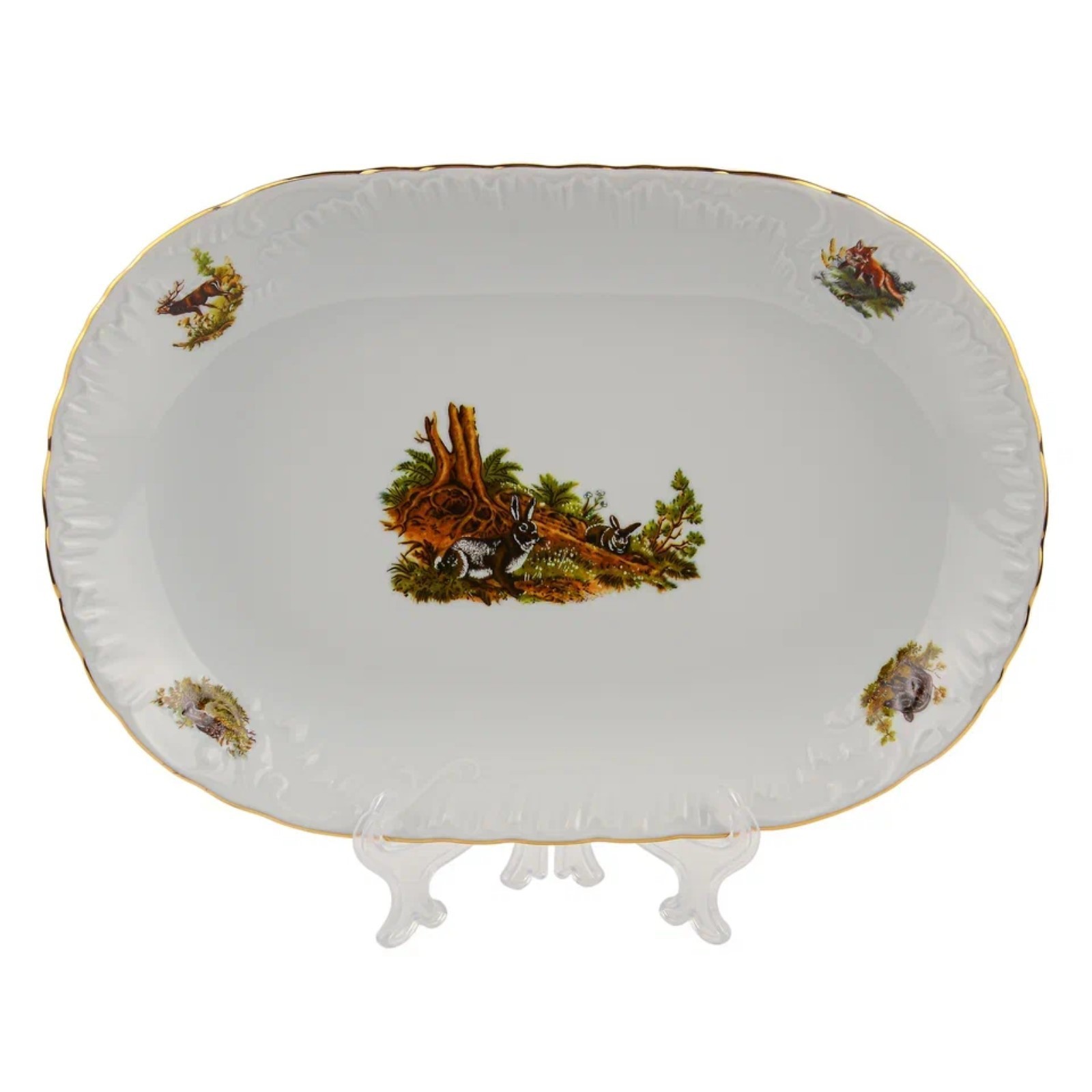 Блюдо овальное Cmielow Rococo «охота, отводка золото», длина 29 см