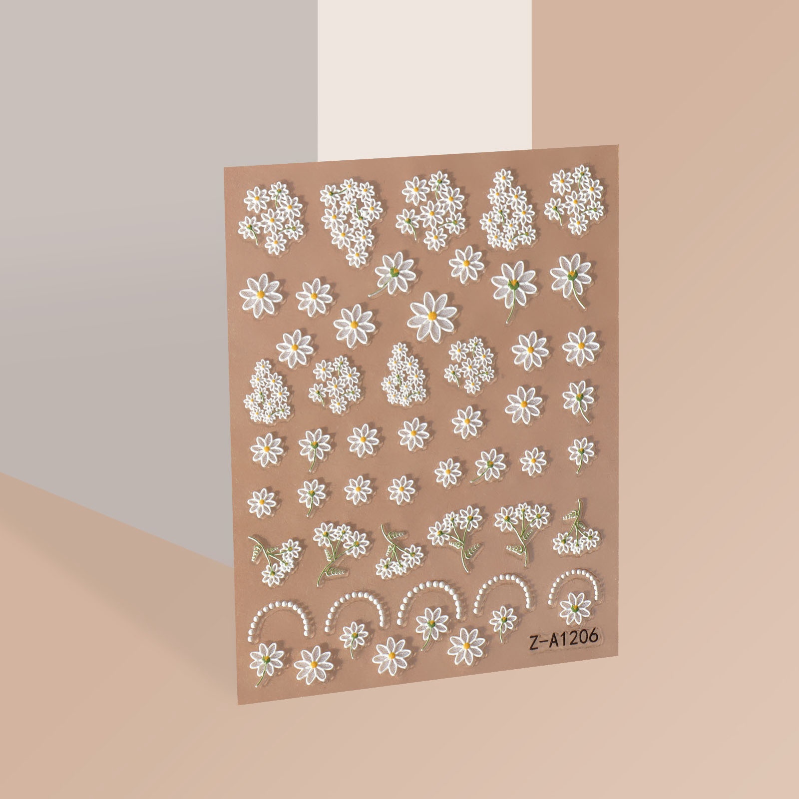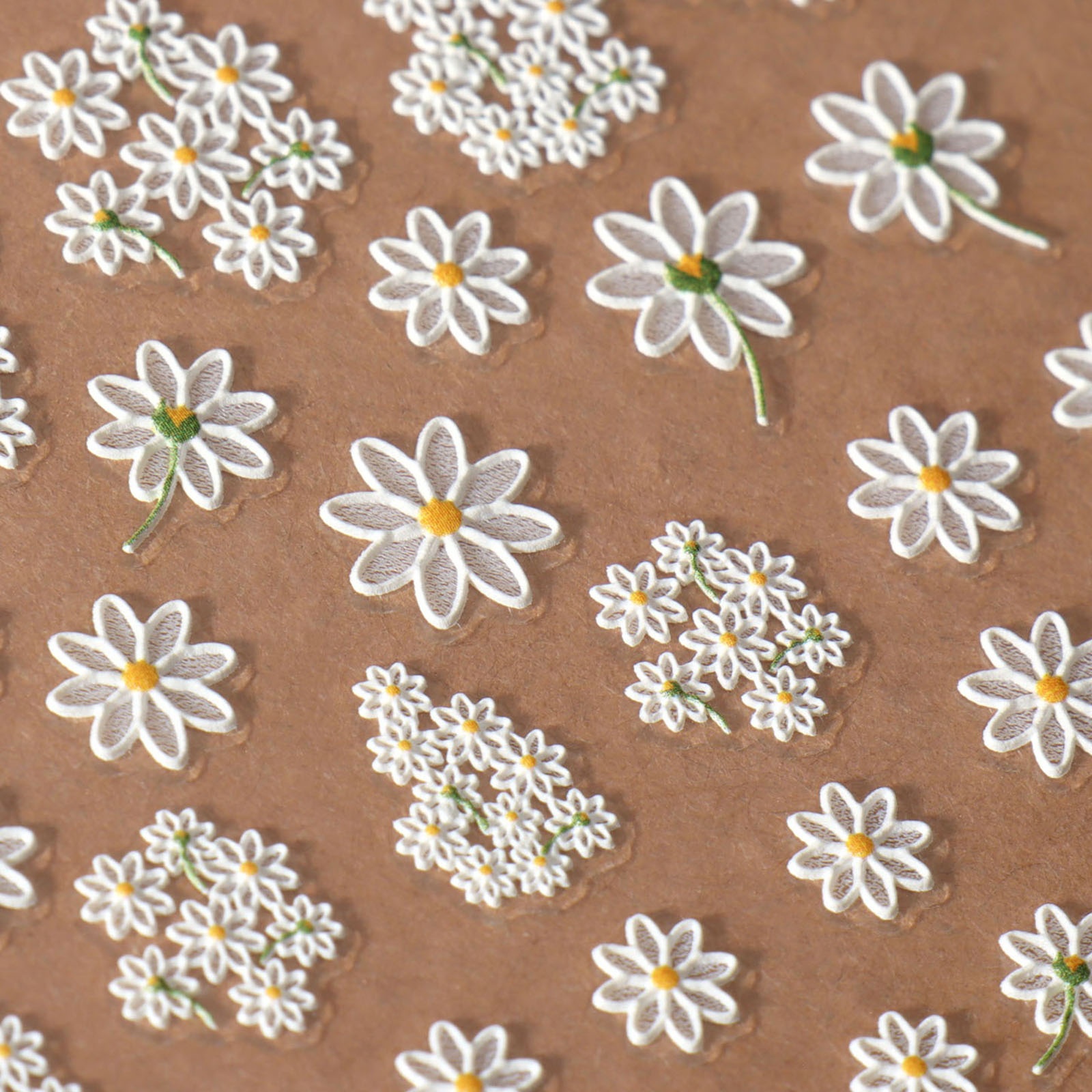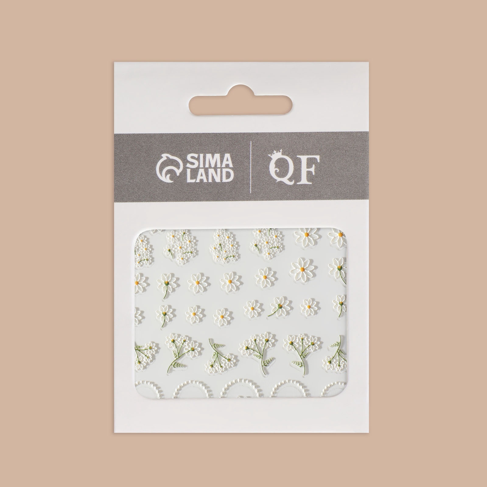 Наклейки для ногтей «букеты ромашек», объёмные, белые
