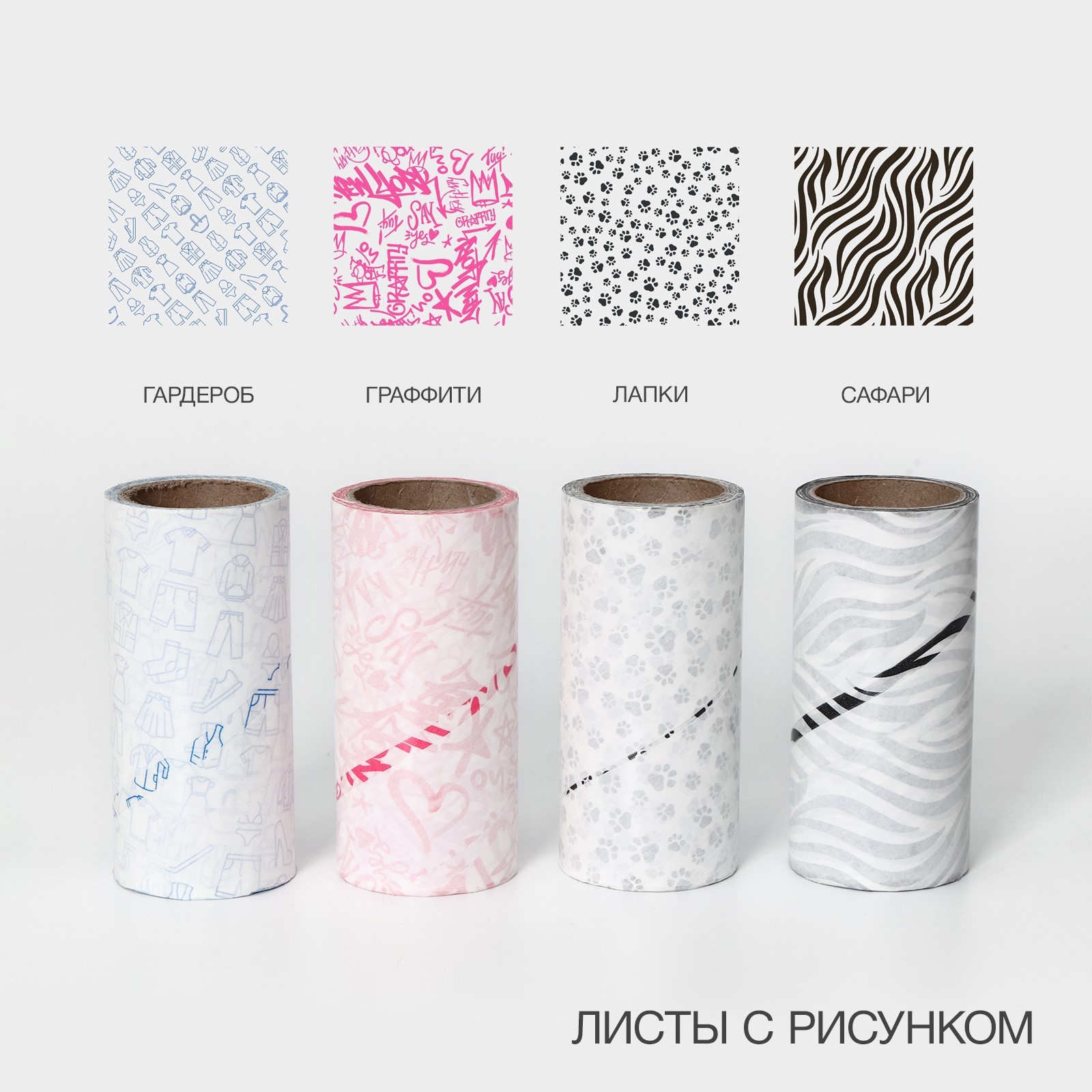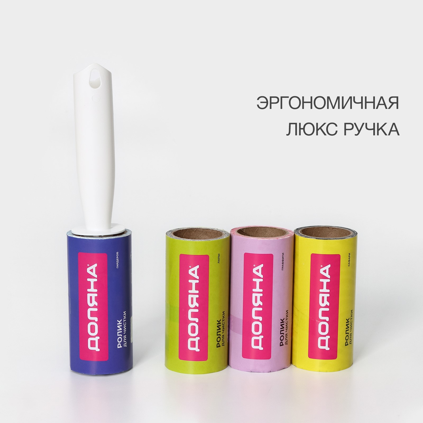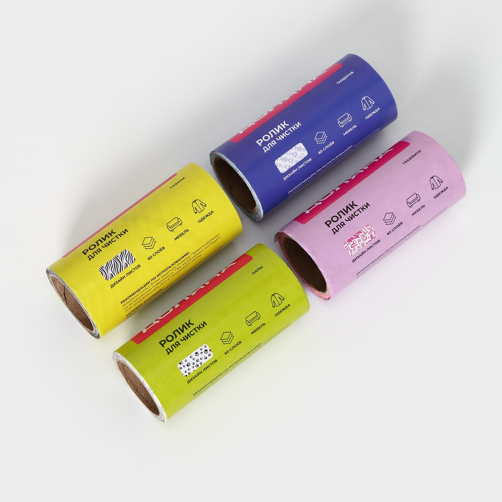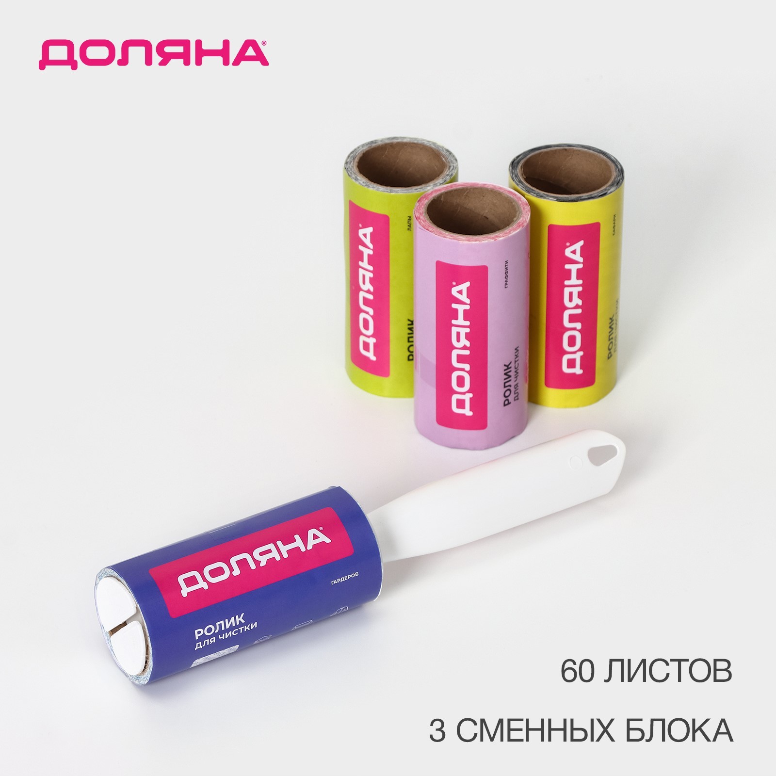 Ролик для чистки одежды доляна, 60 листов + 3 сменных блока по 60 листов с рисунком