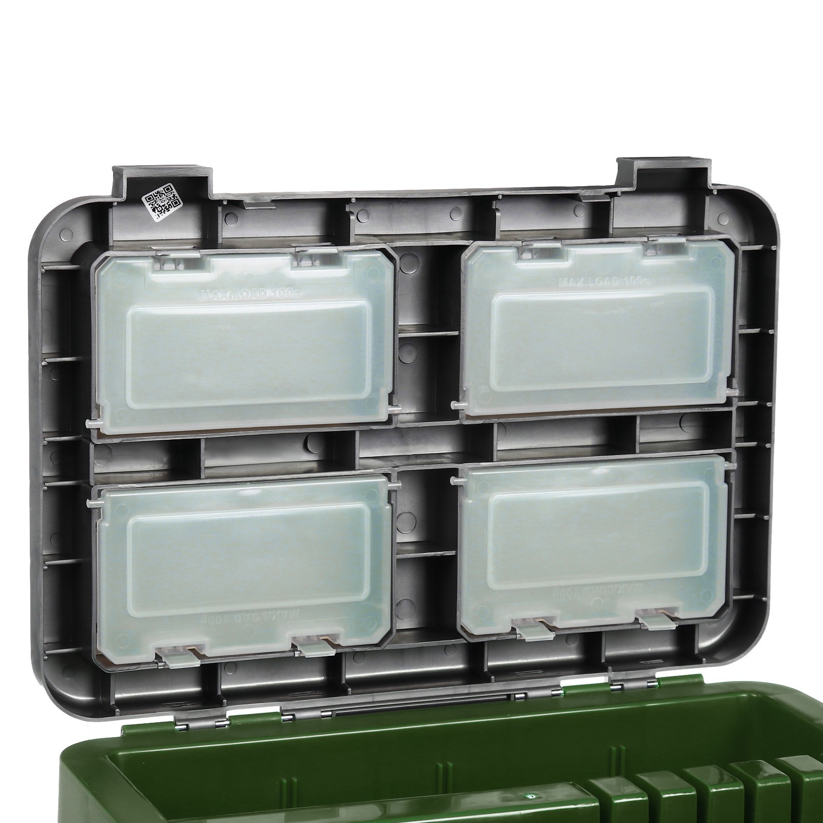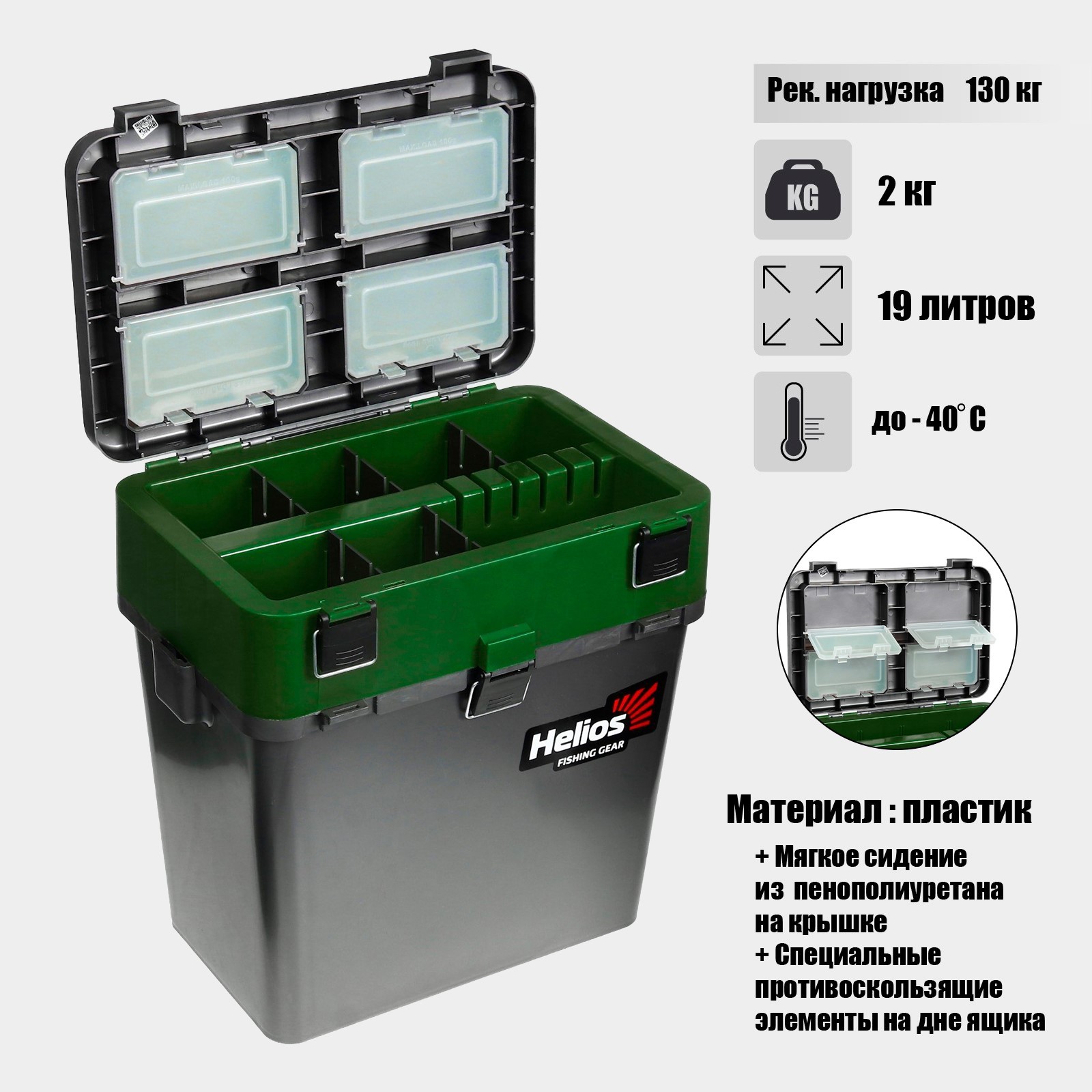Ящик зимний helios, цвет серый-хаки. parts count: 0 Количество отделений: 2 Количество ячеек: 12 Материал: Пластик Температурное ограничение: Нет Вид: Ящик Съёмные перегородки: Да Особенности: Раскладной Сезон рыбалки: Зимняя  развернуть описание ▼