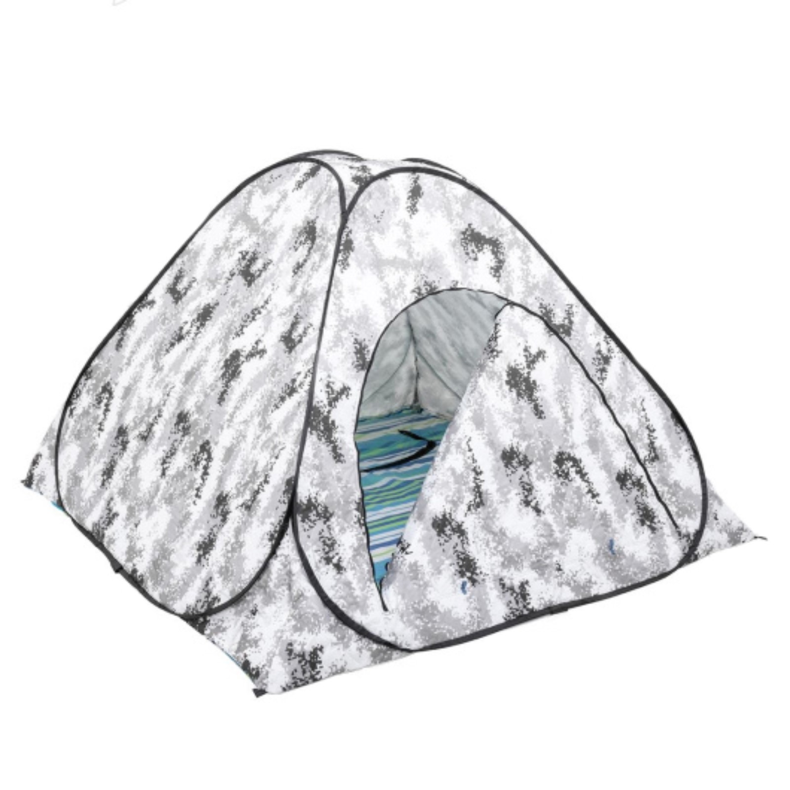 Палатка зимняя автомат утепленная, дно на молнии, 1.8 х 1.8 м, кмф. Зимняя утепленная палатка-автомат уникальное изобретение, которое позволяет установить временное жилище за считанные секунды. Удобна для размещения одного рыболова со снастями. В качестве материала палатки использована ткань Oxford 210D PU 1000. Она дублируется тканью «термостежка» с синтепоном. Такой материал отличается высокими теплоизоляционными свойствами и износостойкостью, что положительно сказывается на поддержании комфортной температуры в палатке. Дно снабжено специальным отверстием для лунок, закрывающимся на молнию. Это очень удобно. В палатке с полом рыболову ловить гораздо комфортнее, теплее. По углам палатки сделаны петли под ввертыши, для надежного фиксирования на льду. Есть небольшое окно на замке, регулирующее микроклимат внутри. Вход в палатку закрывается двухсторонней молнией, что обеспечивает удобное закрытие и открытие входа. Светлые стенки палатки не нарушают освещенность при ловле в пасмурную погоду. Палатка мгновенно раскрывается и быстро складывается обратно в круглый чехол-переноску. Легкая и компактная, пригодна для частого использования. Характеристики: Длина и ширина основания м. : 1, 8 х 1, 8Высота, м. : 1, 1Диаметр в сложенном виде: 60 см;Тип: автоматМатериал: 80% Оксфорд 210, 10% cotton, 10% PUPU 1000Каркас: сталь, 3, 8 мм. Вес, кг. : 3Цвет: КМФ цифра Вместимость, чел.: 1 Вместимость, чел.: 2 Цвет: Камуфляж parts count: 0 Количество входов: 1 Количество слоёв: 2 Влагозащита тента, мм водного столба: 1000 Материал: Оксфорд Материал каркаса: Сталь Количество тамбуров палатки: Без тамбура Материал внешнего тента: Полиоксфорд Конструкция палатки: Палатка-автомат Температурное ограничение: Нет Назначение палатки: Трекинговые Вид: Палатки Тип каркаса: Внутренний Сезон: Зимняя  развернуть описание ▼