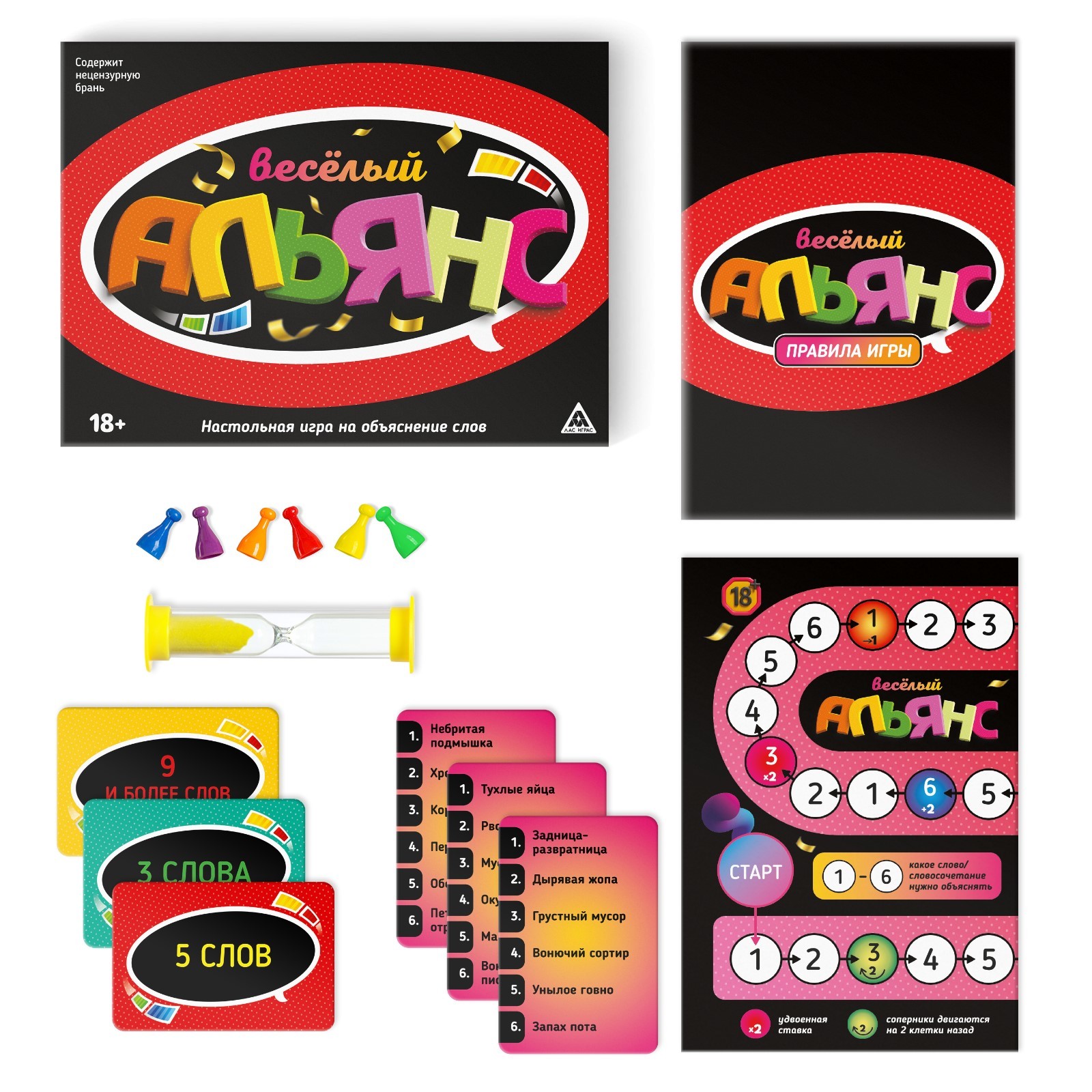 Настольная игра для взрослых на объяснение слов «весёлый альянс», 135 карт, игровое поле, песочные часы, 6 фишек, 18+