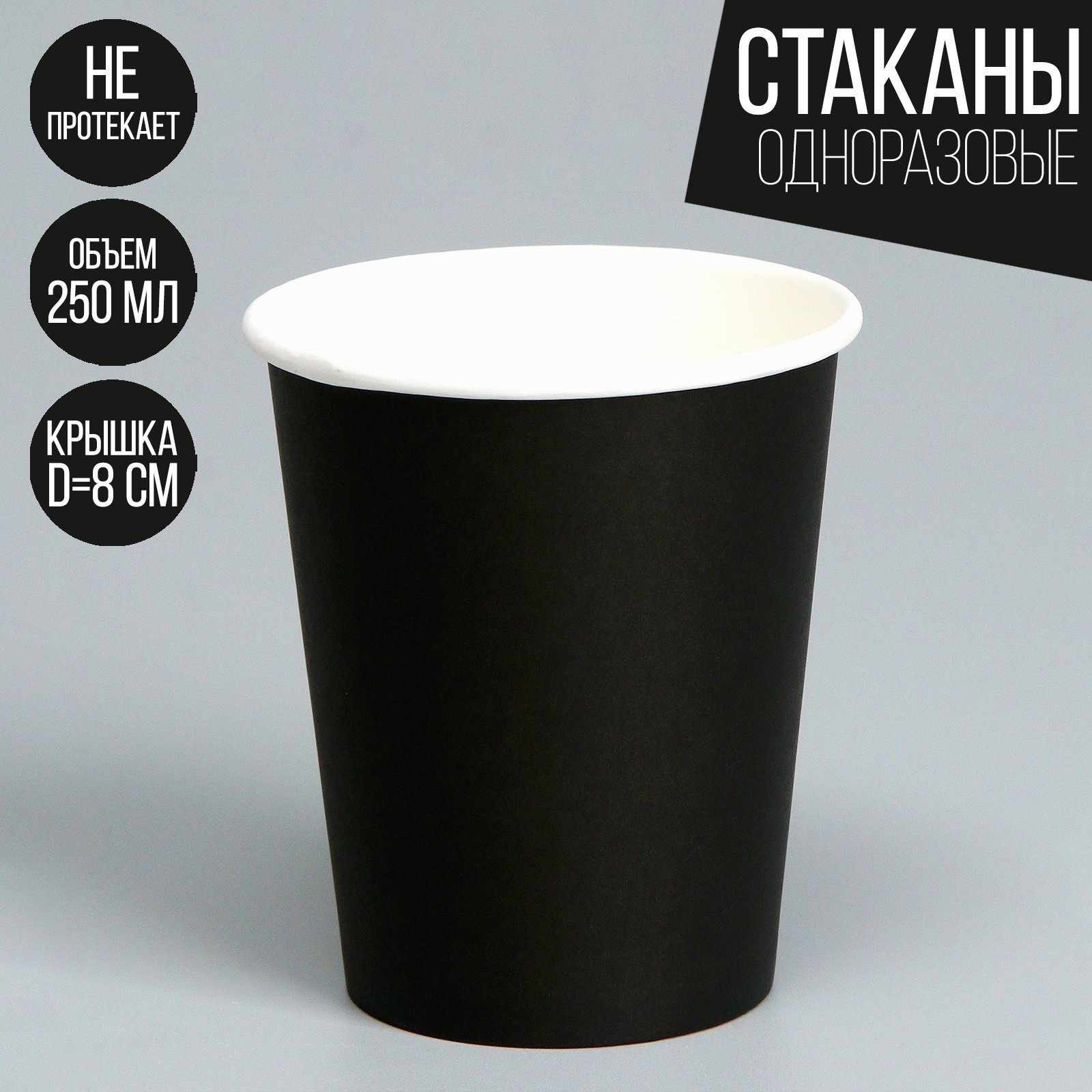 Стакан одноразовый бумажный, однотонный, цвет черный, 250 мл, 50 шт