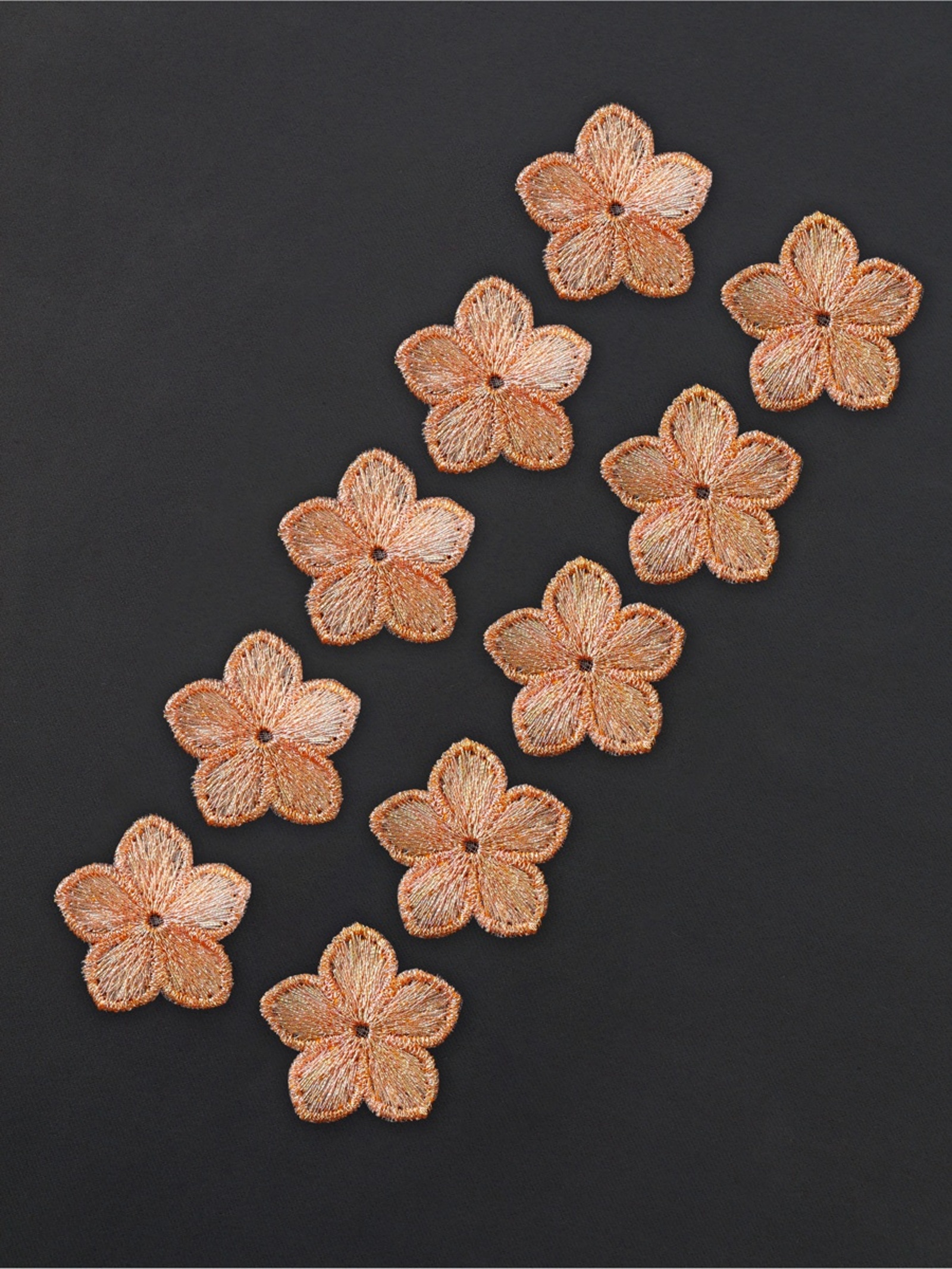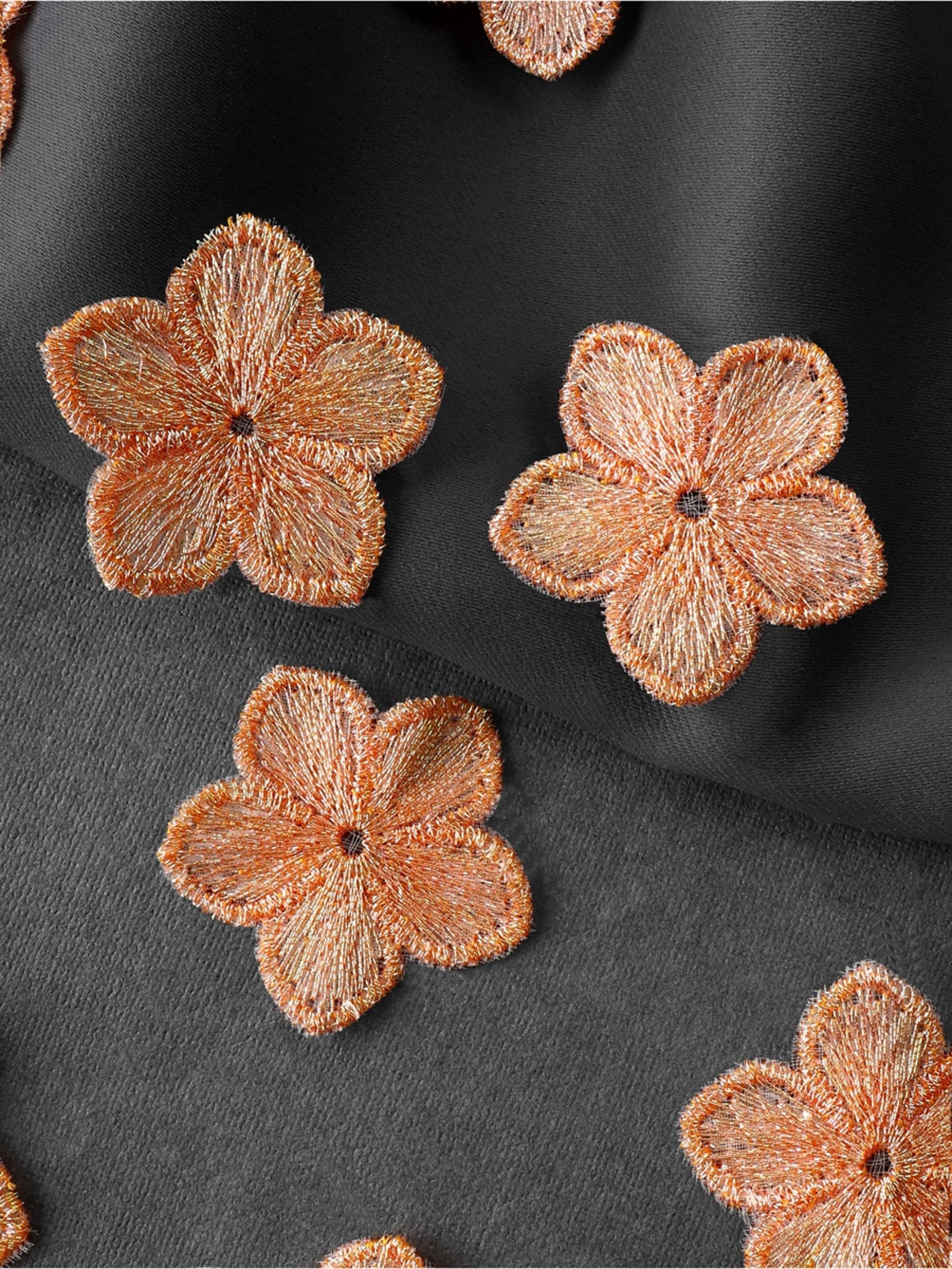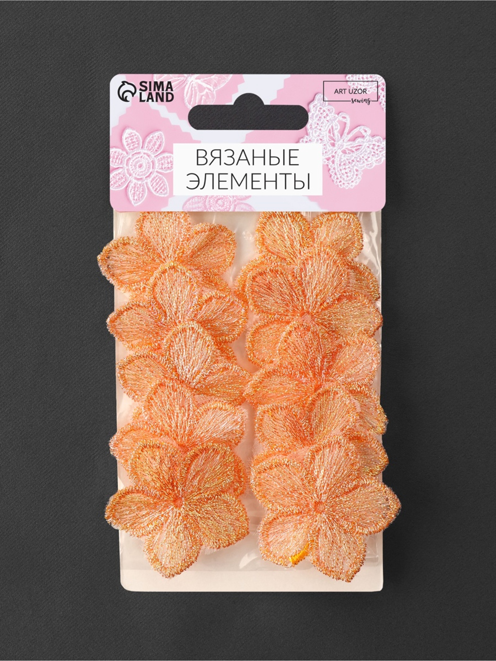 Аппликация для одежды «цветок», текстильная, с голографической нитью, 3.5 3.5 см, 10 шт., оранжевая. Откройте для себя деталь, которая придаст вашей одежде неповторимый шарм — текстильную аппликацию с голографической нитью. Эти изящные цветы размером 3.5 3.5 см станут стильным акцентом, способным преобразить любую вещь, добавив ей индивидуальности и изысканности. Аппликации выполнены из прочного полиэстера, что обеспечивает их долговечность и устойчивость к износу. Нежный персиковый оттенок в сочетании с голографическим эффектом делает их универсальным украшением как для повседневных, так и для праздничных образов. В наборе вы найдёте 10 штук, что открывает простор для творчества и позволяет реализовать множество идей. Игра света: голографическая нить создаёт эффект переливов, который притягивает взгляды и добавляет образу лёгкую магию.Многофункциональность: аппликации подходят для декора одежды, сумок, головных уборов и даже текстиля, становясь стильным акцентом в любом интерьере.С этим набором вы сможете вдохнуть новую жизнь в старые вещи или добавить изюминку в свой гардероб. Каждый цветок станет символом вашего творческого подхода и внимания к деталям, превращая даже самые простые предметы в уникальные. Позвольте себе стать дизайнером собственного стиля, создавая образы, которые будут радовать вас и вдохновлять окружающих! Набор:Да|Цвет:Оранжевый|Для кого:Для девочки|Длина, м:0.03|Длина, см:3.5|Ширина, см:3.5|Ширина, мм:35|В наборе, шт.:10|Тематика:Цветочно-растительная|Материал:Полиэстер|Вид:Вязаные аппликации|Двусторонний:Нет|Особенности :С голографией|Страна:Китай  развернуть описание ▼