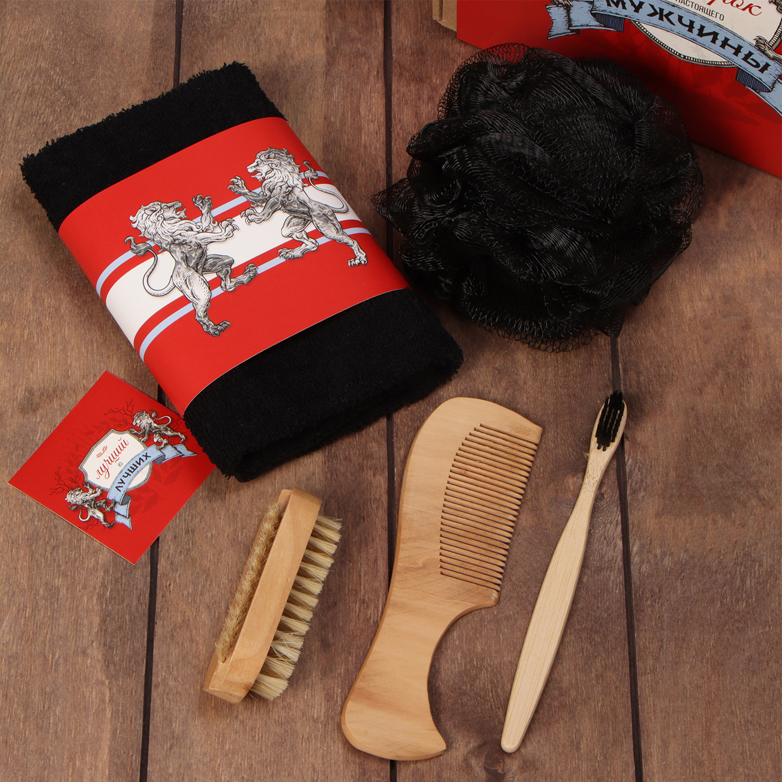 Набор подарочный «этель. настоящему мужчине», полотенце, щётка, расчёска. Набор:Да|Цвет:Красный|Цвет:Чёрный|Для кого:Для мужчины|Ткань:Махра|Плотность, г/м :350|Размер, см:35 х 50|В наборе, шт.:6|Тематика:Мужская|Вид упаковки:Термоусадочная плёнка|Вид упаковки:Подарочная коробка|Рисунок:Да|Тематика праздника:23 Февраля|Адресат:Мужчине|Материал:Махра|Декоративные элементы:Без элементов|Рекомендации по уходу:Не отбеливать|Рекомендации по уходу:Глажка при 150 °С|Рекомендации по уходу:Барабанная сушка при низкой температуре|Рекомендации по уходу:Стирка при 40 °С|Назначение полотенец:Для рук|Состав ткани:Хлопок|Составляющие набора:Расчёска для волос|Составляющие набора:Щётка|Составляющие набора:Зубная щётка|Составляющие набора:Мочалка|Составляющие набора:Полотенце|Составляющие набора:Открытка|Возраст:Для взрослых|В подарочной упаковке:Да|Особенности:Без особенностей|Страна:Россия  развернуть описание ▼