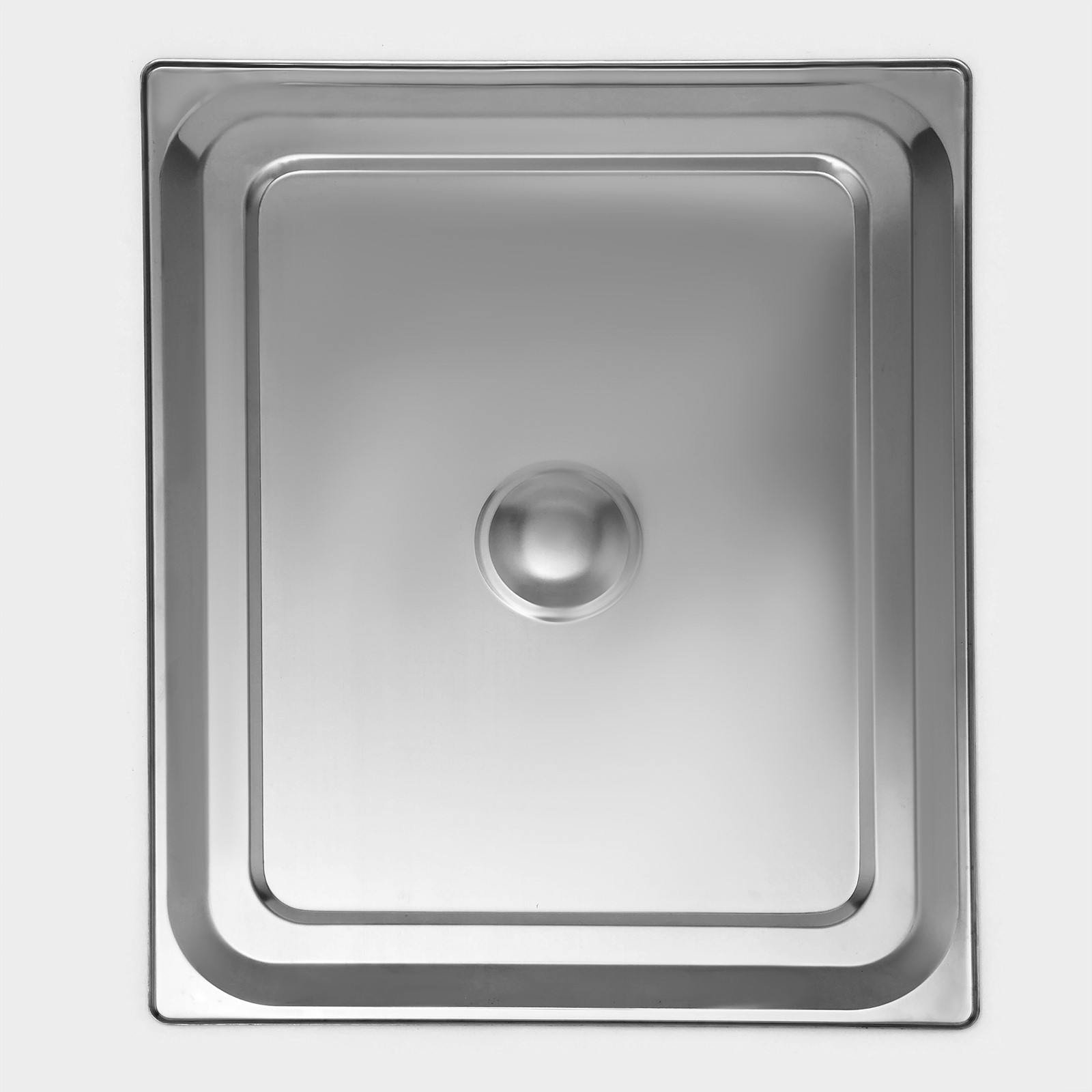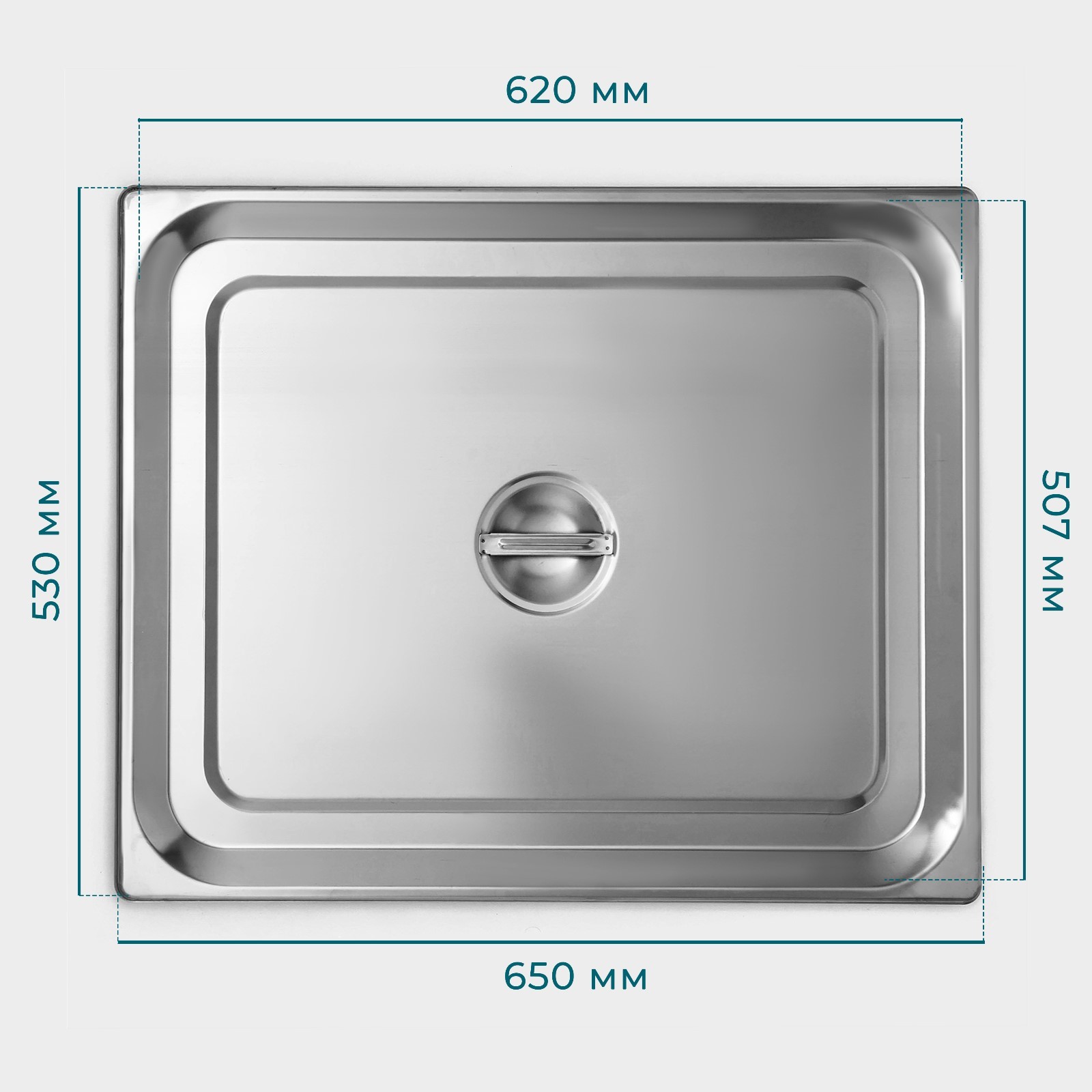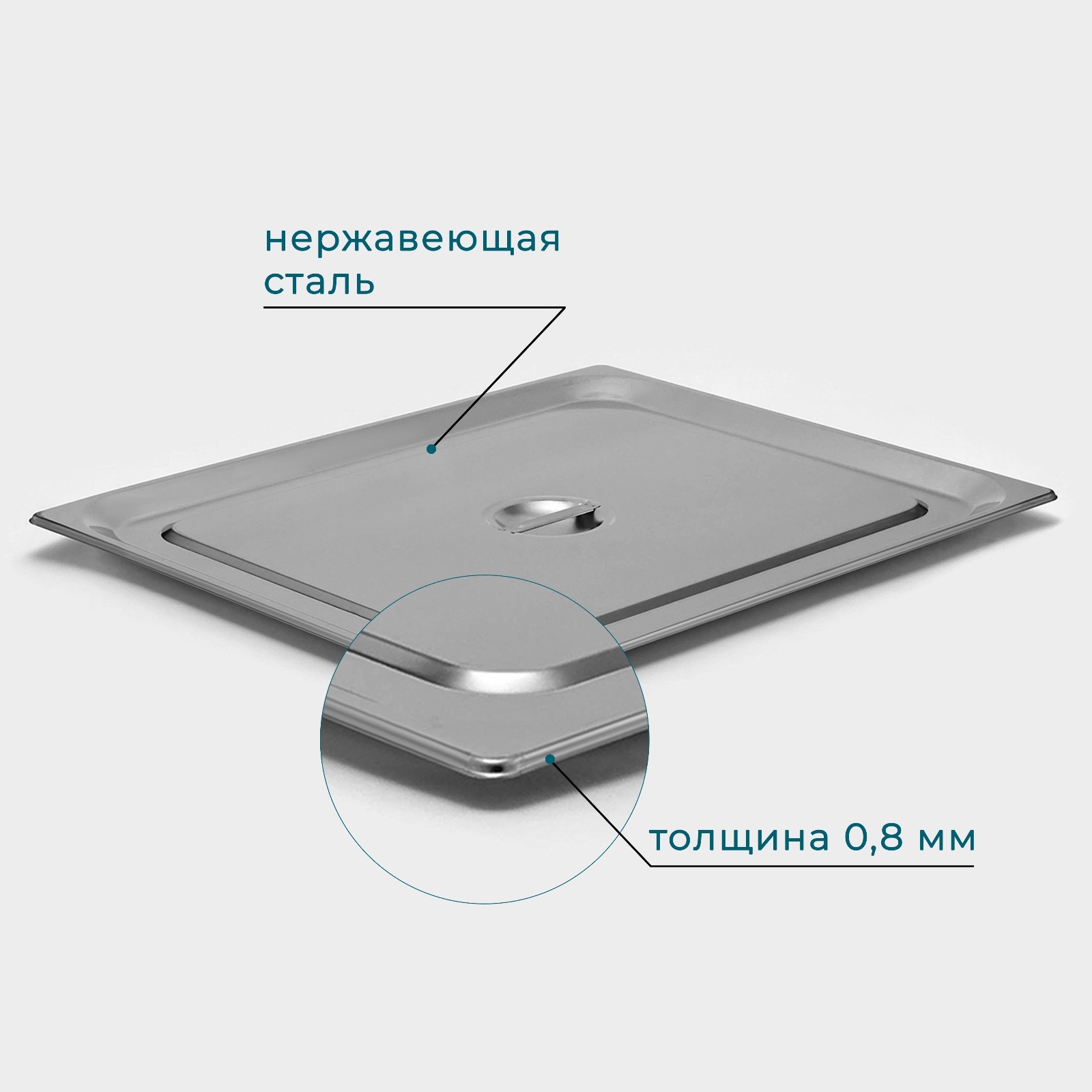 Крышка из нержавеющей стали к гастроемкости 2/1, 65,4x53,3 см, толщина 0,8 мм. Крышка к гастроёмкости из нержавеющей стали — это аксессуар, который используется для накрывания гастроёмкостей на кухне заведений общественного питания. Она предназначена для хранения, транспортировки, приготовления и подачи различных продуктов и блюд. Также крышки для гастроёмкостей используют в магазинах и на пищевых производствах. Цвет: Серебристый Форма: Прямоугольная Материал: Нержавеющая сталь Размер: GN 2/1 Можно мыть в посудомоечной машине: Да Форма: Прямоугольник  развернуть описание ▼