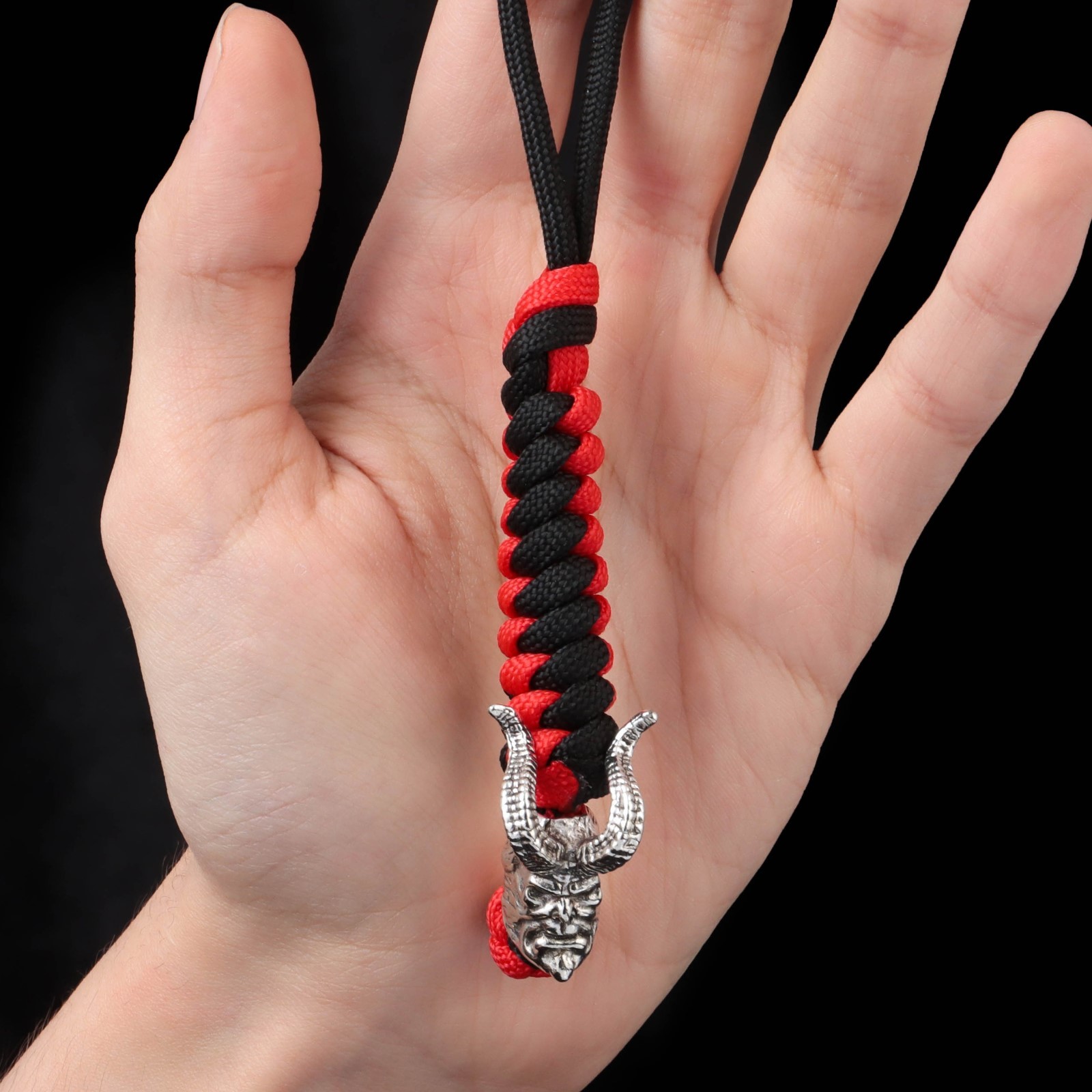 Брелок - темляк для ножа "хеллбой" из паракорда, черно-красный, 15 см