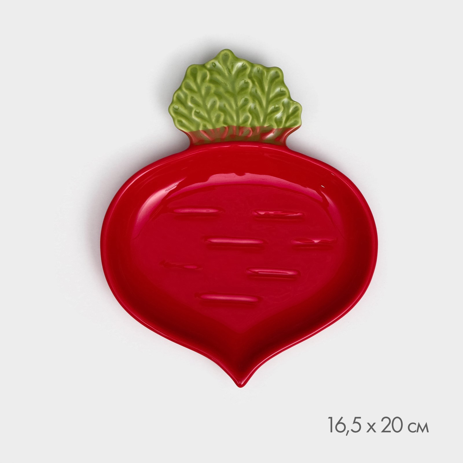 Тарелка керамическая "редиска", плоская, красная, 20 см, 1 сорт, иран