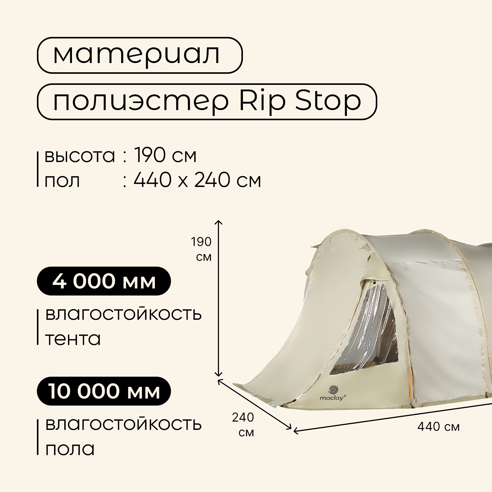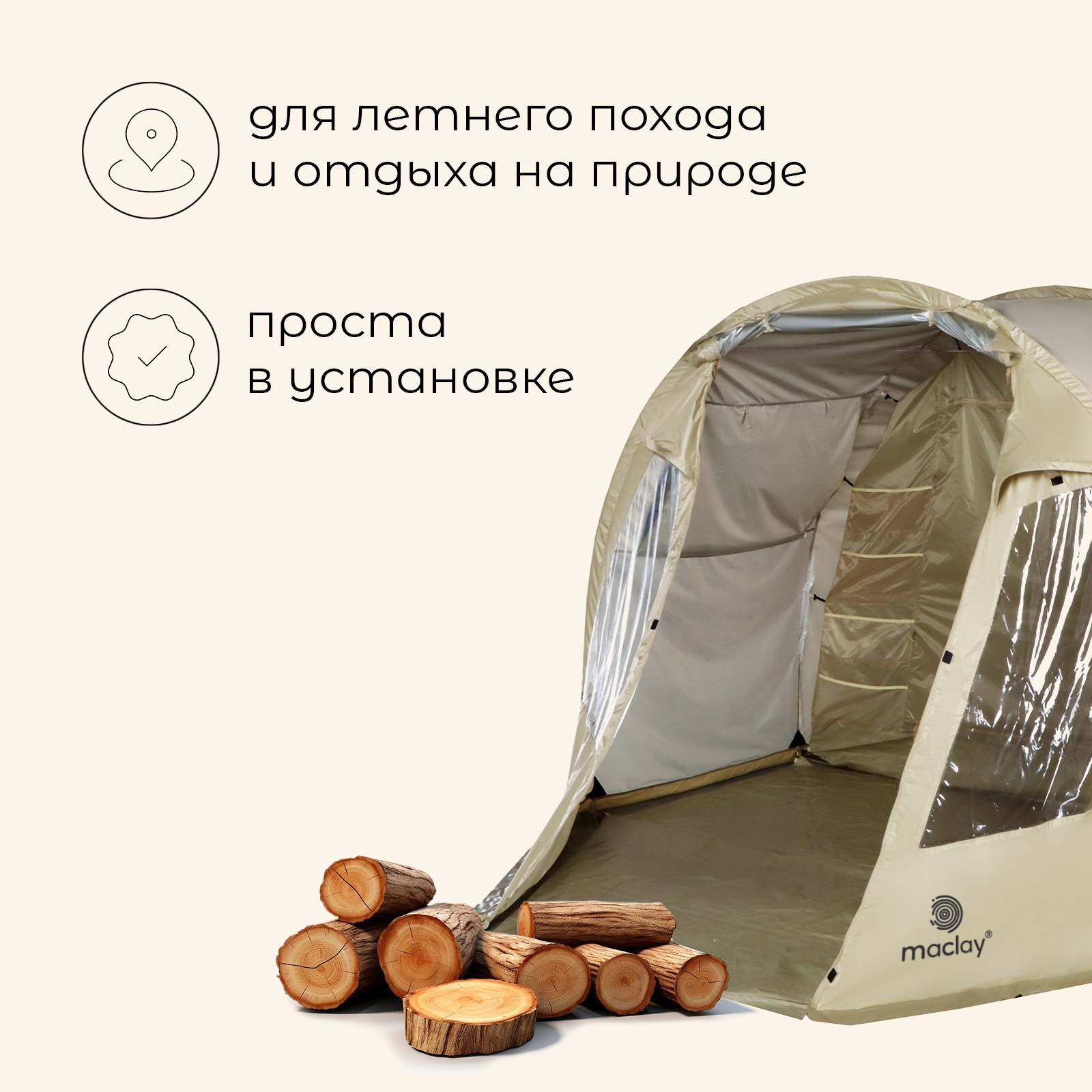 Палатка туристическая 4-местная Maclay Turgoyak Cool 4, 440 240 190 см, кемпинговая, двухслойная, с тамбуром, бежевая