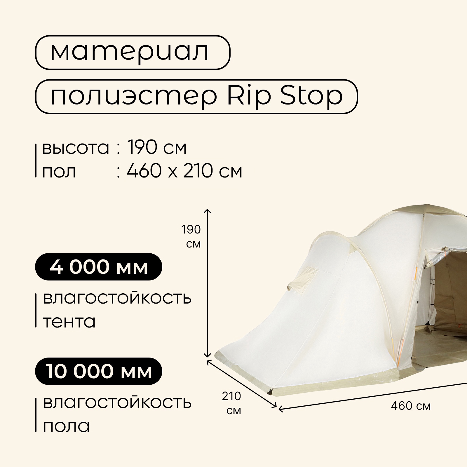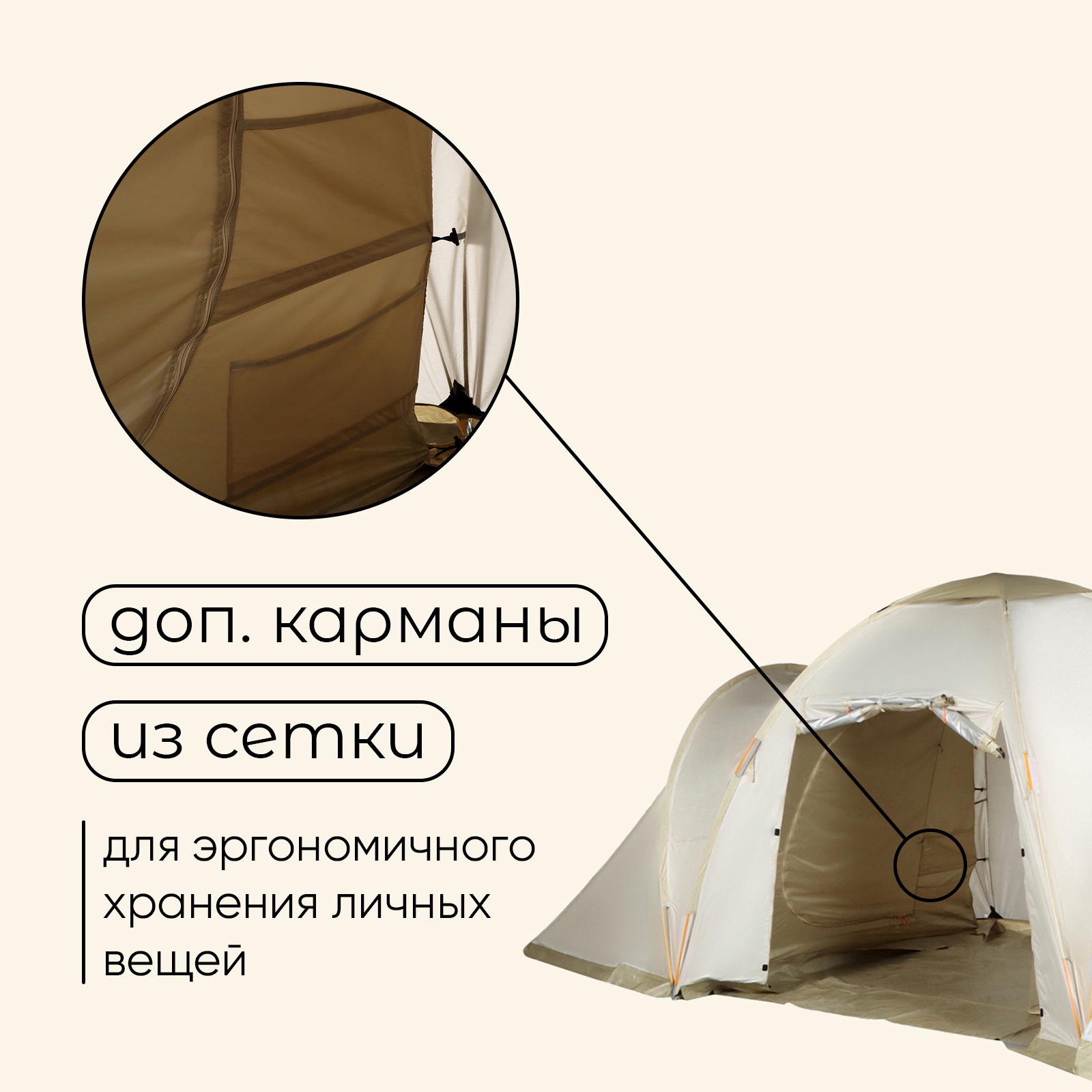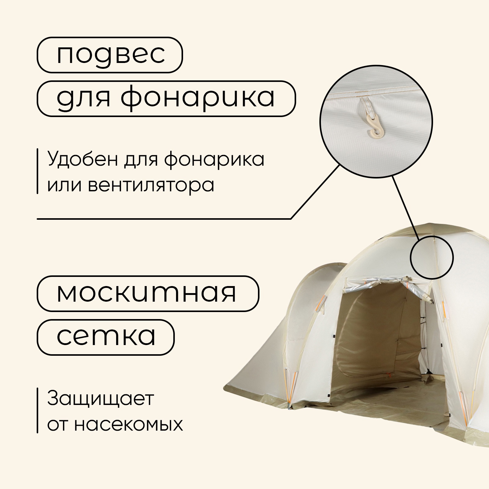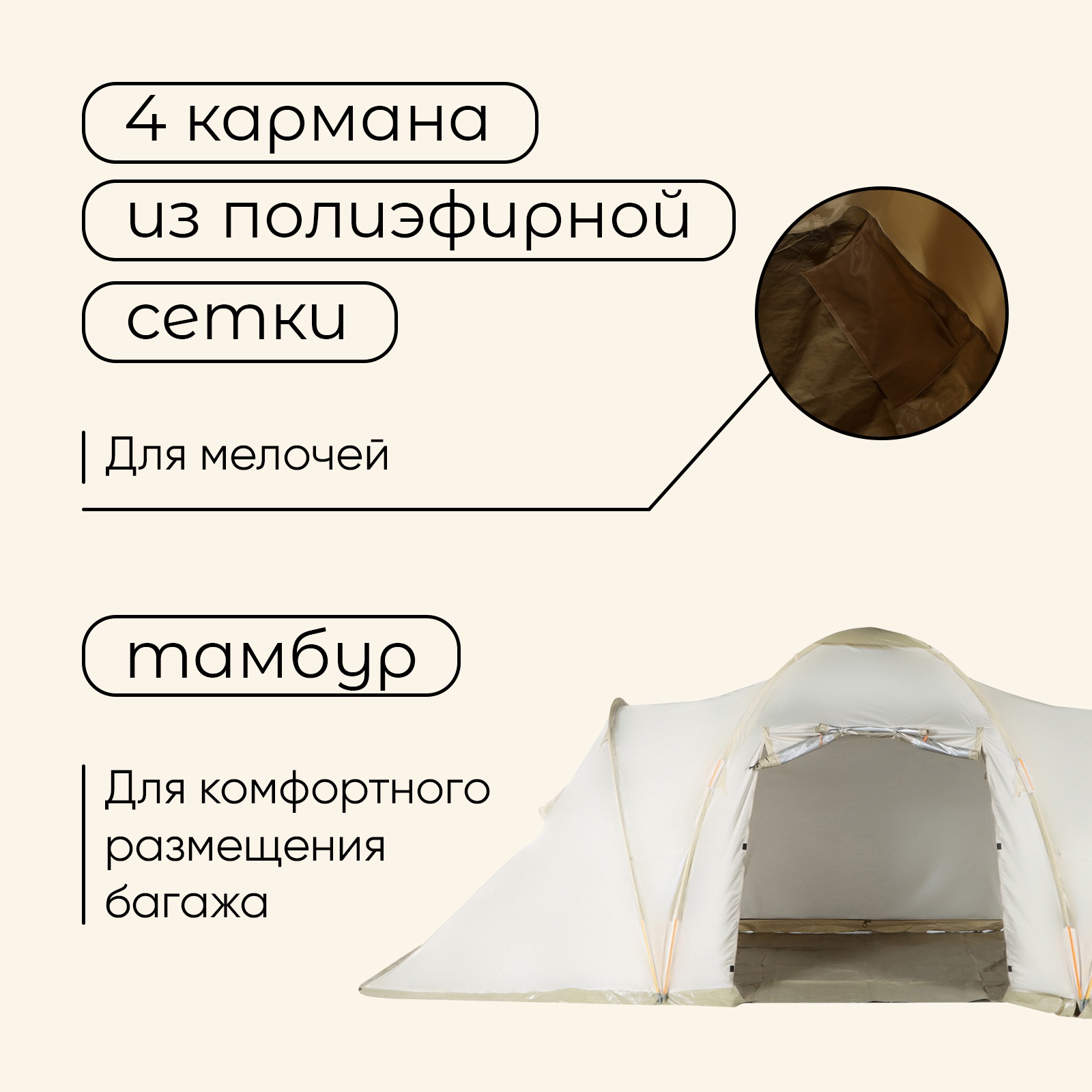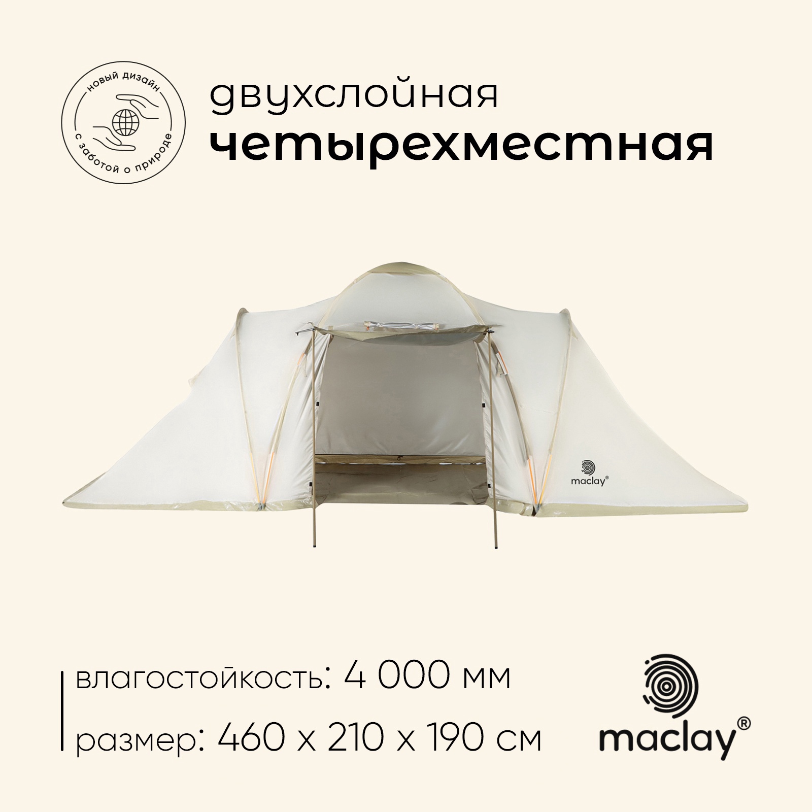 Палатка туристическая 4-местная Maclay Enisey Cool 4, 460 210 190 см, кемпинговая, двухслойная, с тамбуром, бежевая