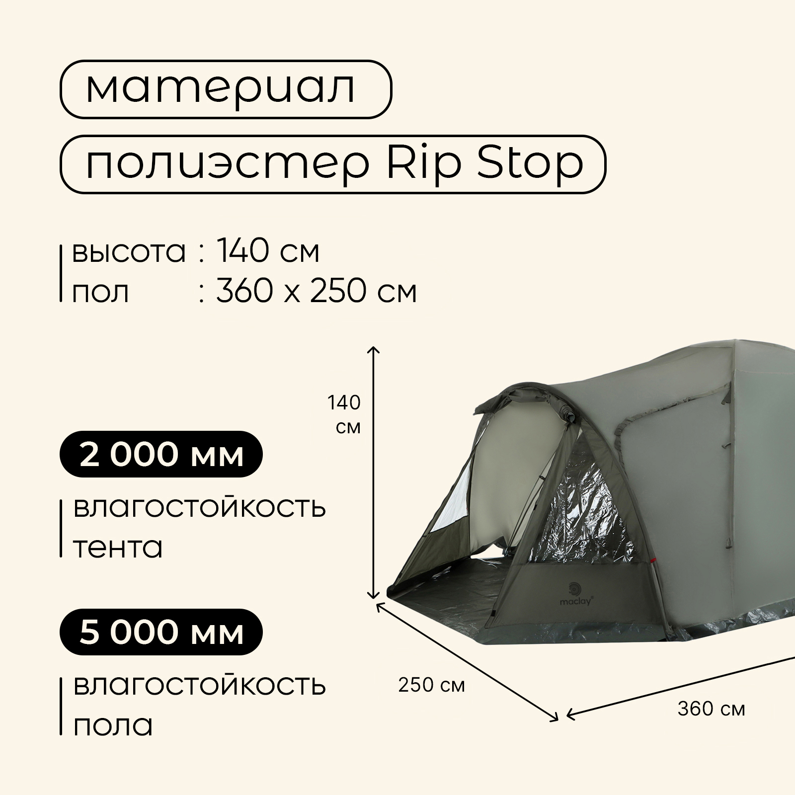 Палатка туристическая, треккинговая Maclay Kavkaz 4, 4-местная, с тамбуром