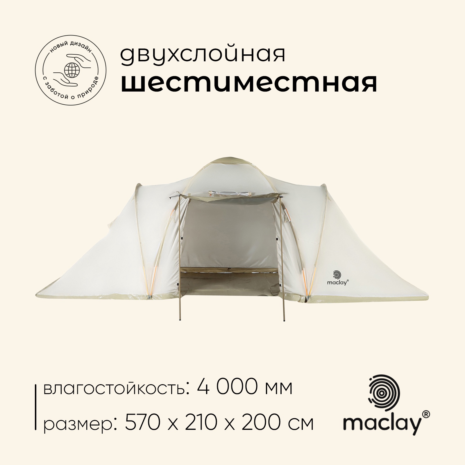 Палатка туристическая 6-местная Maclay Enisey Cool 6, 570 210 200 см, кемпинговая, двухслойная, с тамбуром, бежевая