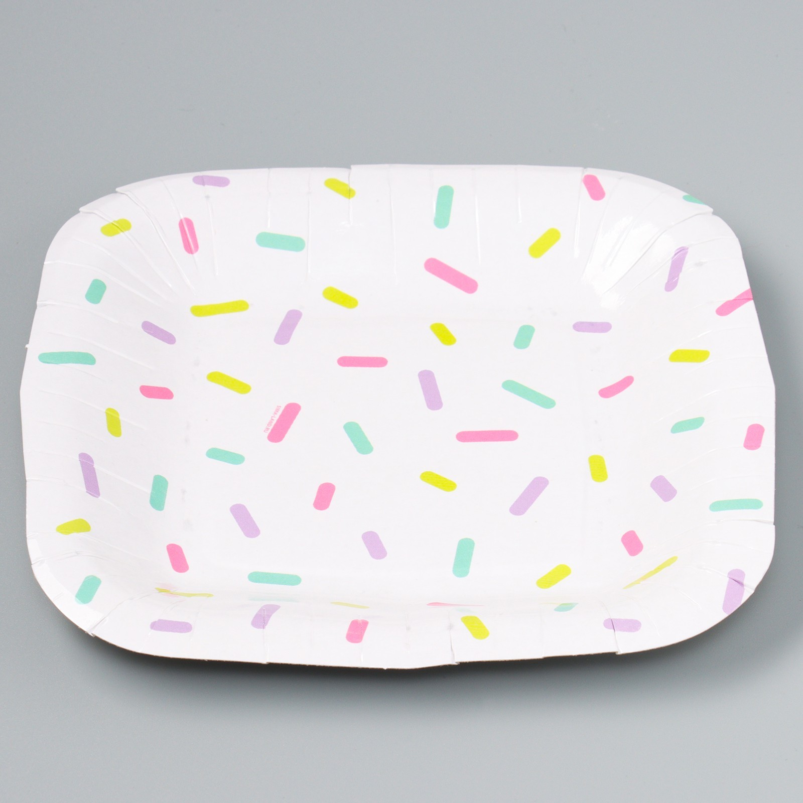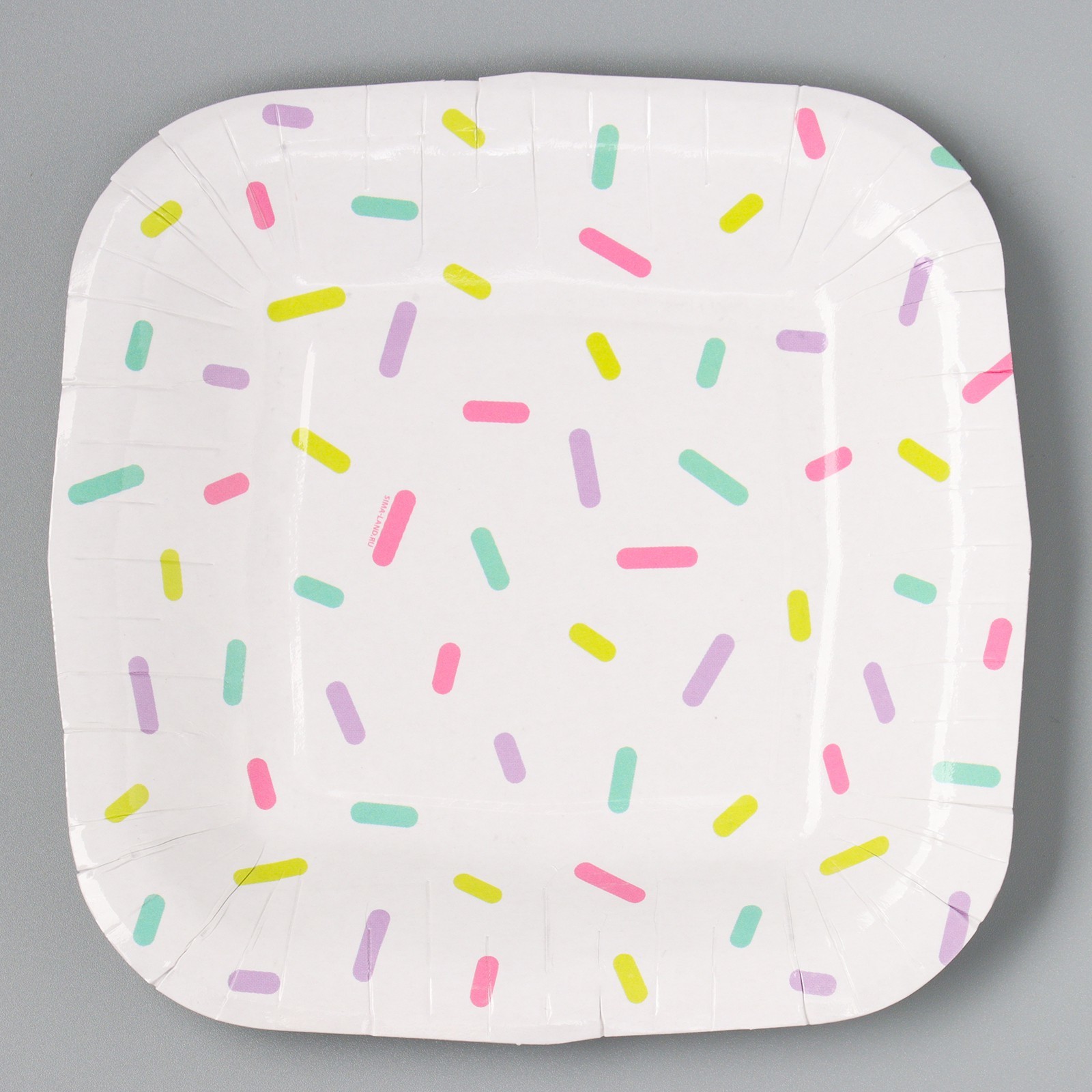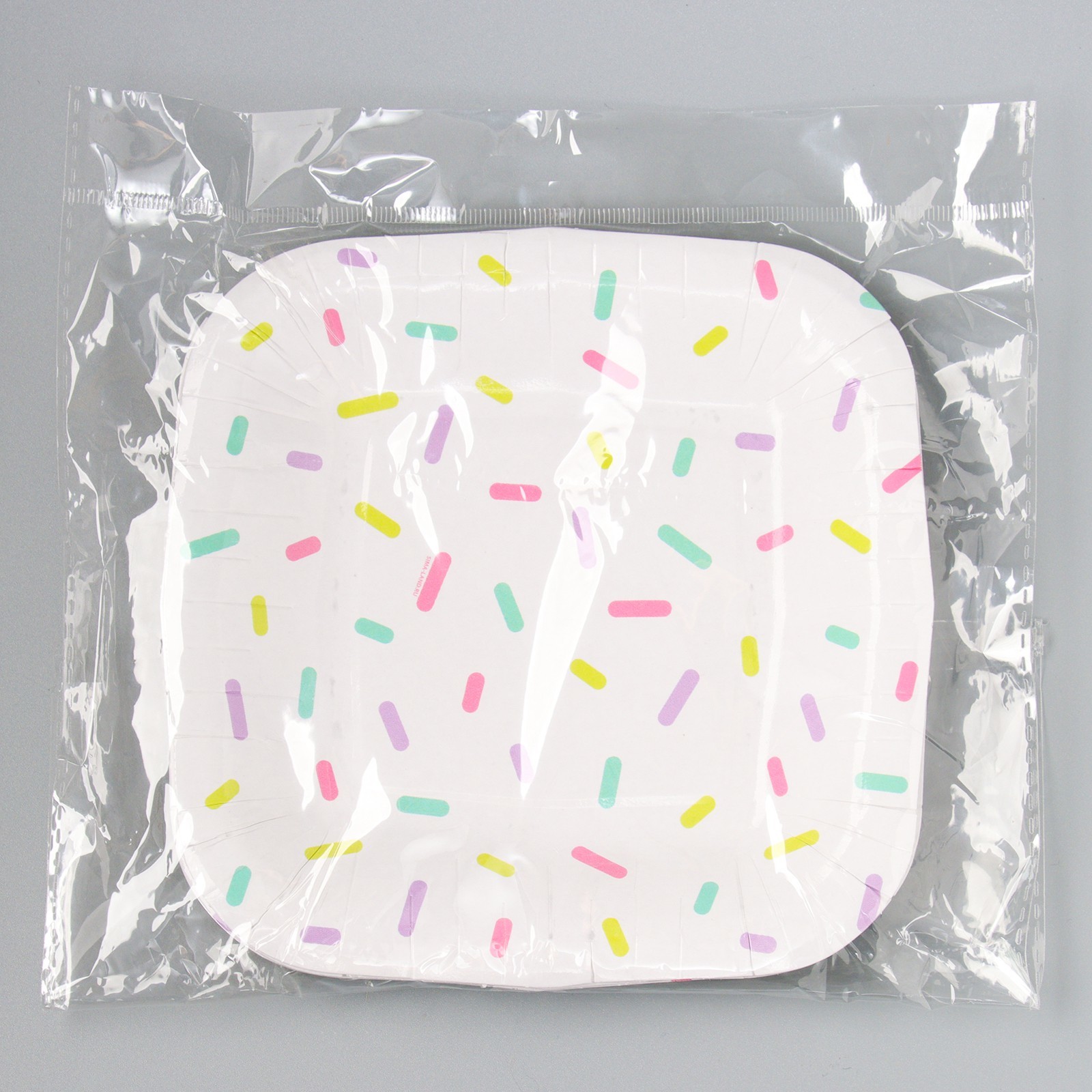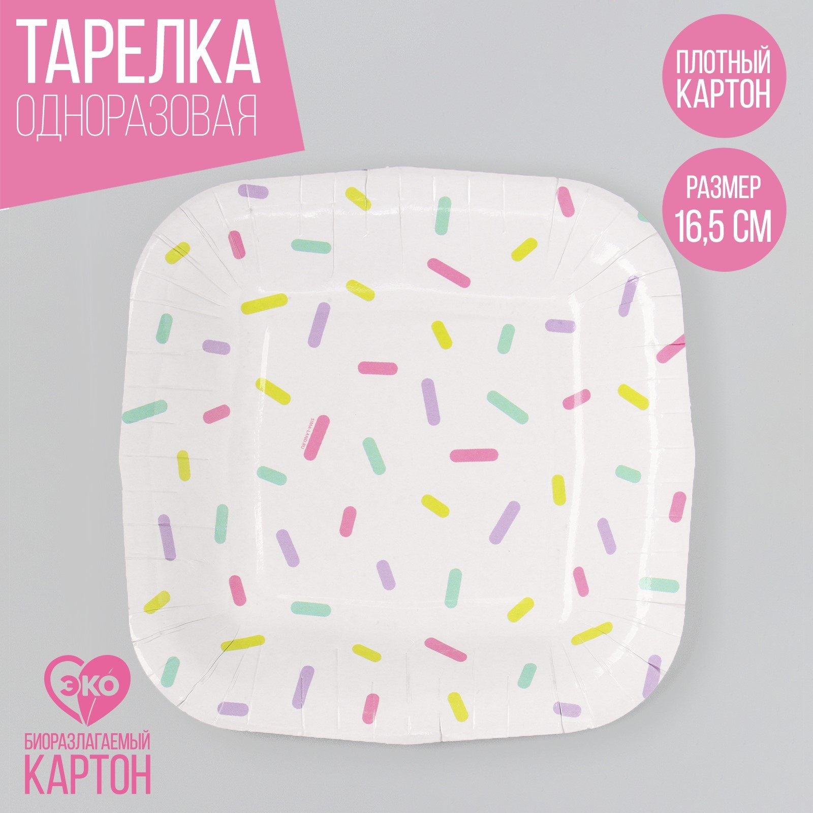 Тарелка одноразовая бумажная квадратная "праздничная"белая, 16,5х16,5 см