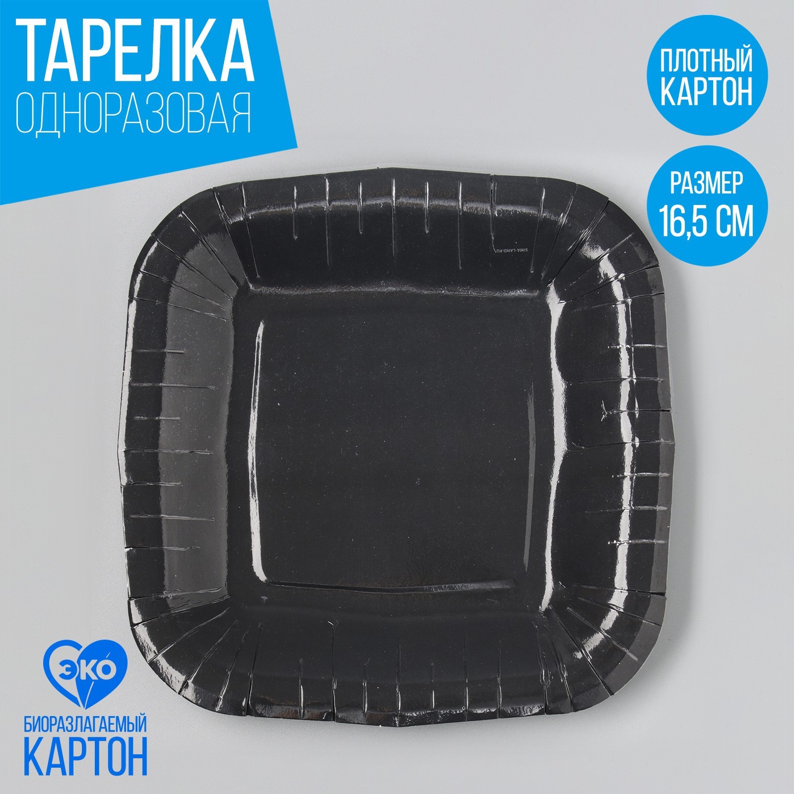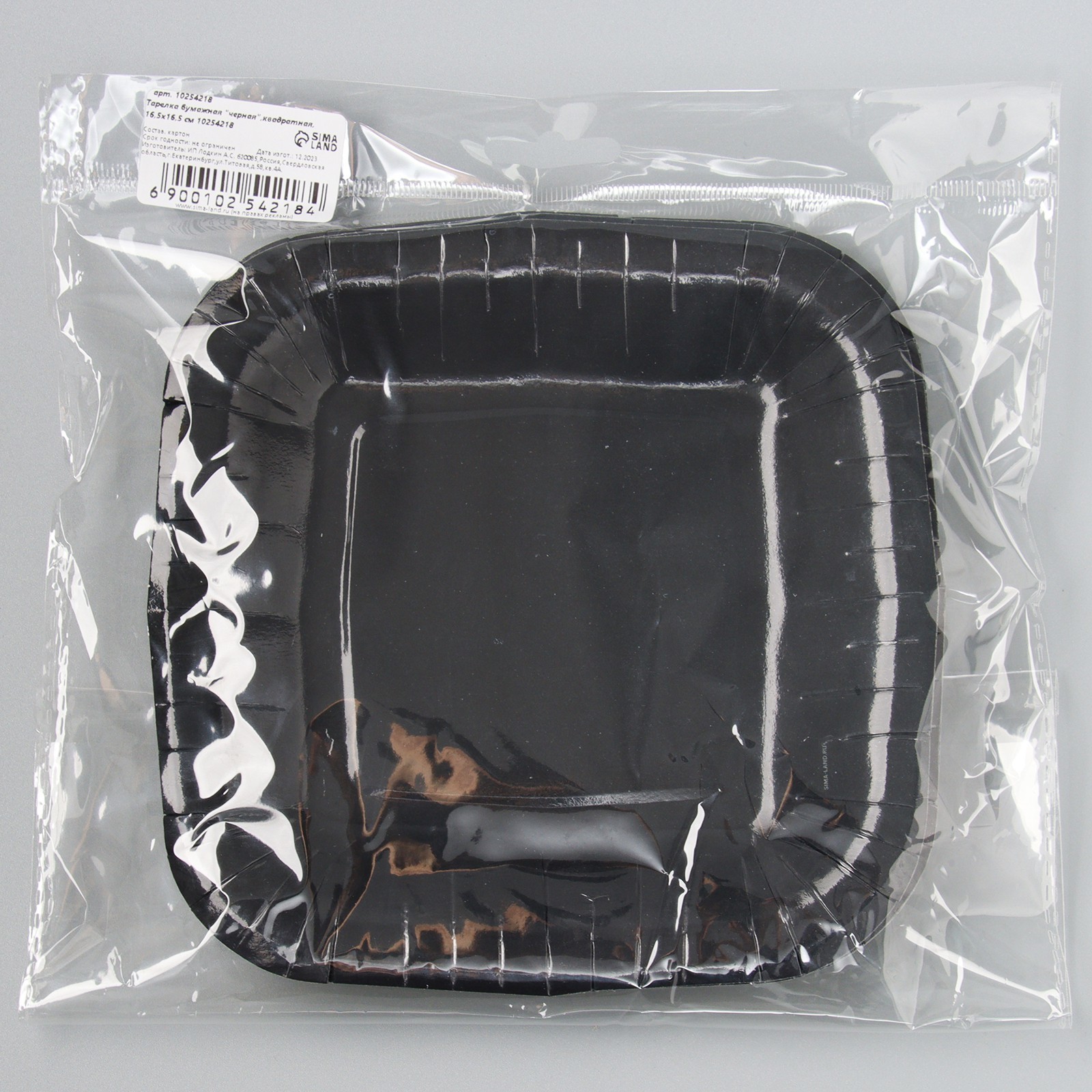 Тарелка одноразовая бумажная квадратная "черная",квадратная, 16,5х16,5 см