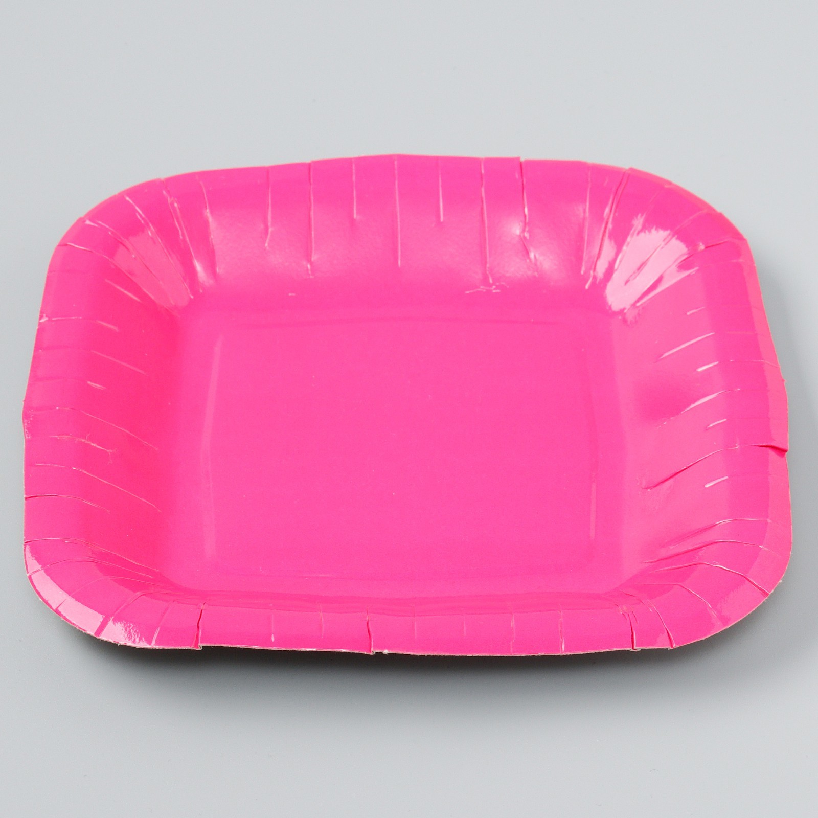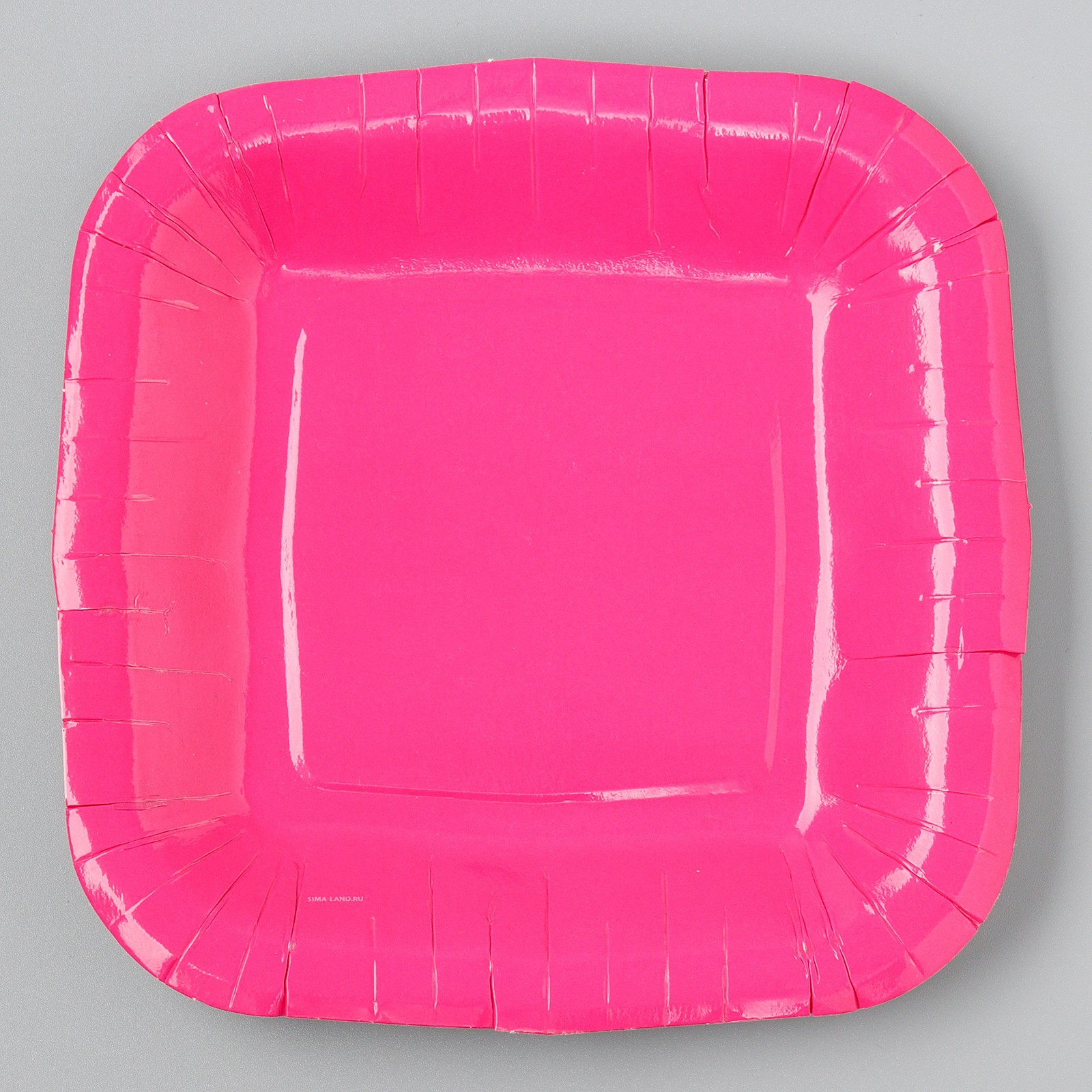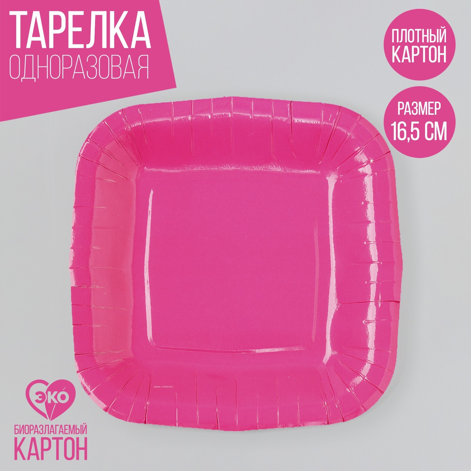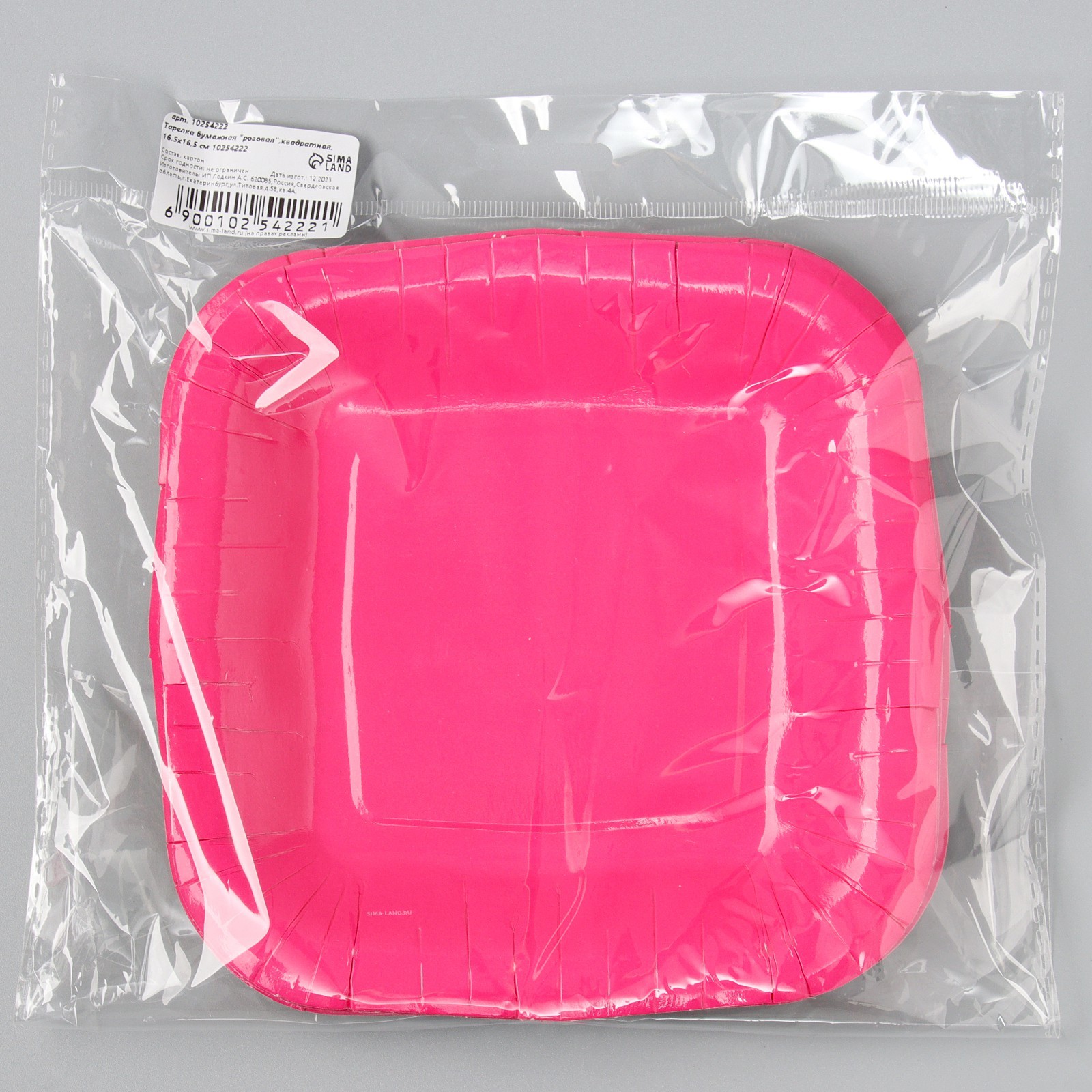 Тарелка одноразовая бумажная квадратная "розовая",квадратная, 16,5х16,5 см